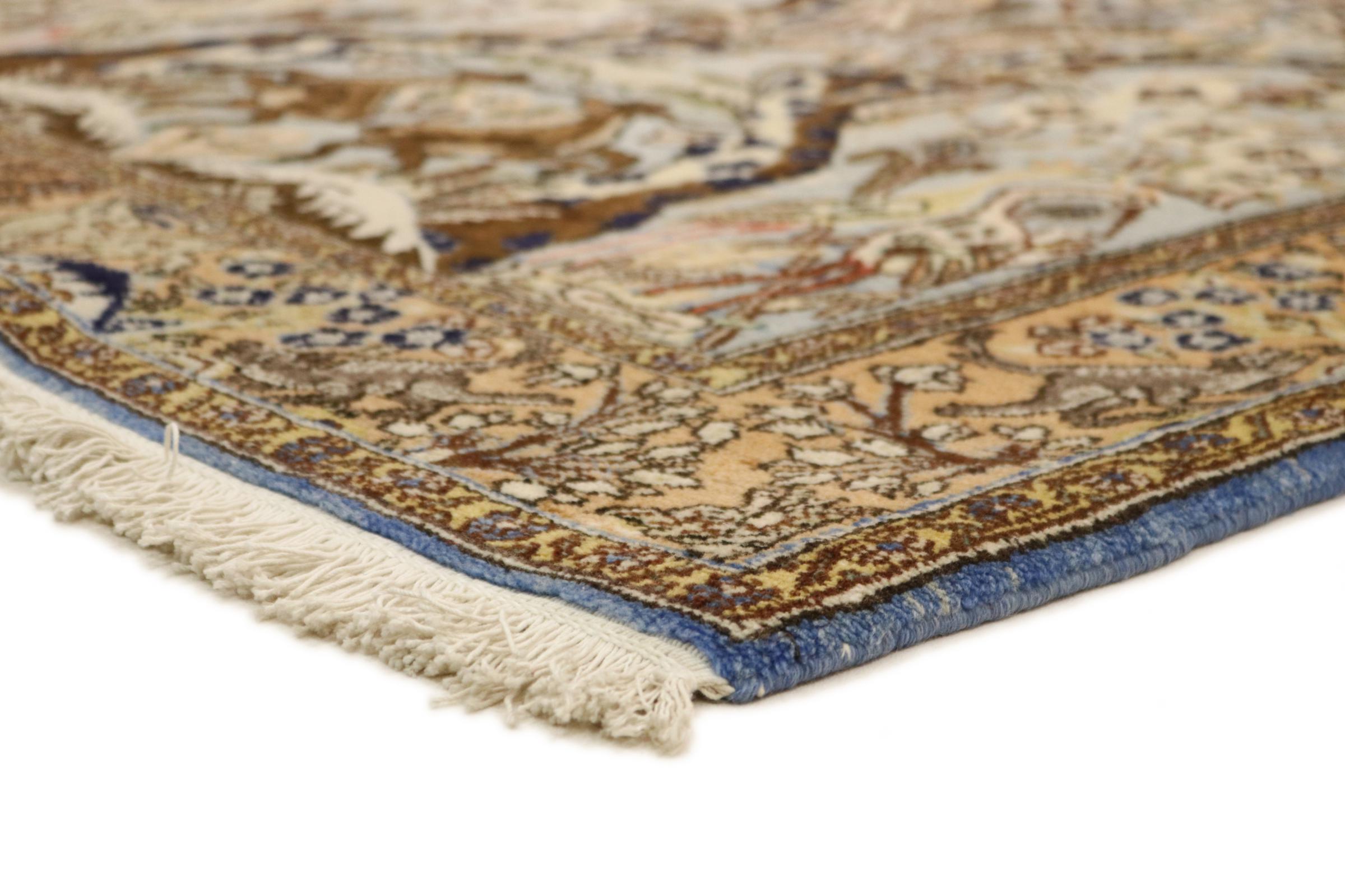 Este tapete vem do Irão (antiga Pérsia) e, como tapete persa, goza da reputação provavelmente mais elevada entre todos os tipos de tapetes de malha à mão. Nenhuma outra região se debruça sobre uma tradição tão longa de atadura de tapetes como o Irão. Por isso, os tapetes provavelmente mais finos e elaborados vêm aqui. A robustez, durabilidade e qualidade do nó persa são ainda hoje inigualáveis. Os tapetes persas têm geralmente o nome da sua região de origem. Assim, um Nain, um Ghom, bem como um tapete Isfahan vem da cidade do mesmo nome no Irão.