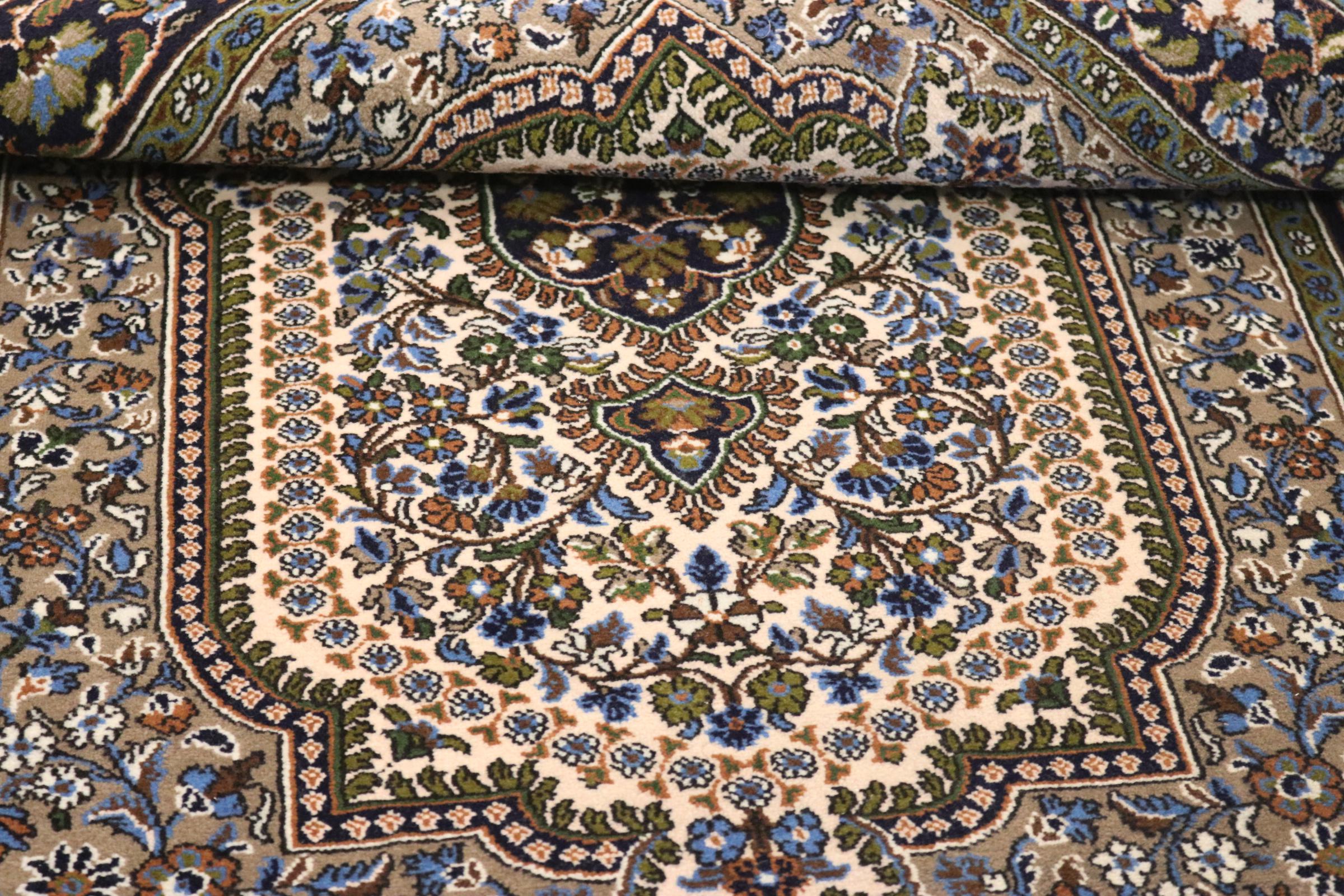 Este tapete é feito de lã de ovelha fiada à mão, da mais alta qualidade. Especialmente no Irão (antiga Pérsia), Afeganistão e Paquistão, a lã ainda é fiada à mão antes do início do nó do tapete. A lã tem provado ser um material natural e extremamente resistente ao longo dos séculos. Entre outras coisas, tem propriedades repelentes de impurezas e isolantes térmicos. Ao mesmo tempo, a lã é incomparavelmente macia e tem um brilho natural.