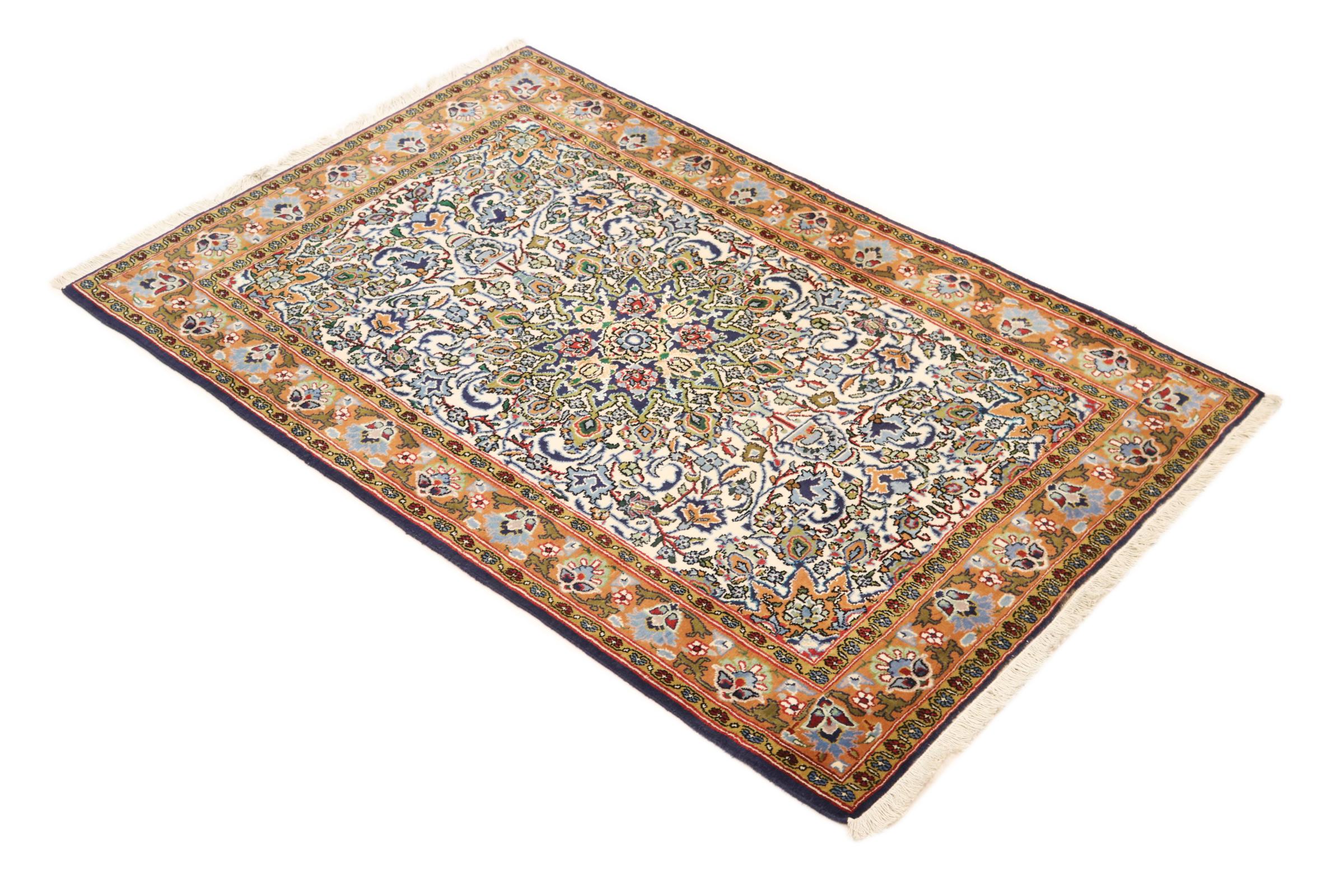 Nº do Tapete: 167549002413114 Tamanho: 166x106 cm Espessura: aproximadamente 10 mm Nós: 320 000 - 360 000 / m² Processamento: Atado à mão Veludo: Lã tecida à mão Urdidura: Algodão Origem: Pérsia / Iran Idade: Novo Peso: aproximadamente 6 kg Em armazém: Único - Apenas 1 em stock