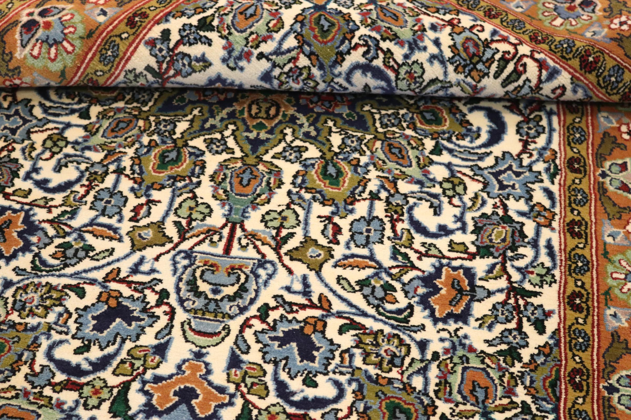 Esta cortiça Ghom é o resultado da mais elevada qualidade artesanal. O seu pelo fino e a sua urdidura convencem mesmo os coleccionadores de tapetes. Este tapete persa foi tricotado à mão na cidade sagrada de Ghom a partir da melhor lã de cortiça. A lã de cortiça é particularmente macia e gordurosa, uma vez que é tosquiada exclusivamente na zona do pescoço da ovelha. Um tapete persa dificilmente poderia ser mais bonito e macio. Esse destaque ganhou sua própria categoria conosco.