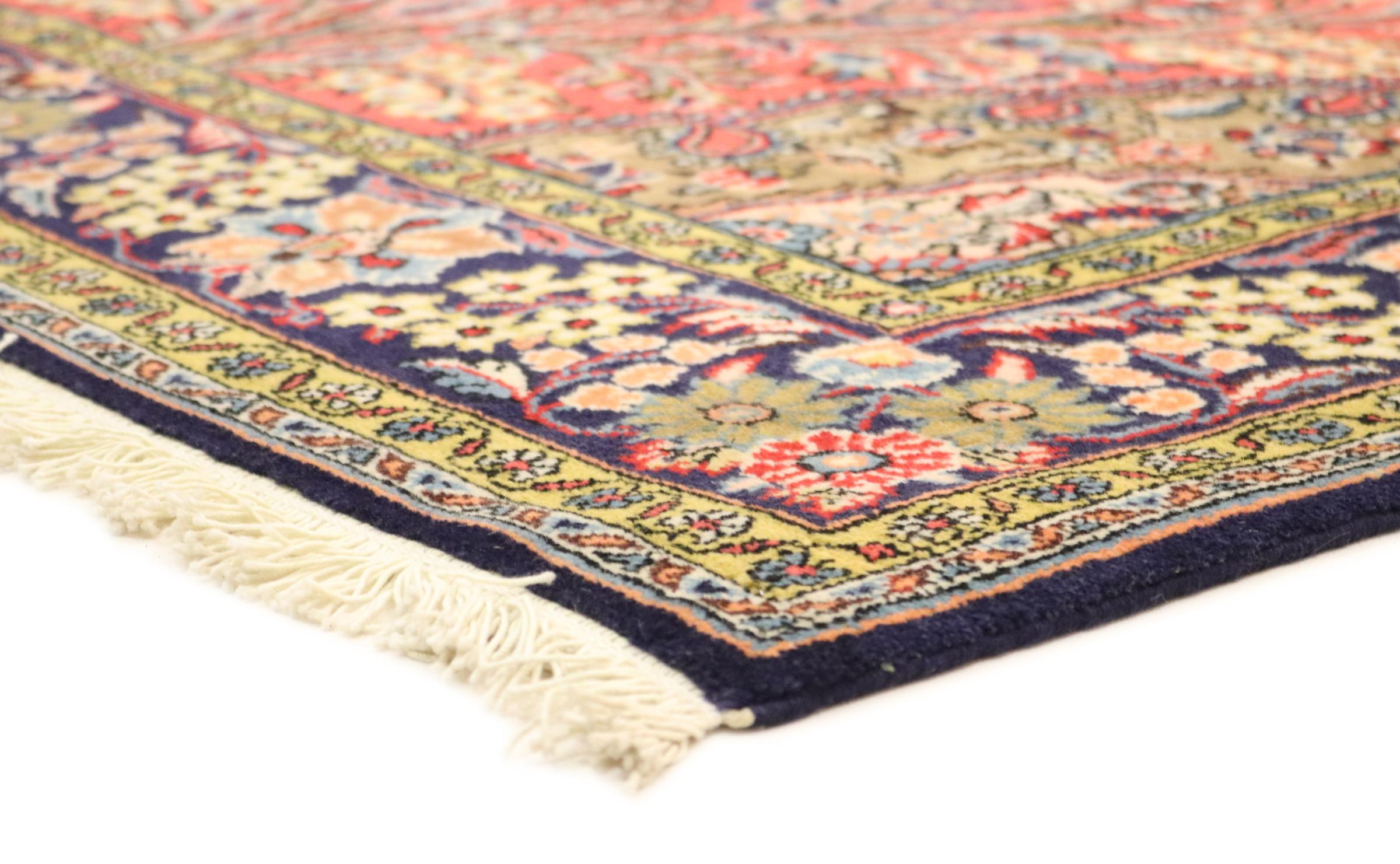 Esta cortiça Ghom é o resultado da mais elevada qualidade artesanal. O seu pelo fino e a sua urdidura convencem mesmo os coleccionadores de tapetes. Este tapete persa foi tricotado à mão na cidade sagrada de Ghom a partir da melhor lã de cortiça. A lã de cortiça é particularmente macia e gordurosa, uma vez que é tosquiada exclusivamente na zona do pescoço da ovelha. Um tapete persa dificilmente poderia ser mais bonito e macio. Esse destaque ganhou sua própria categoria conosco.