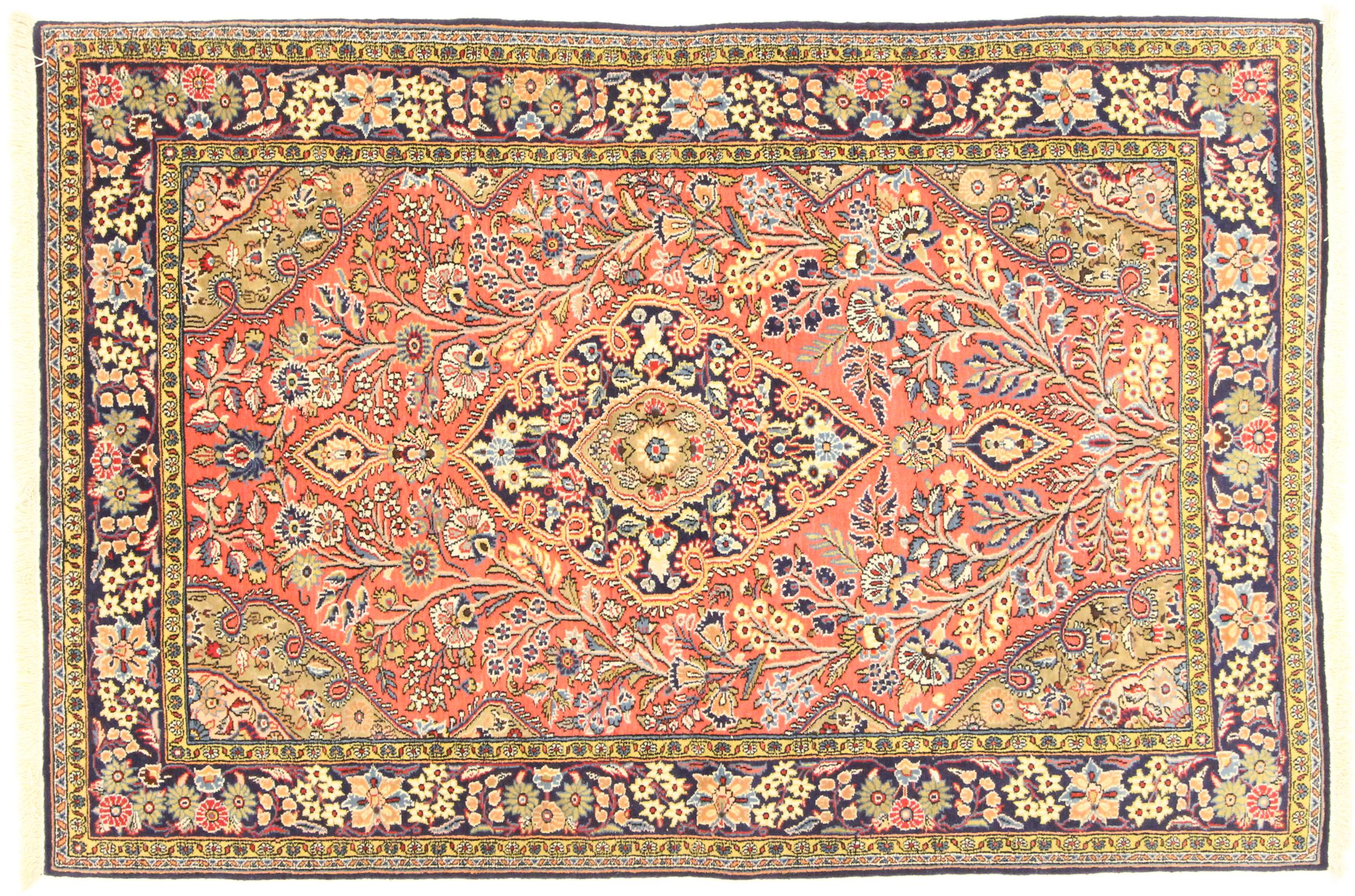Nº do Tapete: 167694009904509 Tamanho: 206x139 cm Espessura: aproximadamente 10 mm Nós: 320 000 - 360 000 / m² Processamento: Atado à mão Veludo: Lã tecida à mão Urdidura: Algodão Origem: Pérsia / Iran Idade: Novo Peso: aproximadamente 10 kg Em armazém: Único - Apenas 1 em stock
