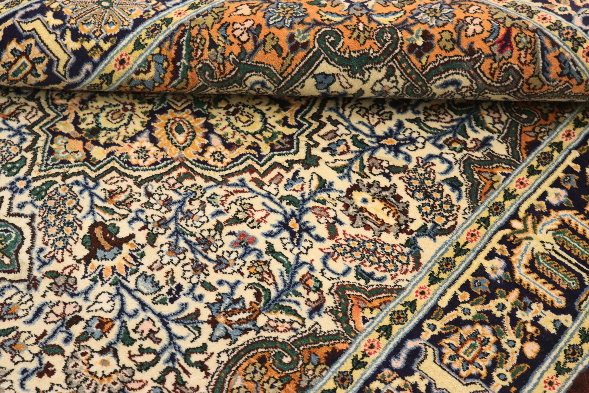 Esta cortiça Ghom é o resultado da mais elevada qualidade artesanal. O seu pelo fino e a sua urdidura convencem mesmo os coleccionadores de tapetes. Este tapete persa foi tricotado à mão na cidade sagrada de Ghom a partir da melhor lã de cortiça. A lã de cortiça é particularmente macia e gordurosa, uma vez que é tosquiada exclusivamente na zona do pescoço da ovelha. Um tapete persa dificilmente poderia ser mais bonito e macio. Esse destaque ganhou sua própria categoria conosco.