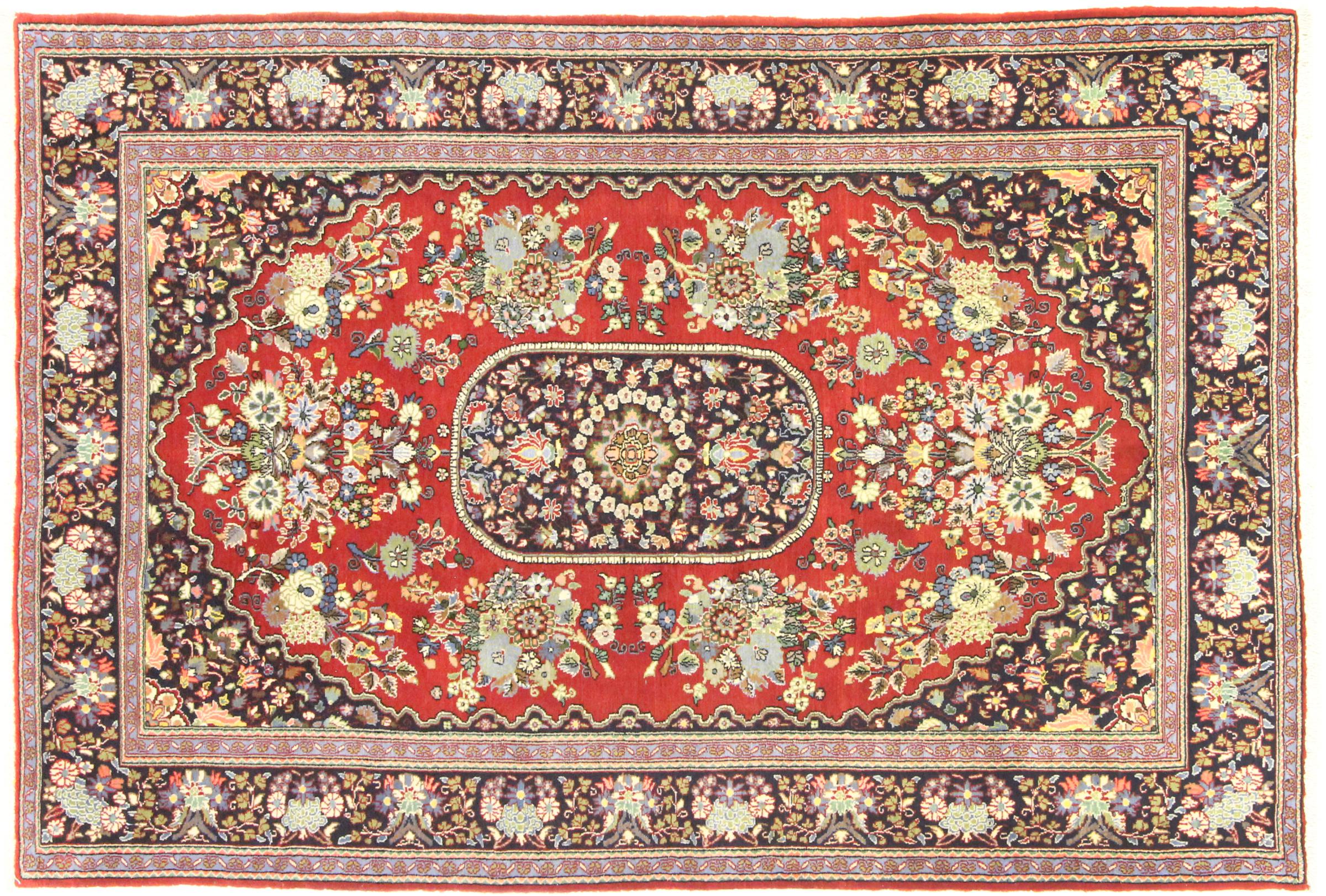 Esta cortiça Ghom é o resultado da mais elevada qualidade artesanal. O seu pelo fino e a sua urdidura convencem mesmo os coleccionadores de tapetes. Este tapete persa foi tricotado à mão na cidade sagrada de Ghom a partir da melhor lã de cortiça. A lã de cortiça é particularmente macia e gordurosa, uma vez que é tosquiada exclusivamente na zona do pescoço da ovelha. Um tapete persa dificilmente poderia ser mais bonito e macio. Esse destaque ganhou sua própria categoria conosco.