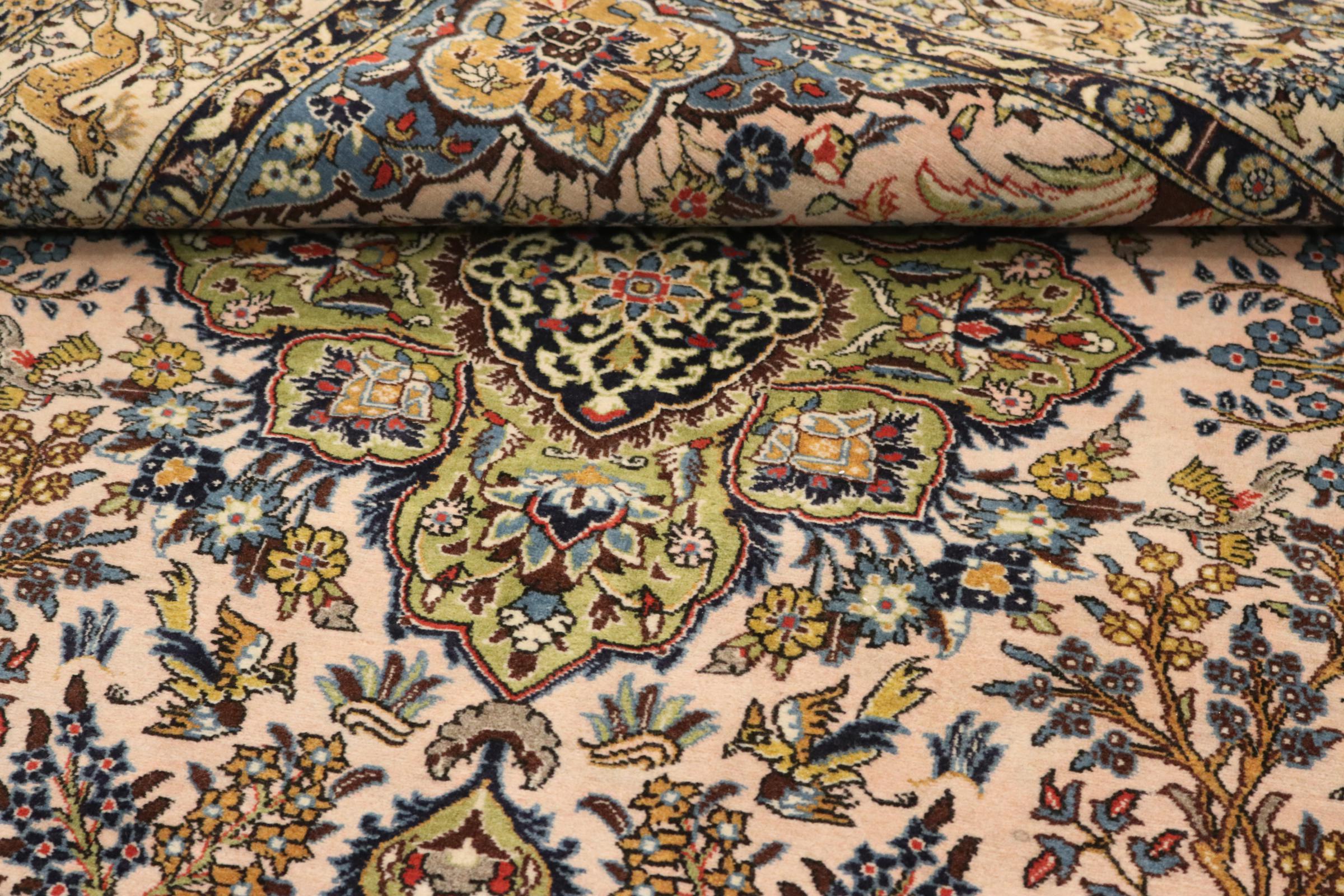 Esta cortiça Ghom é o resultado da mais elevada qualidade artesanal. O seu pelo fino e a sua urdidura convencem mesmo os coleccionadores de tapetes. Este tapete persa foi tricotado à mão na cidade sagrada de Ghom a partir da melhor lã de cortiça. A lã de cortiça é particularmente macia e gordurosa, uma vez que é tosquiada exclusivamente na zona do pescoço da ovelha. Um tapete persa dificilmente poderia ser mais bonito e macio. Esse destaque ganhou sua própria categoria conosco.