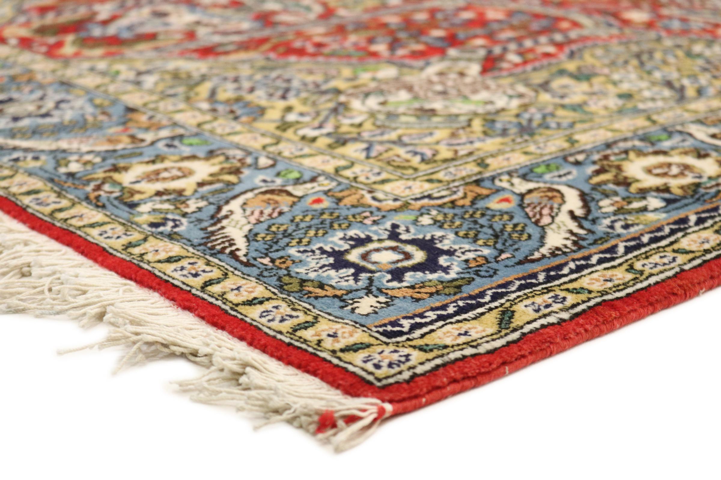 Esta cortiça Ghom é o resultado da mais elevada qualidade artesanal. O seu pelo fino e a sua urdidura convencem mesmo os coleccionadores de tapetes. Este tapete persa foi tricotado à mão na cidade sagrada de Ghom a partir da melhor lã de cortiça. A lã de cortiça é particularmente macia e gordurosa, uma vez que é tosquiada exclusivamente na zona do pescoço da ovelha. Um tapete persa dificilmente poderia ser mais bonito e macio. Esse destaque ganhou sua própria categoria conosco.