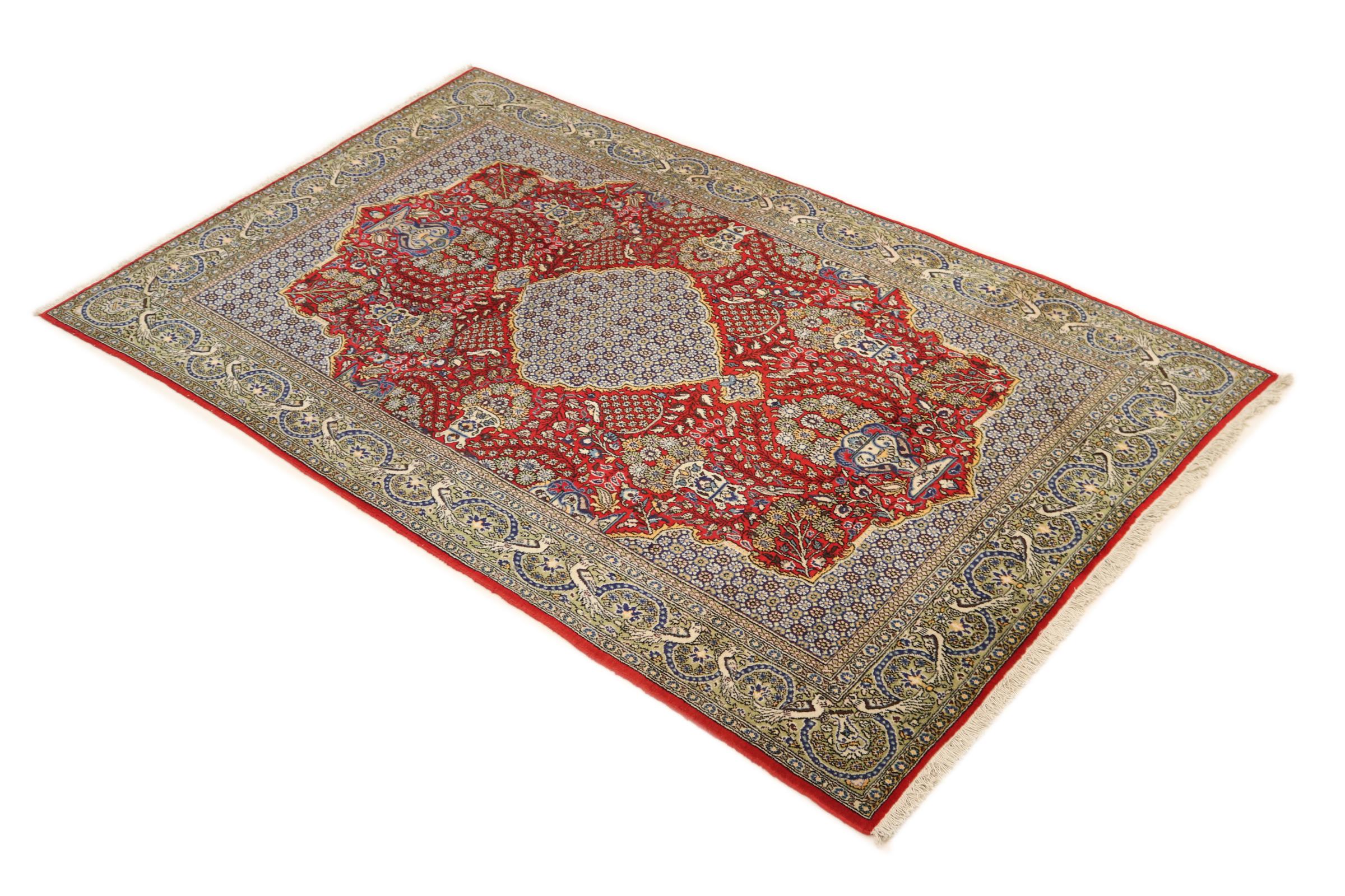Esta cortiça Ghom é o resultado da mais elevada qualidade artesanal. O seu pelo fino e a sua urdidura convencem mesmo os coleccionadores de tapetes. Este tapete persa foi tricotado à mão na cidade sagrada de Ghom a partir da melhor lã de cortiça. A lã de cortiça é particularmente macia e gordurosa, uma vez que é tosquiada exclusivamente na zona do pescoço da ovelha. Um tapete persa dificilmente poderia ser mais bonito e macio. Esse destaque ganhou sua própria categoria conosco.