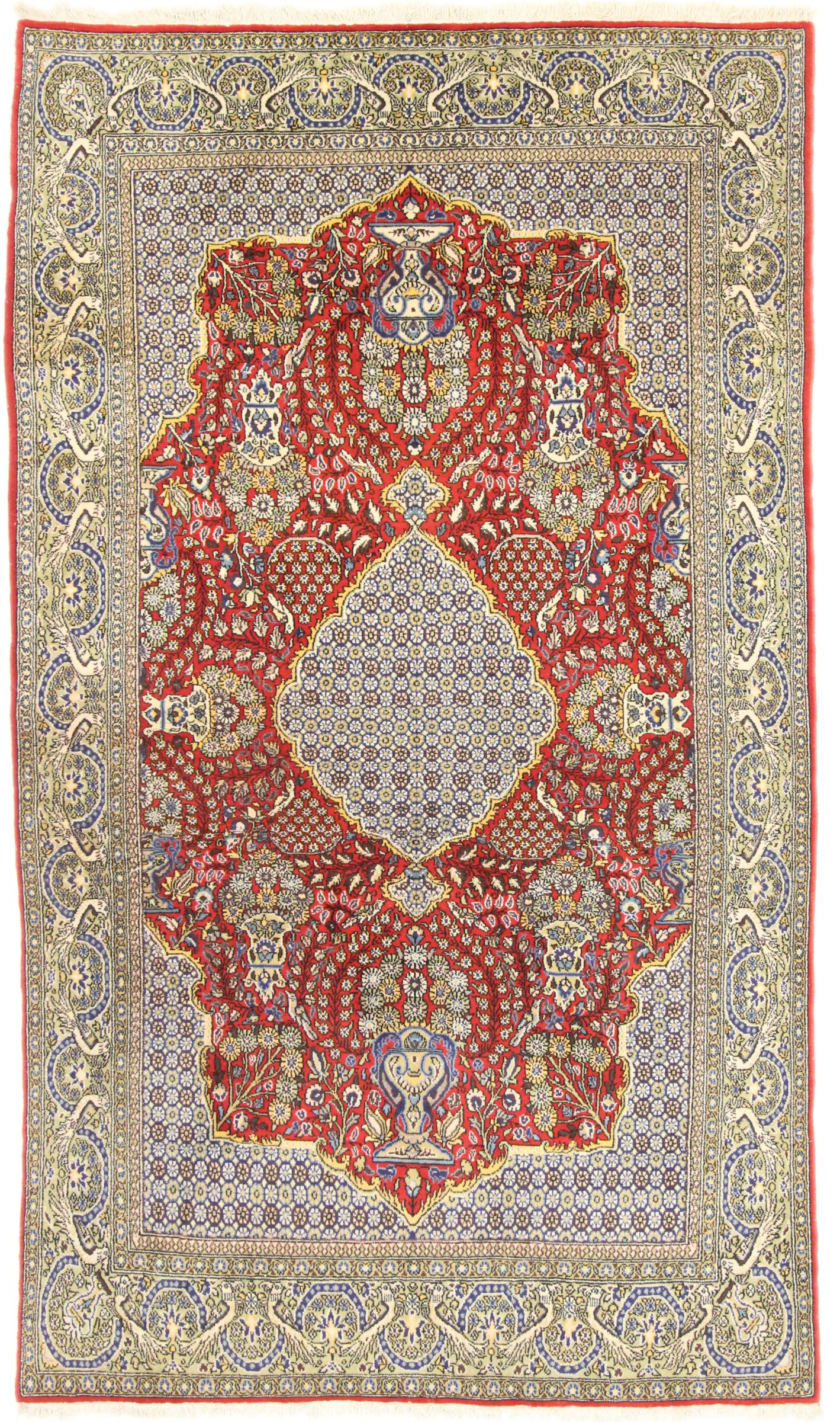 Este tapete vem do Irão (antiga Pérsia) e, como tapete persa, goza da reputação provavelmente mais elevada entre todos os tipos de tapetes de malha à mão. Nenhuma outra região se debruça sobre uma tradição tão longa de atadura de tapetes como o Irão. Por isso, os tapetes provavelmente mais finos e elaborados vêm aqui. A robustez, durabilidade e qualidade do nó persa são ainda hoje inigualáveis. Os tapetes persas têm geralmente o nome da sua região de origem. Assim, um Nain, um Ghom, bem como um tapete Isfahan vem da cidade do mesmo nome no Irão.