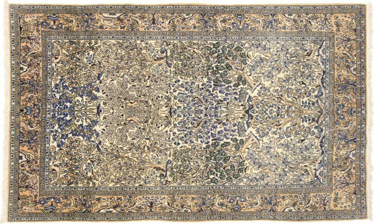 Este tapete vem do Irão (antiga Pérsia) e, como tapete persa, goza da reputação provavelmente mais elevada entre todos os tipos de tapetes de malha à mão. Nenhuma outra região se debruça sobre uma tradição tão longa de atadura de tapetes como o Irão. Por isso, os tapetes provavelmente mais finos e elaborados vêm aqui. A robustez, durabilidade e qualidade do nó persa são ainda hoje inigualáveis. Os tapetes persas têm geralmente o nome da sua região de origem. Assim, um Nain, um Ghom, bem como um tapete Isfahan vem da cidade do mesmo nome no Irão.