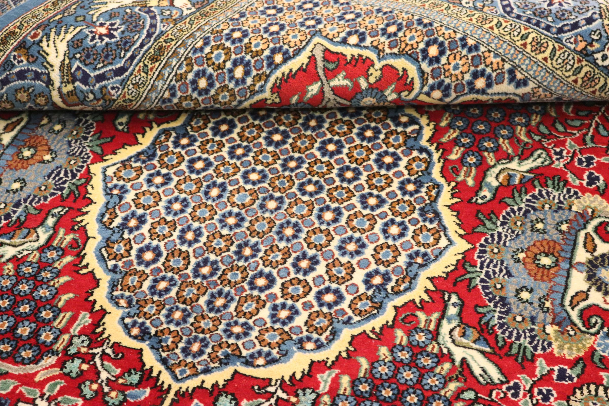 Nº do Tapete: 167984002553188 Tamanho: 255x153 cm Espessura: aproximadamente 10 mm Nós: 320 000 - 360 000 / m² Processamento: Atado à mão Veludo: Lã tecida à mão Urdidura: Algodão Origem: Pérsia / Iran Idade: Novo Peso: aproximadamente 14 kg Em armazém: Único - Apenas 1 em stock