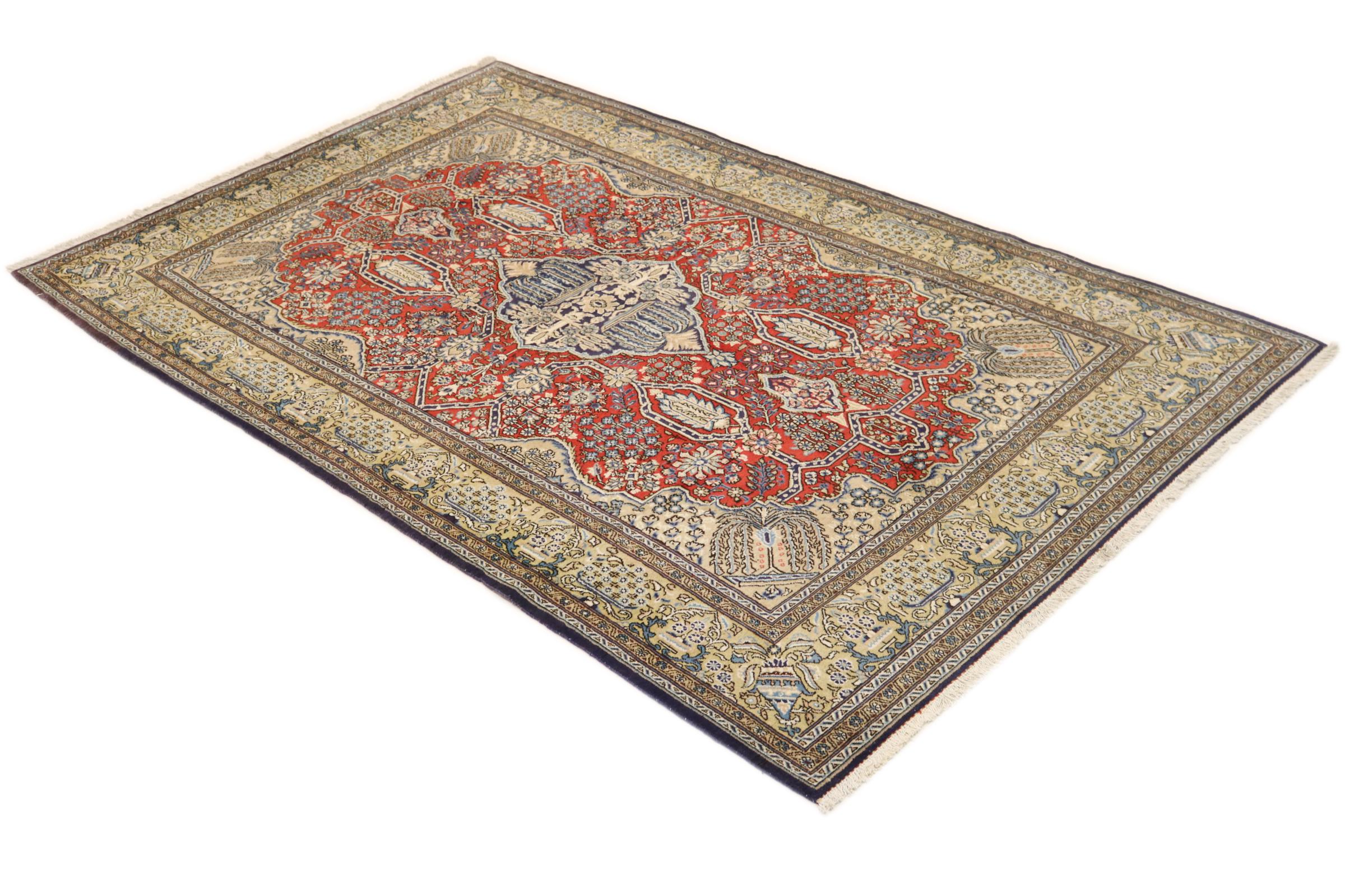 Este tapete vem do Irão (antiga Pérsia) e, como tapete persa, goza da reputação provavelmente mais elevada entre todos os tipos de tapetes de malha à mão. Nenhuma outra região se debruça sobre uma tradição tão longa de atadura de tapetes como o Irão. Por isso, os tapetes provavelmente mais finos e elaborados vêm aqui. A robustez, durabilidade e qualidade do nó persa são ainda hoje inigualáveis. Os tapetes persas têm geralmente o nome da sua região de origem. Assim, um Nain, um Ghom, bem como um tapete Isfahan vem da cidade do mesmo nome no Irão.