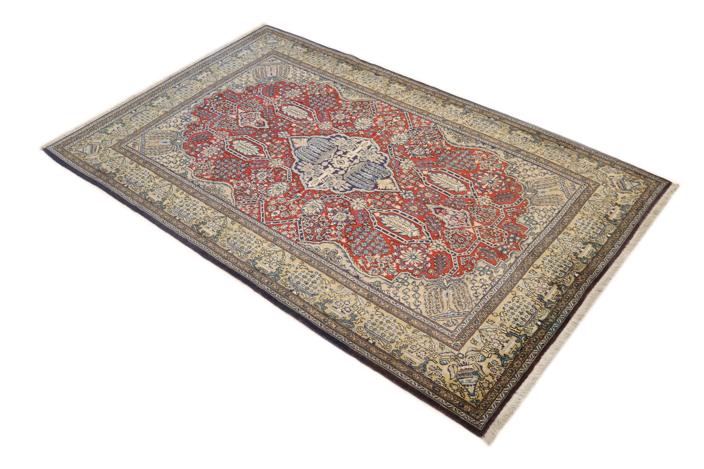 Esta cortiça Ghom é o resultado da mais elevada qualidade artesanal. O seu pelo fino e a sua urdidura convencem mesmo os coleccionadores de tapetes. Este tapete persa foi tricotado à mão na cidade sagrada de Ghom a partir da melhor lã de cortiça. A lã de cortiça é particularmente macia e gordurosa, uma vez que é tosquiada exclusivamente na zona do pescoço da ovelha. Um tapete persa dificilmente poderia ser mais bonito e macio. Esse destaque ganhou sua própria categoria conosco.