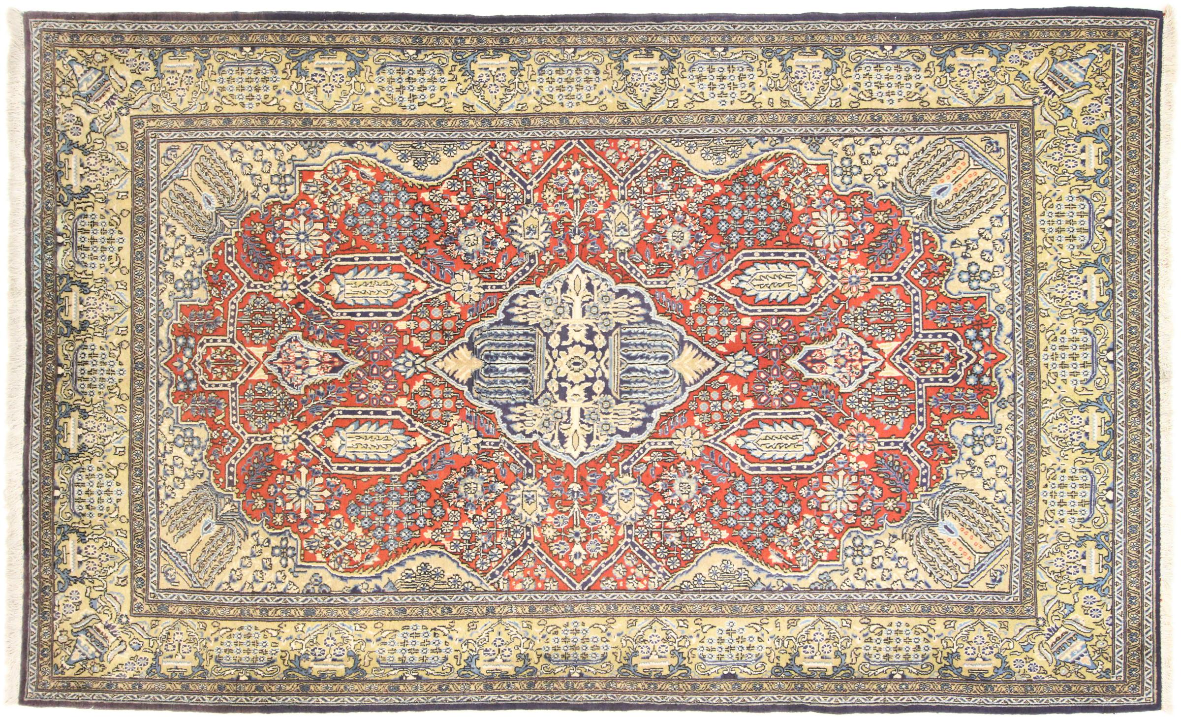Nº do Tapete: 167610007080200 Tamanho: 269x164 cm Espessura: aproximadamente 10 mm Nós: 320 000 - 360 000 / m² Processamento: Atado à mão Veludo: Lã tecida à mão Urdidura: Algodão Origem: Pérsia / Iran Idade: Novo Peso: aproximadamente 15 kg Em armazém: Único - Apenas 1 em stock