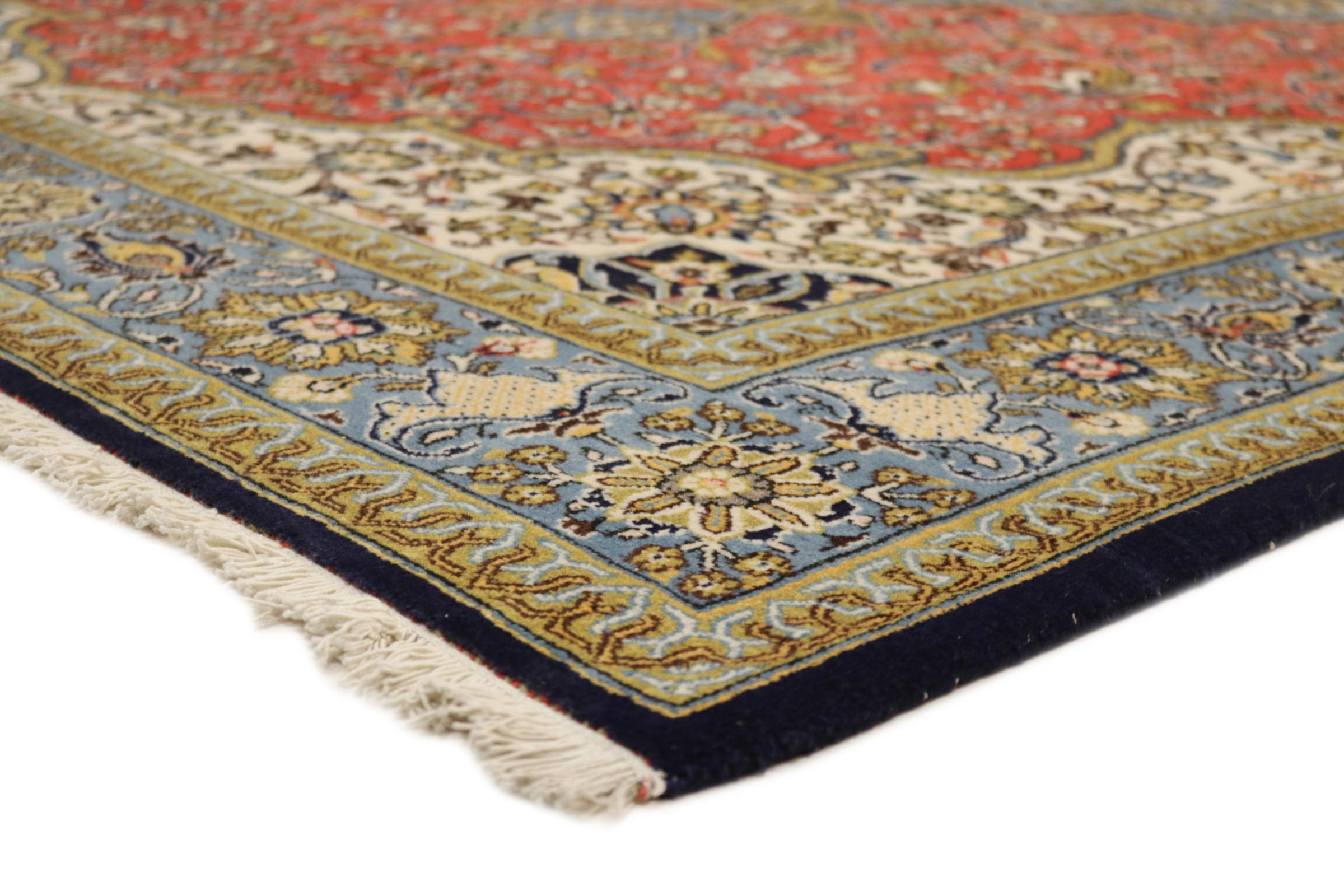Este tapete vem do Irão (antiga Pérsia) e, como tapete persa, goza da reputação provavelmente mais elevada entre todos os tipos de tapetes de malha à mão. Nenhuma outra região se debruça sobre uma tradição tão longa de atadura de tapetes como o Irão. Por isso, os tapetes provavelmente mais finos e elaborados vêm aqui. A robustez, durabilidade e qualidade do nó persa são ainda hoje inigualáveis. Os tapetes persas têm geralmente o nome da sua região de origem. Assim, um Nain, um Ghom, bem como um tapete Isfahan vem da cidade do mesmo nome no Irão.