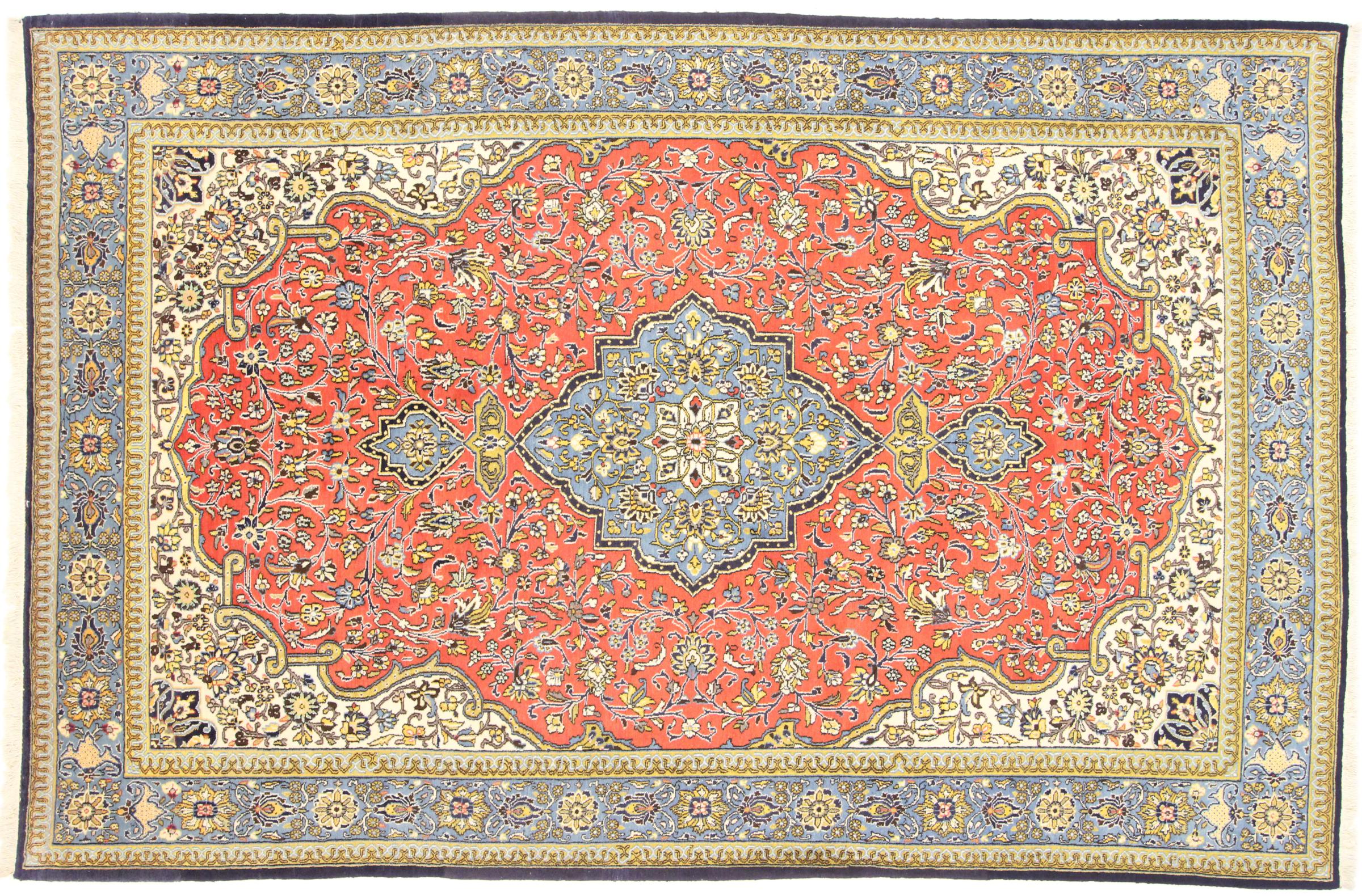 Esta cortiça Ghom é o resultado da mais elevada qualidade artesanal. O seu pelo fino e a sua urdidura convencem mesmo os coleccionadores de tapetes. Este tapete persa foi tricotado à mão na cidade sagrada de Ghom a partir da melhor lã de cortiça. A lã de cortiça é particularmente macia e gordurosa, uma vez que é tosquiada exclusivamente na zona do pescoço da ovelha. Um tapete persa dificilmente poderia ser mais bonito e macio. Esse destaque ganhou sua própria categoria conosco.