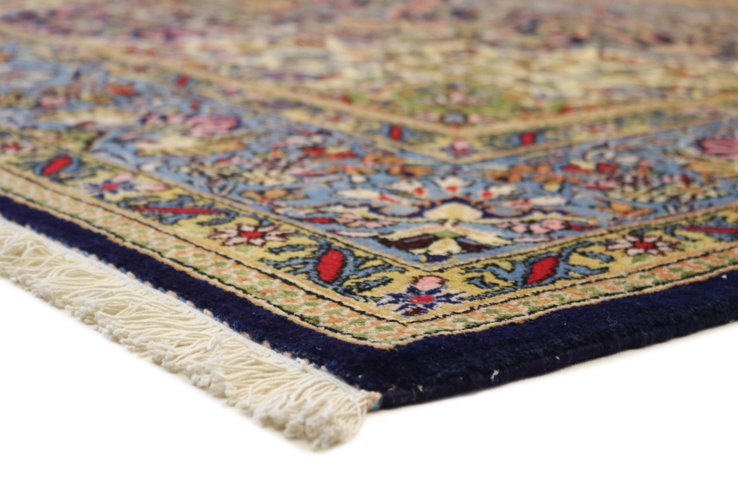 Esta cortiça Ghom é o resultado da mais elevada qualidade artesanal. O seu pelo fino e a sua urdidura convencem mesmo os coleccionadores de tapetes. Este tapete persa foi tricotado à mão na cidade sagrada de Ghom a partir da melhor lã de cortiça. A lã de cortiça é particularmente macia e gordurosa, uma vez que é tosquiada exclusivamente na zona do pescoço da ovelha. Um tapete persa dificilmente poderia ser mais bonito e macio. Esse destaque ganhou sua própria categoria conosco.