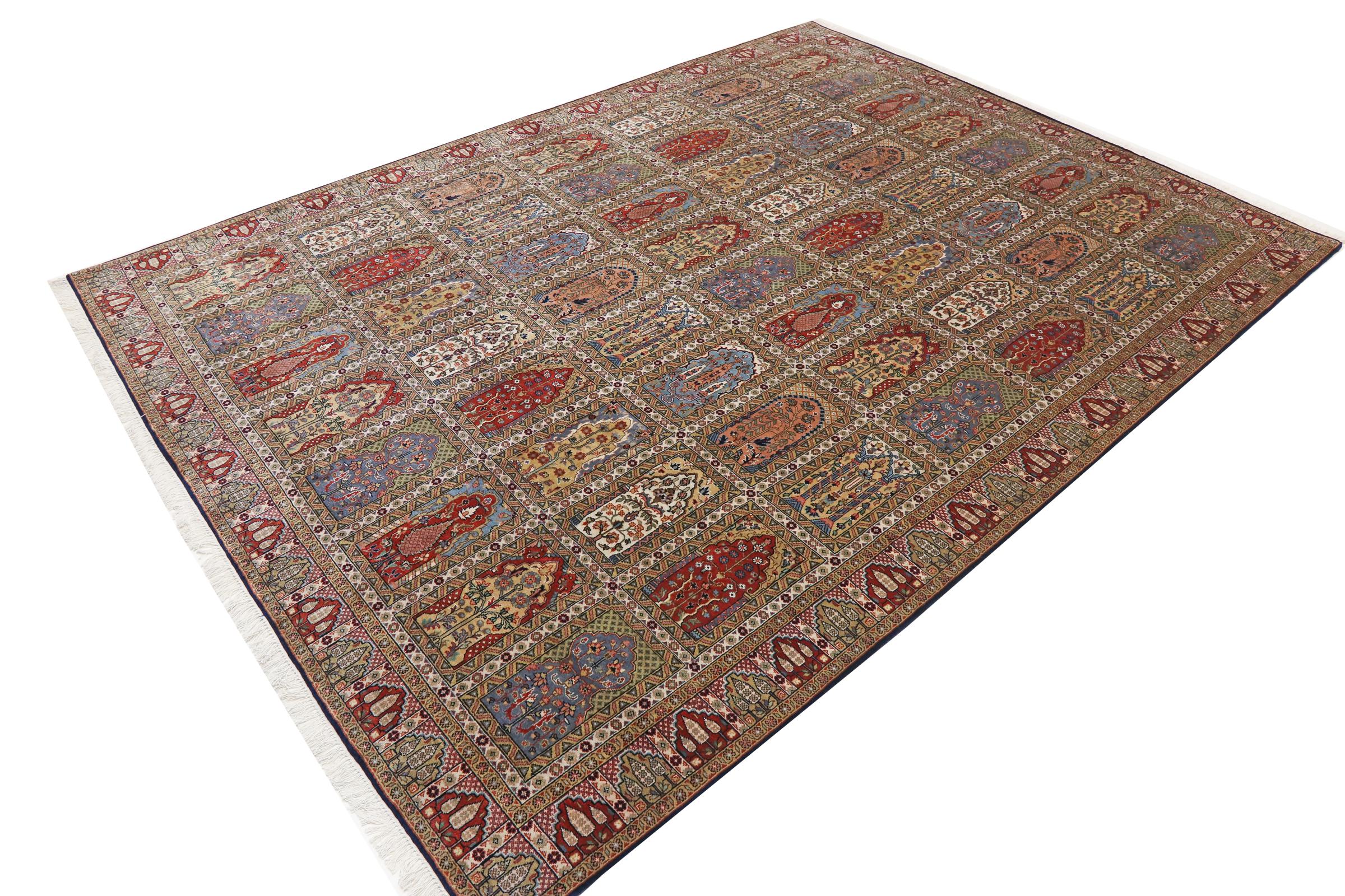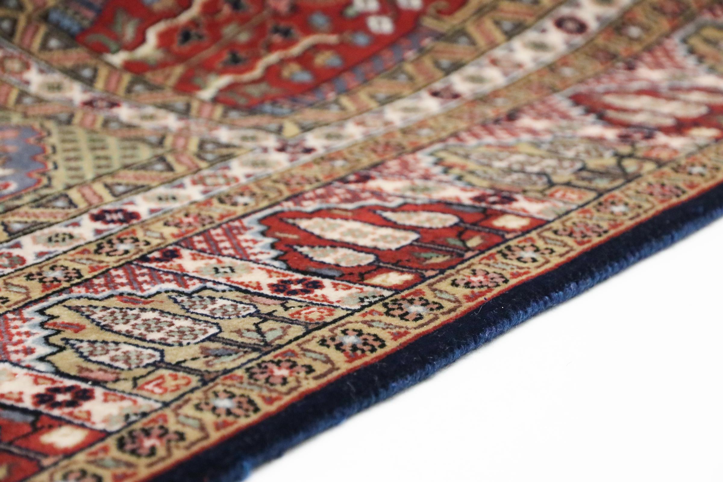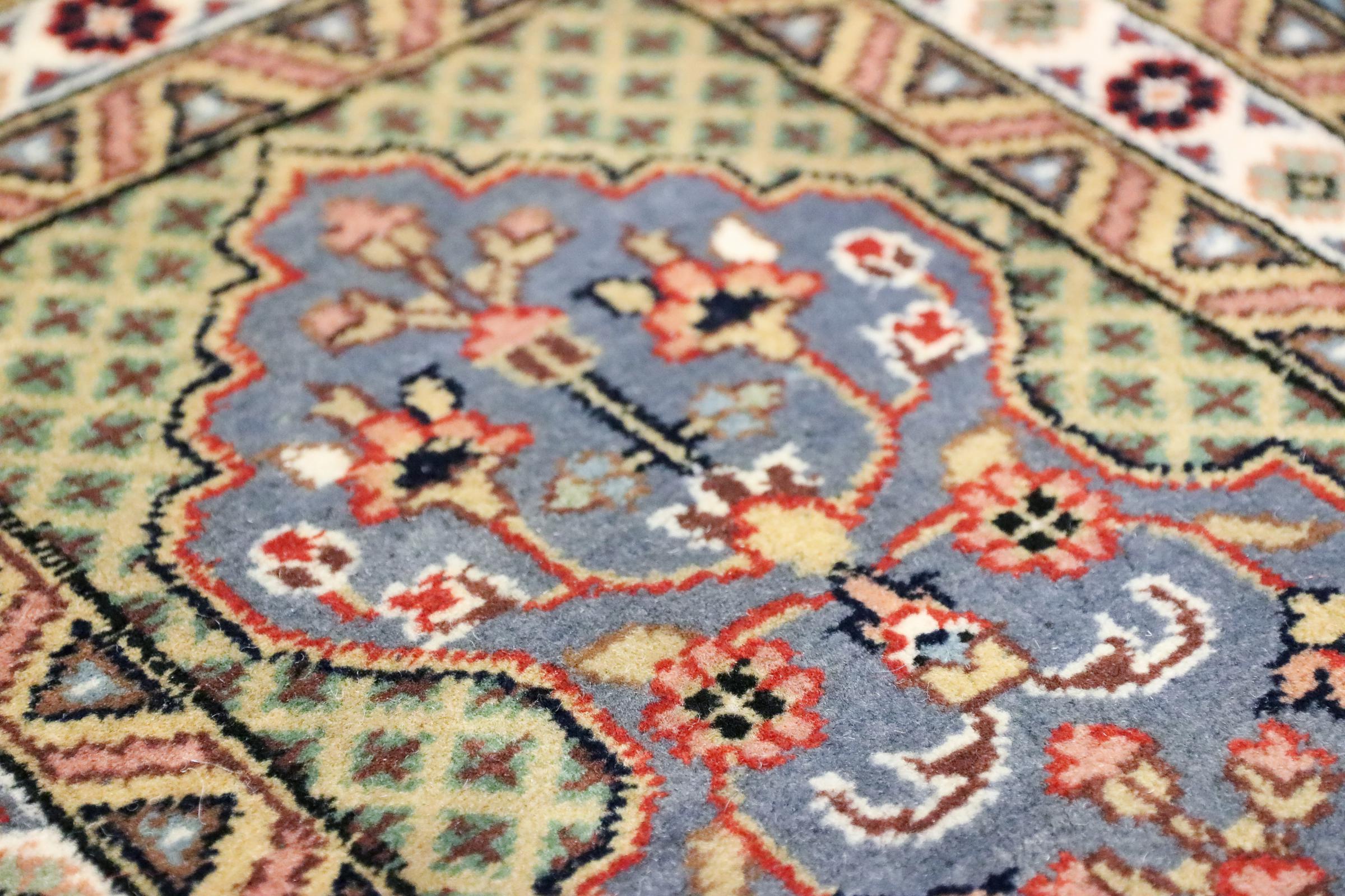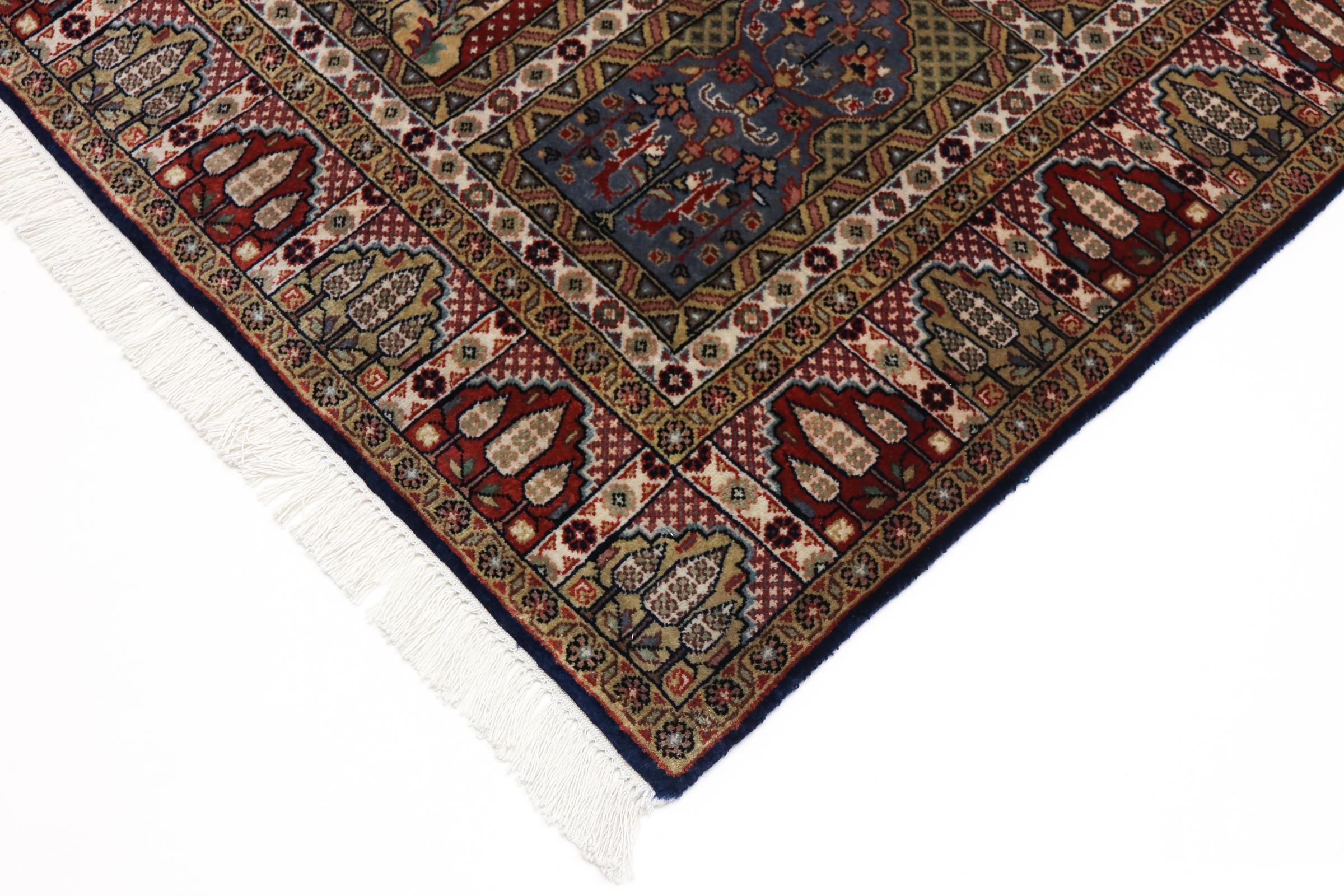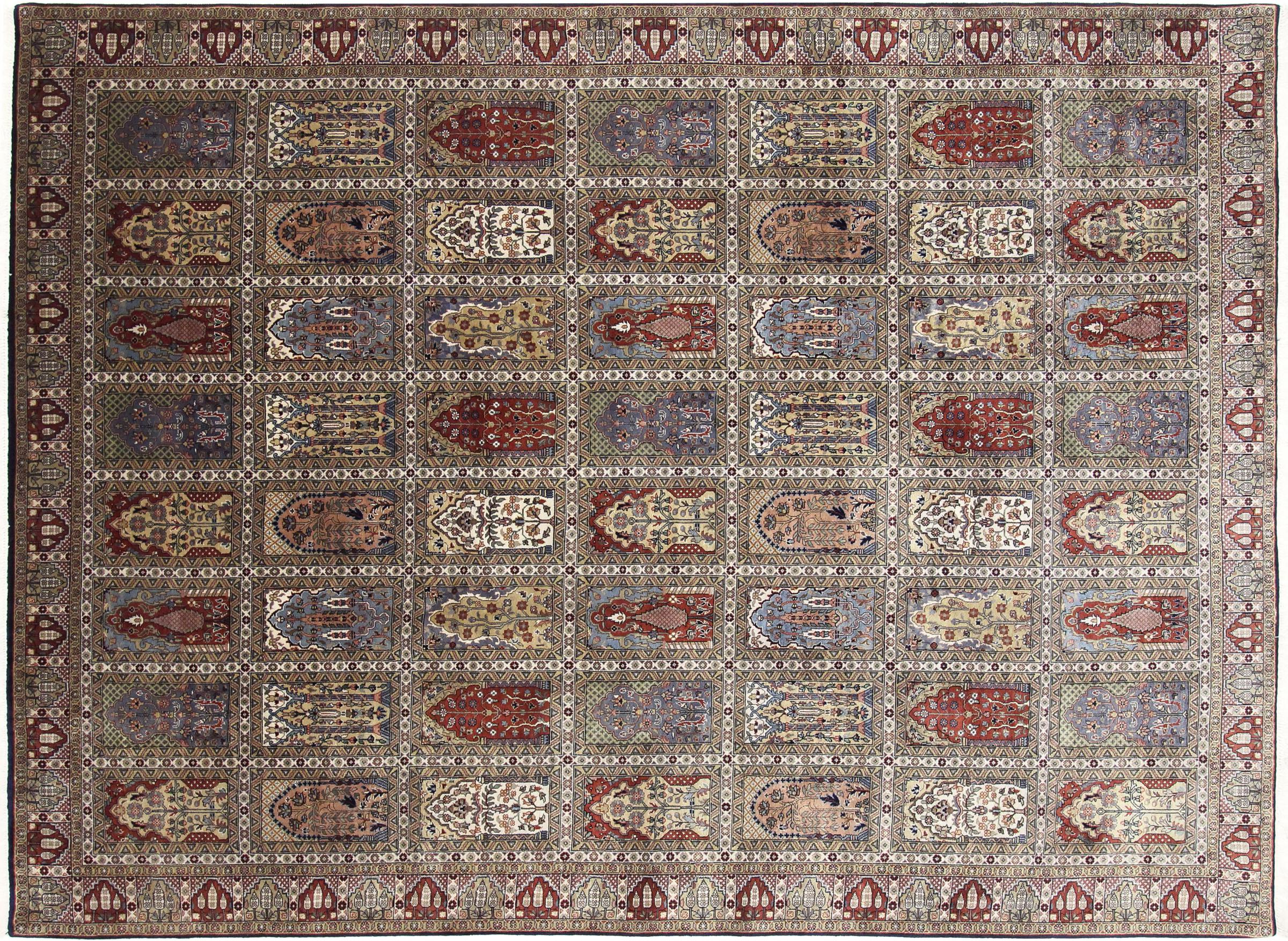 Este tapete Indo Ghom atado à mão é inspirado no design dos famosos tapetes Ghom persas. Oferece uma qualidade soberba feita à mão na arte tradicional indiana de atar.