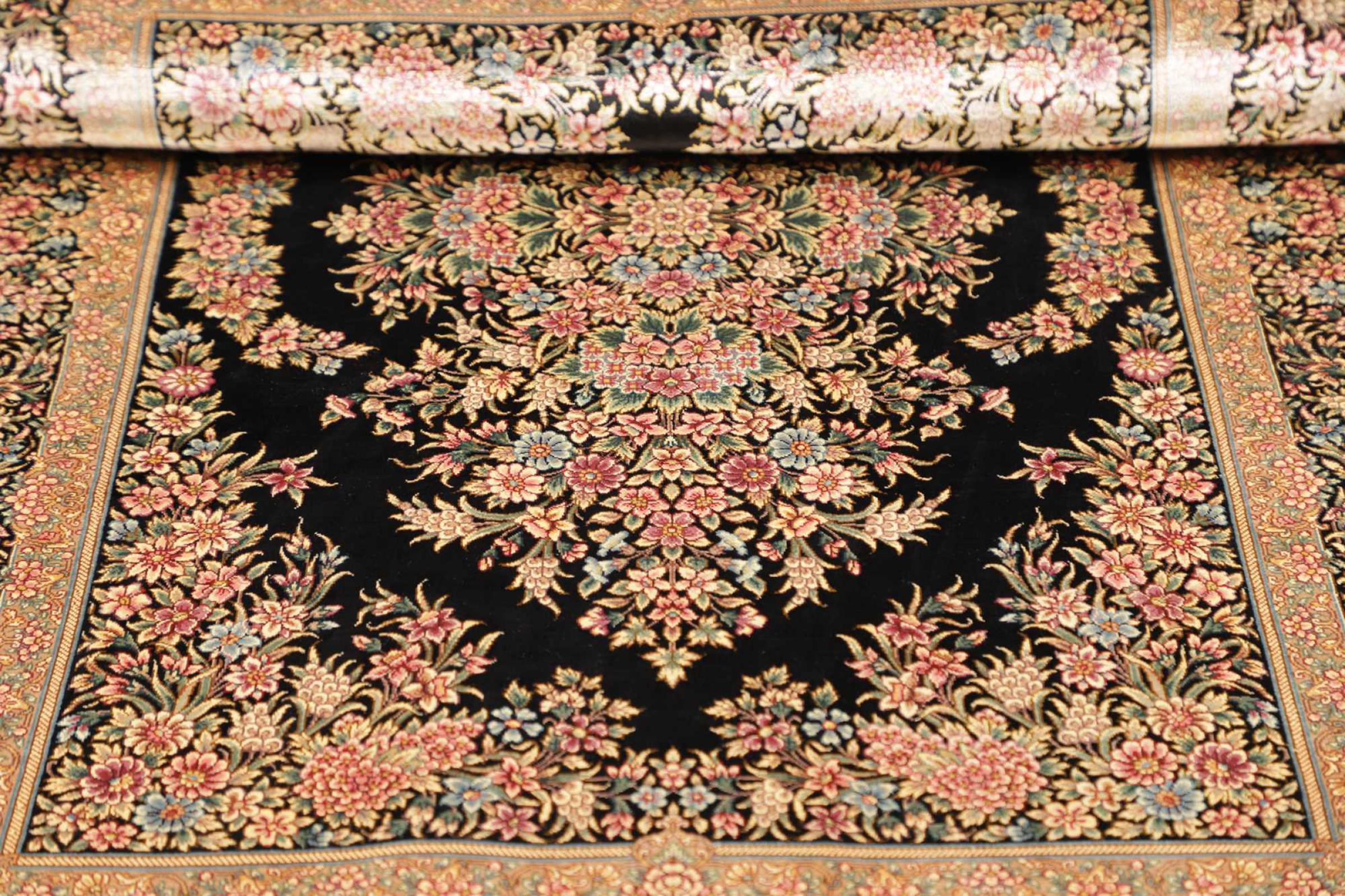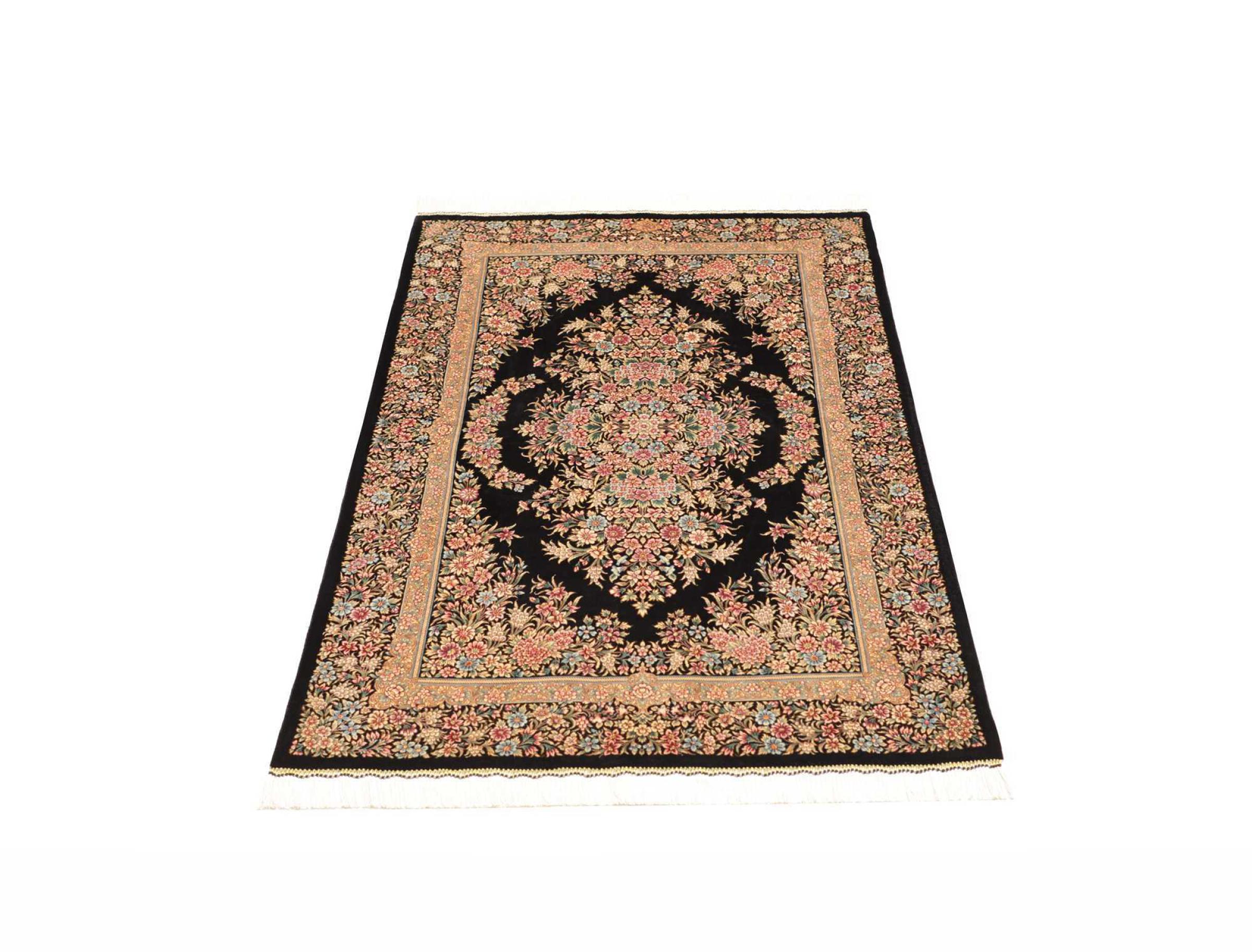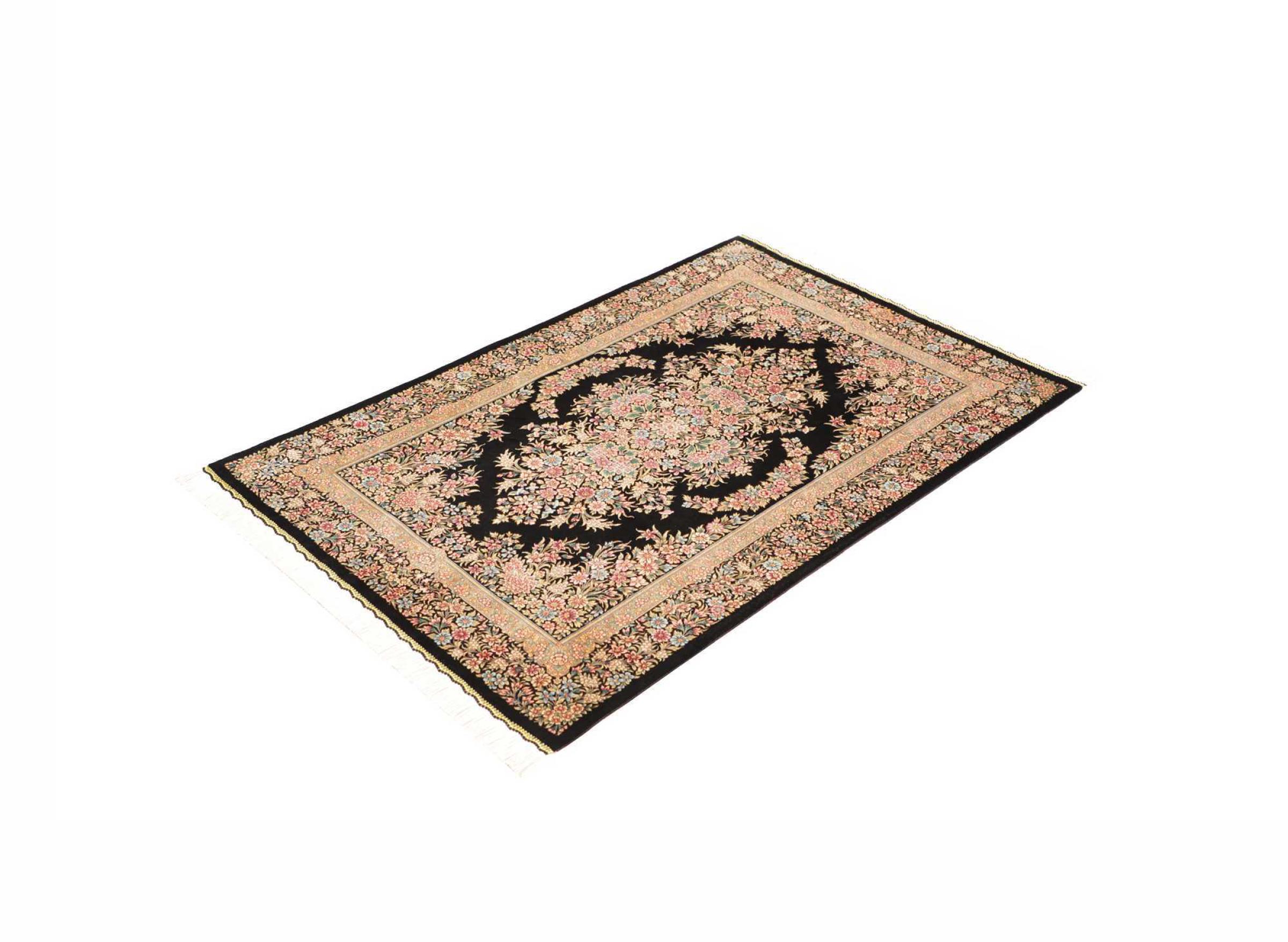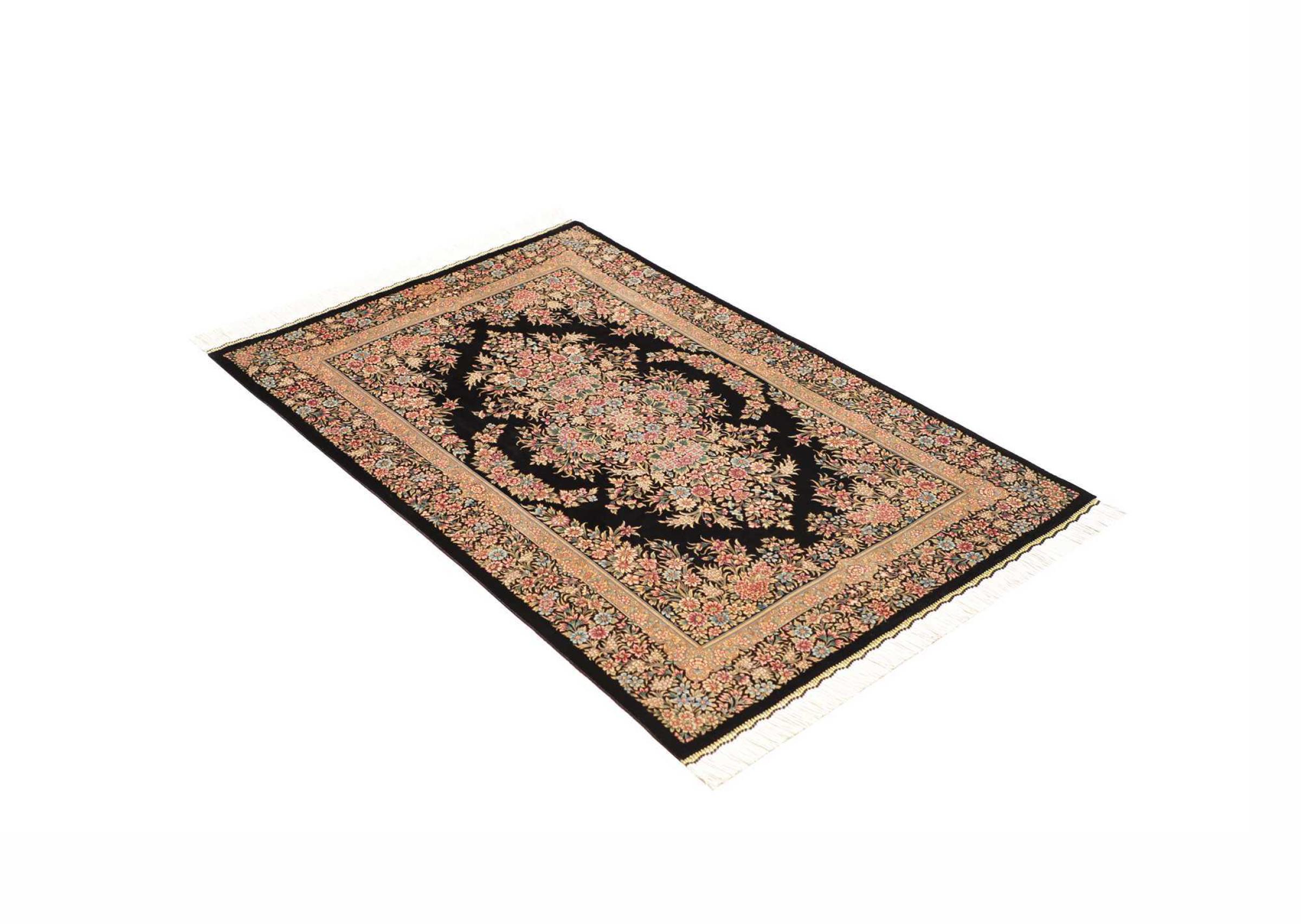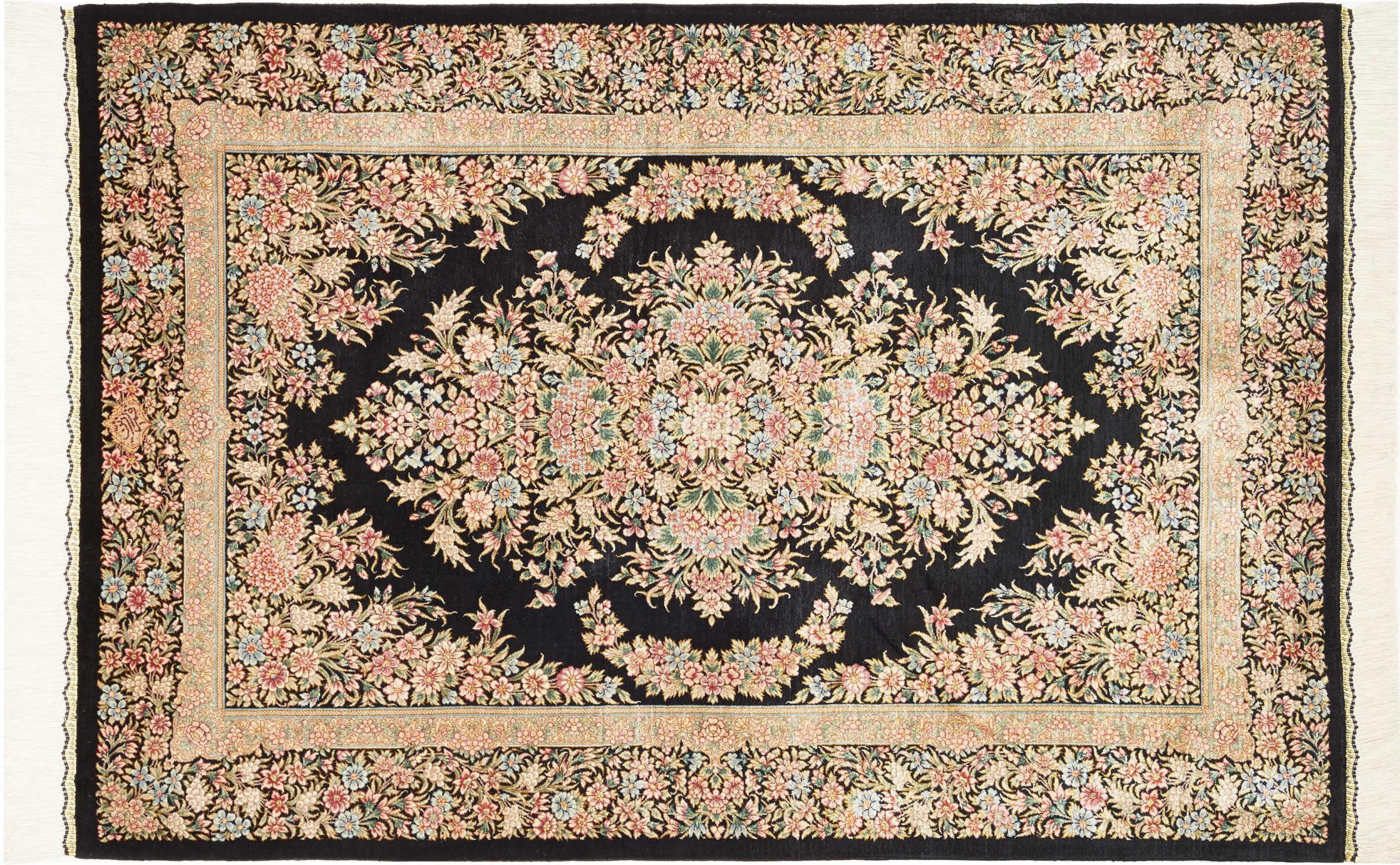 Este tapete de seda Ghom é puro luxo. Os seus ornamentos e a seda natural pura falam por si. Aqui encontrará o Oriente em toda a sua perfeição para a sua casa. Um tapete de seda de Ghom impressiona até os coleccionadores de arte de tapetes persas. Dependendo da incidência da luz, a seda permite que as cores brilhem nas mais diversas facetas. Isso faz deste tapete persa um destaque inesquecível e fará com que seu quarto brilhe num ambiente aconchegante e de altíssima qualidade.