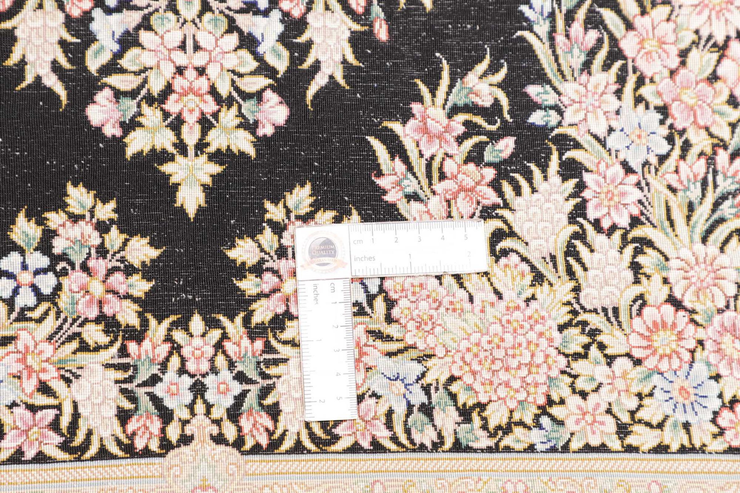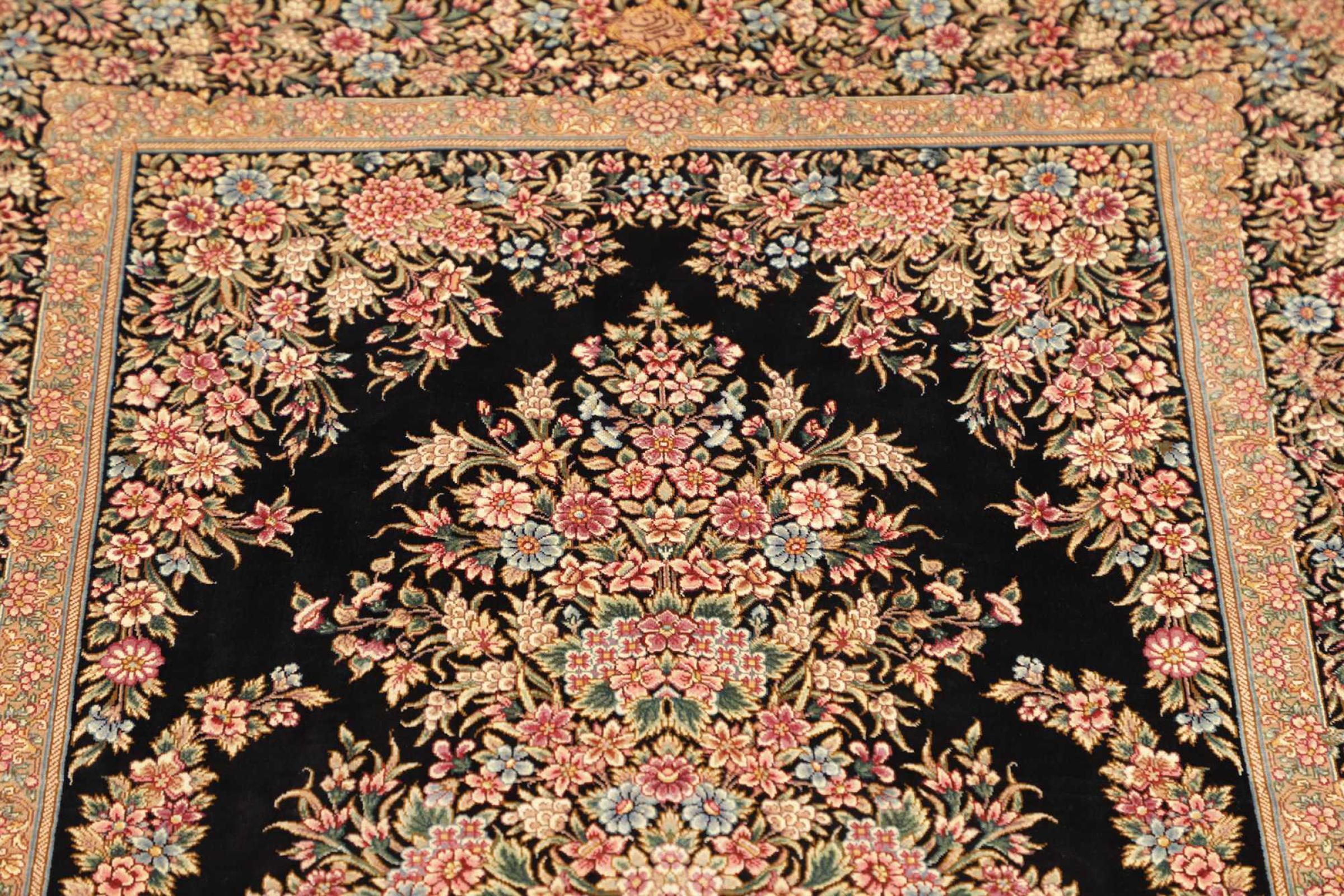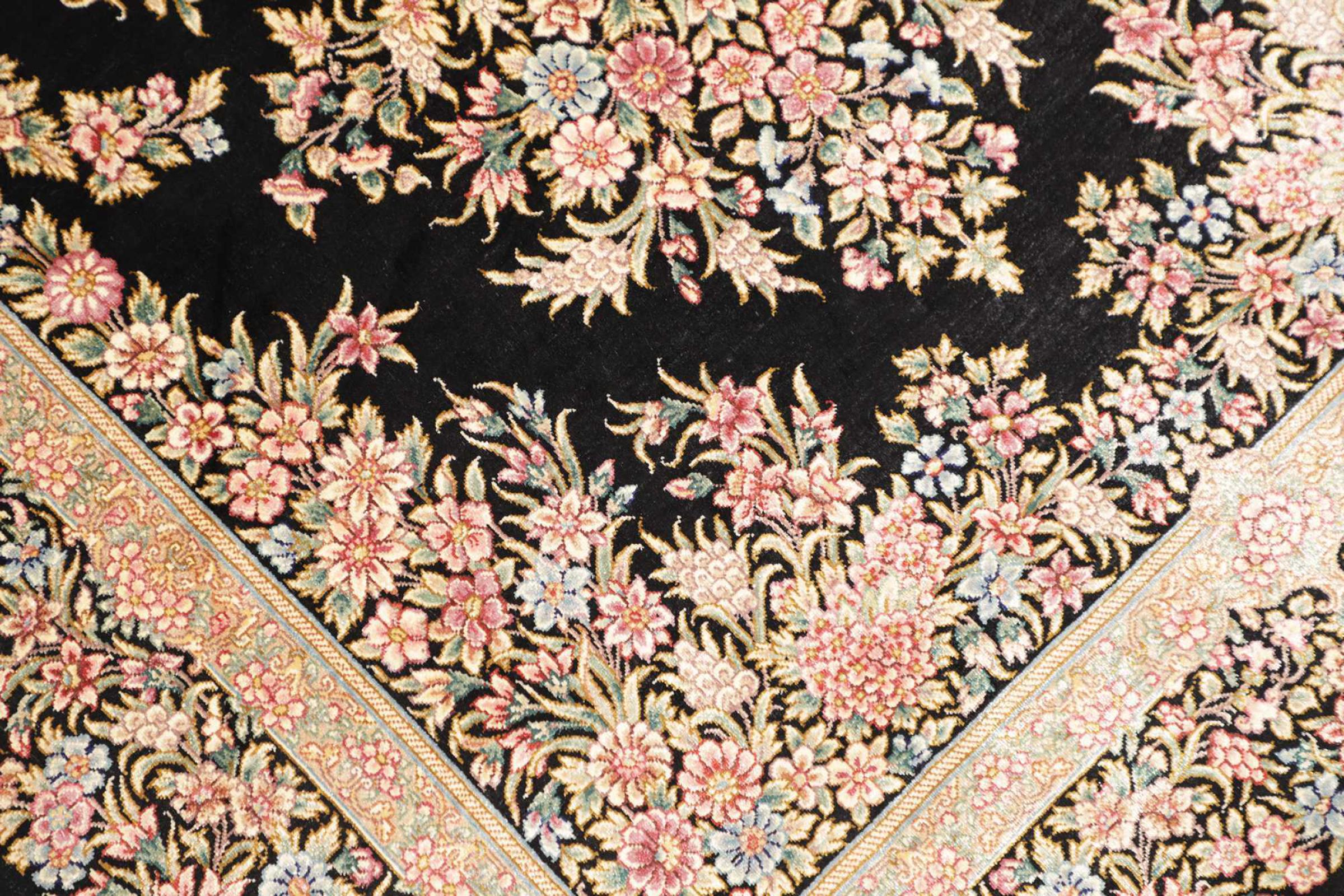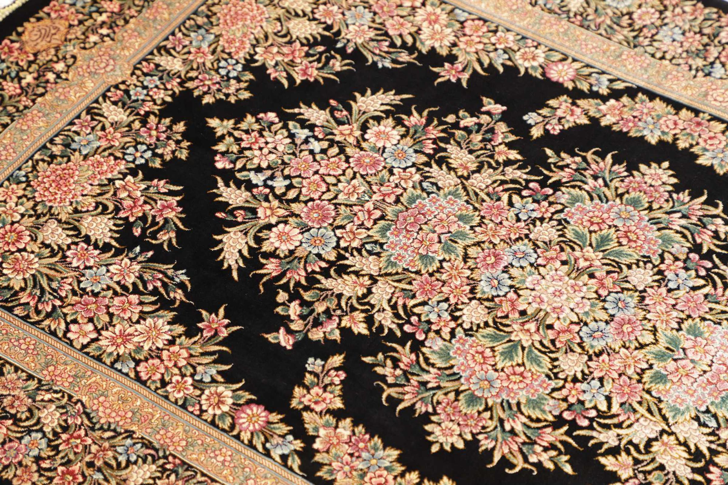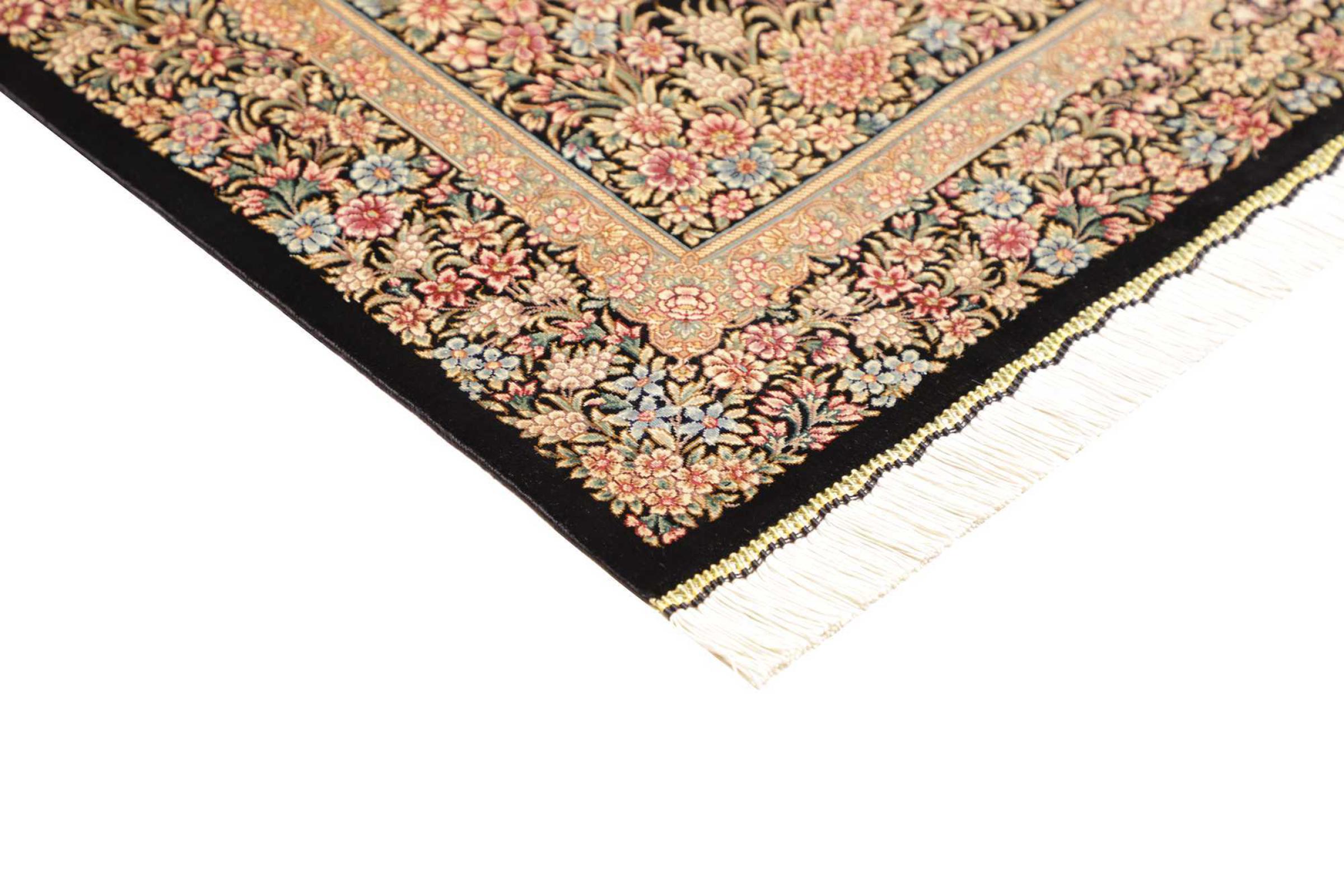Este tapete de seda Ghom é puro luxo. Os seus ornamentos e a seda natural pura falam por si. Aqui encontrará o Oriente em toda a sua perfeição para a sua casa. Um tapete de seda de Ghom impressiona até os coleccionadores de arte de tapetes persas. Dependendo da incidência da luz, a seda permite que as cores brilhem nas mais diversas facetas. Isso faz deste tapete persa um destaque inesquecível e fará com que seu quarto brilhe num ambiente aconchegante e de altíssima qualidade.