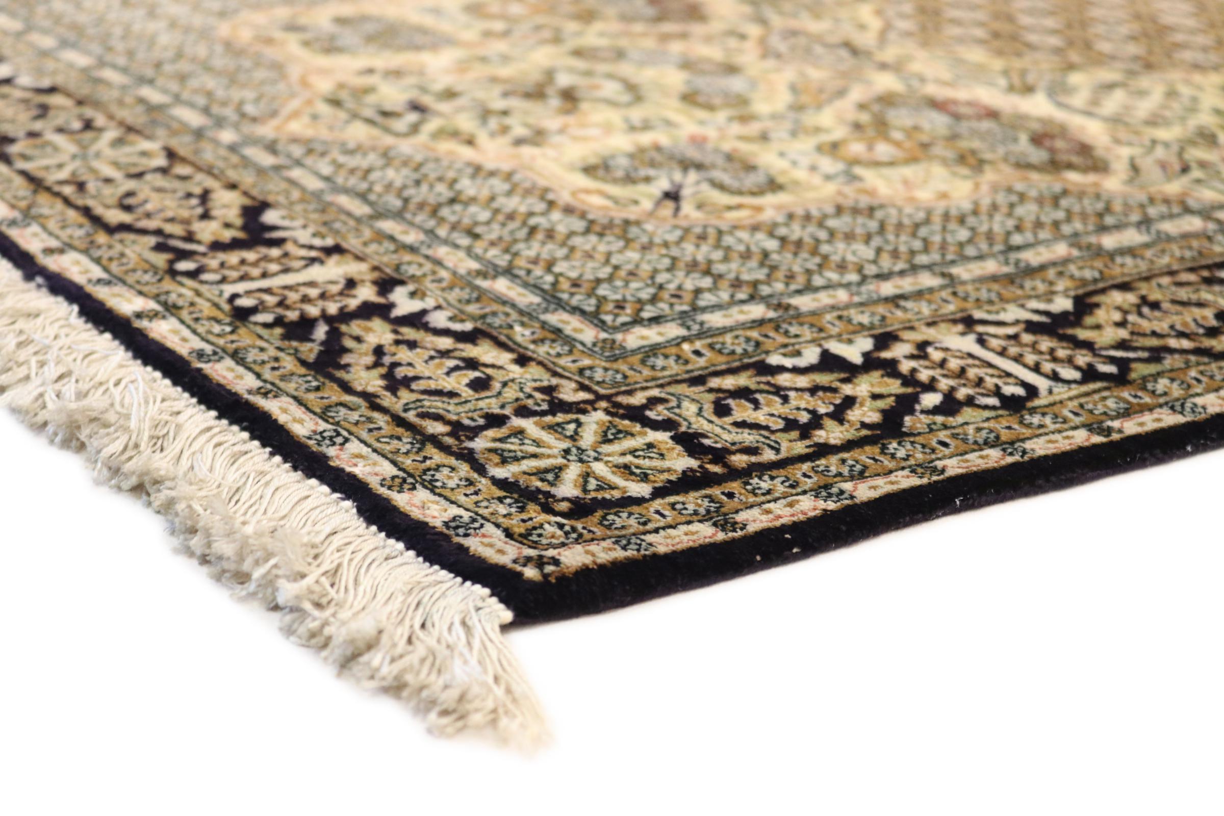 Este tapete de seda Ghom é puro luxo. Os seus ornamentos e a seda natural pura falam por si. Aqui encontrará o Oriente em toda a sua perfeição para a sua casa. Um tapete de seda de Ghom impressiona até os coleccionadores de arte de tapetes persas. Dependendo da incidência da luz, a seda permite que as cores brilhem nas mais diversas facetas. Isso faz deste tapete persa um destaque inesquecível e fará com que seu quarto brilhe num ambiente aconchegante e de altíssima qualidade.