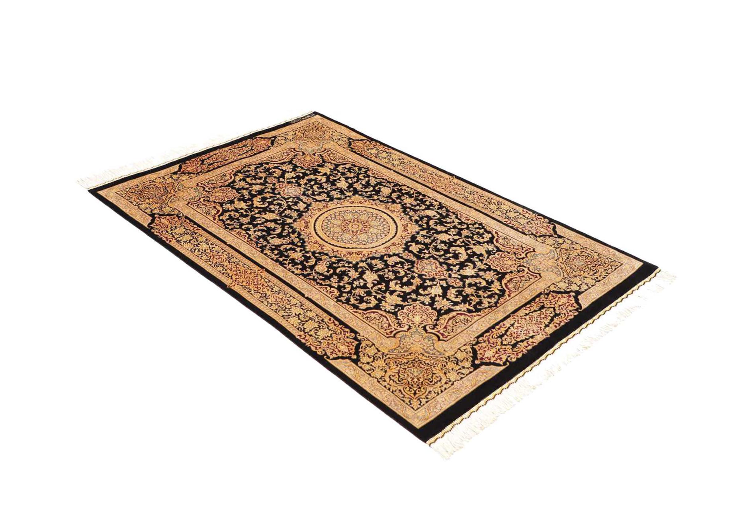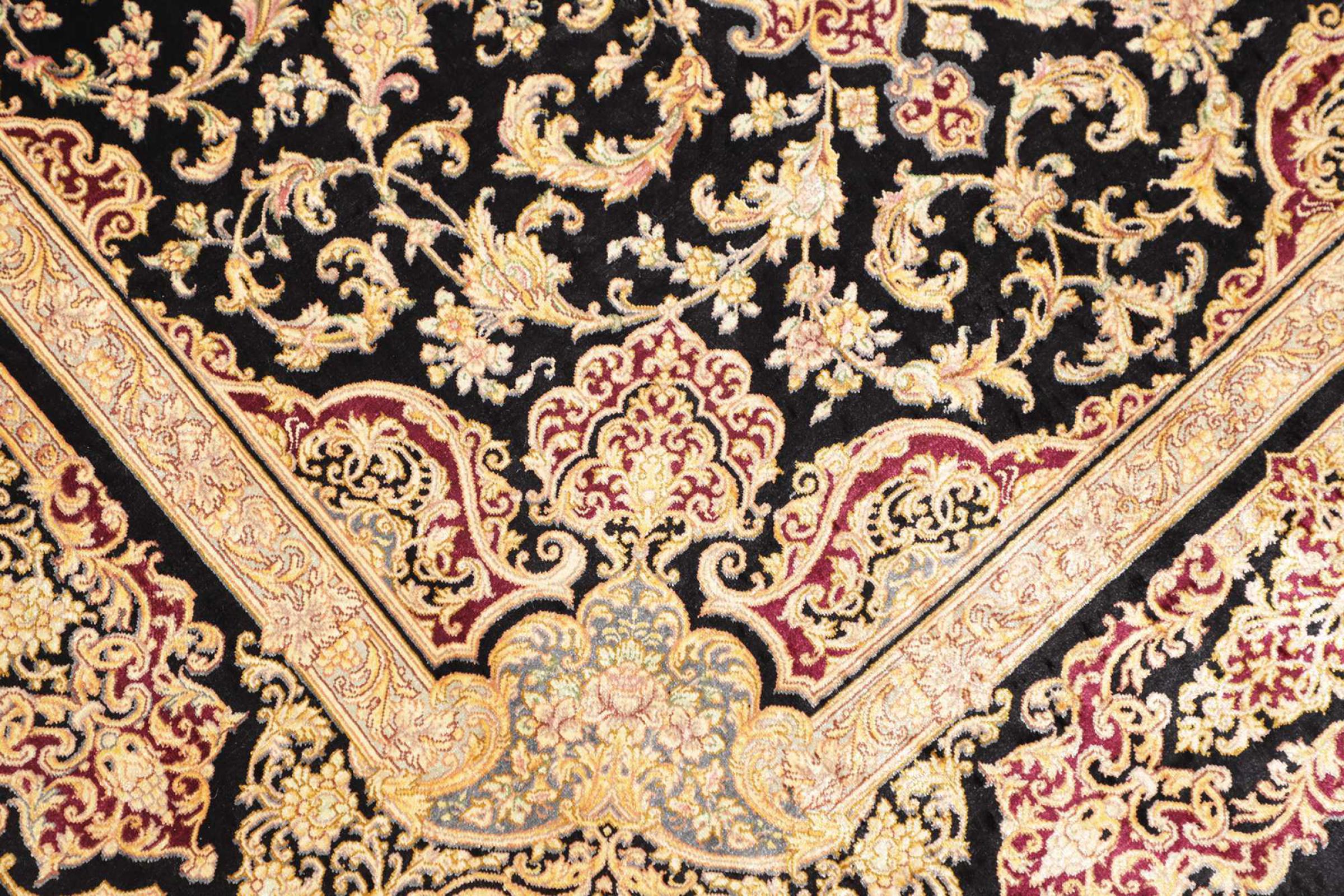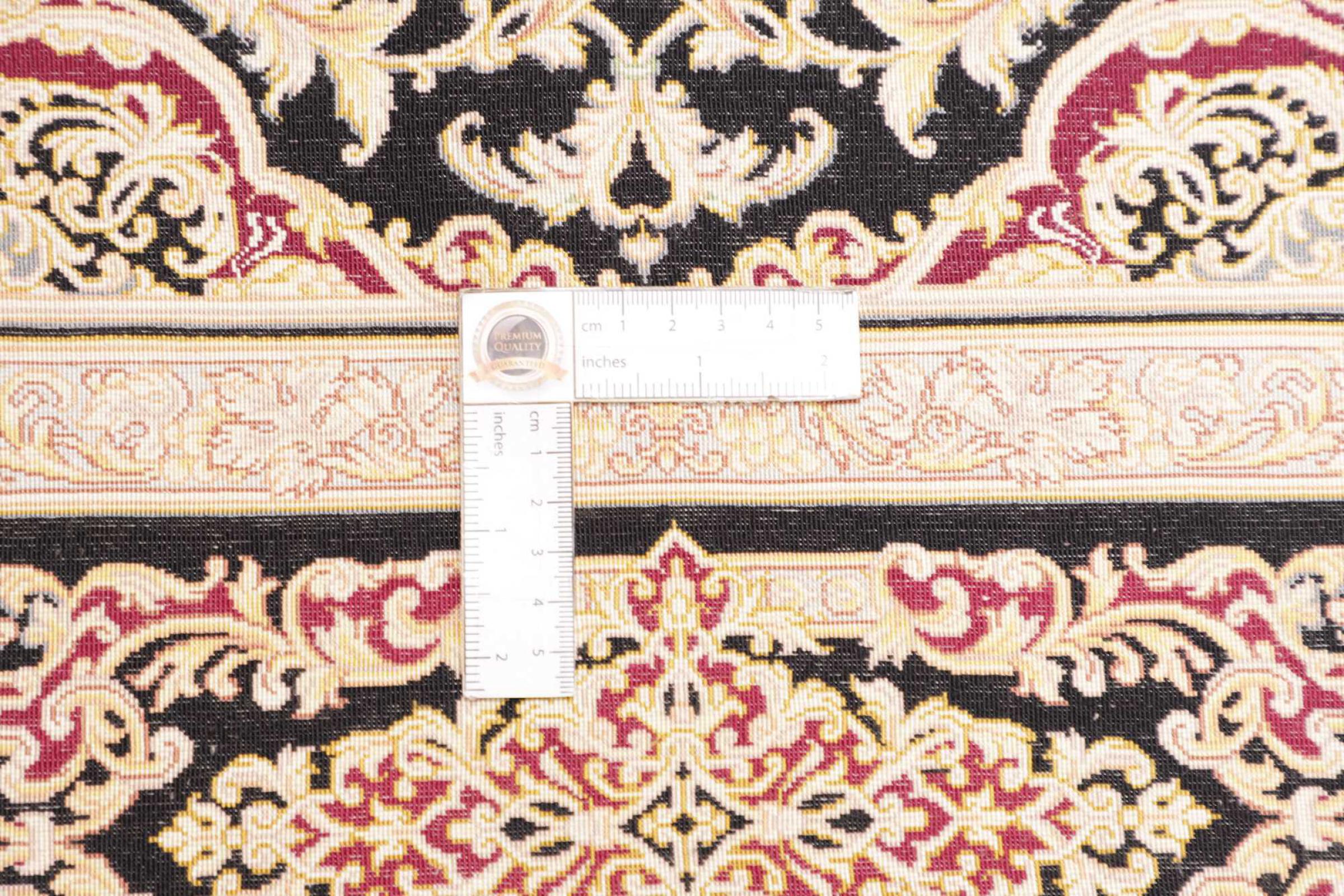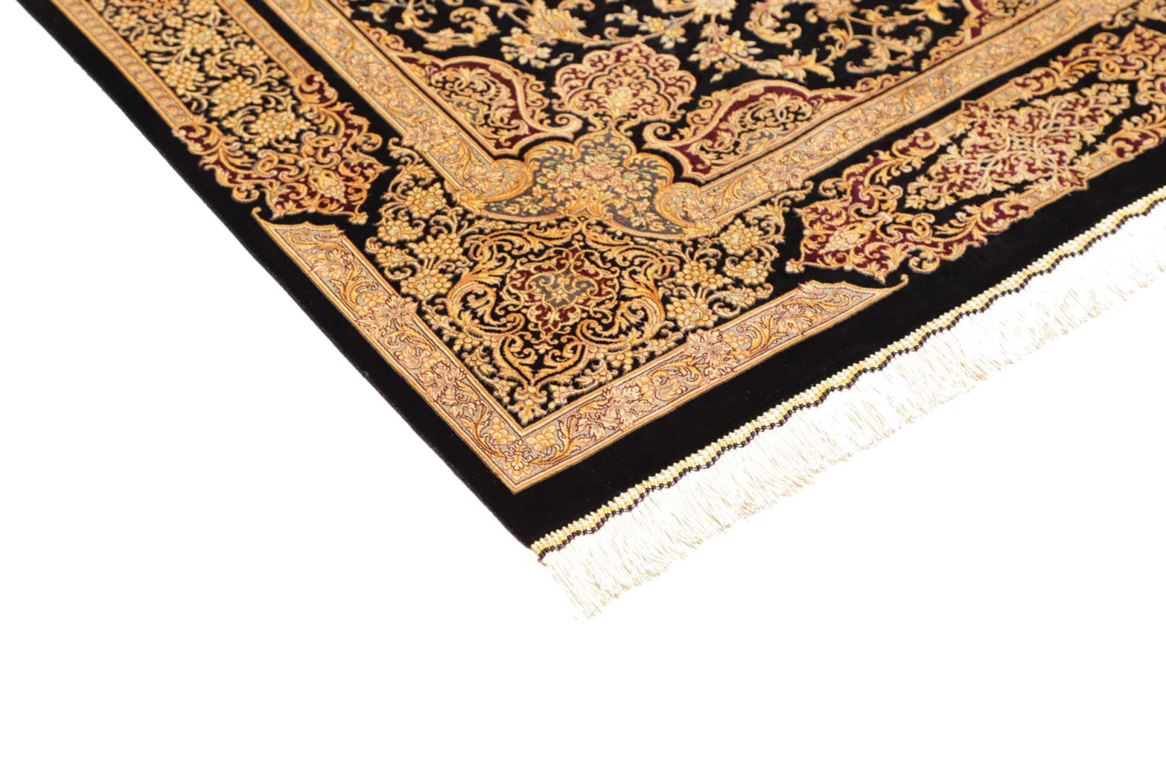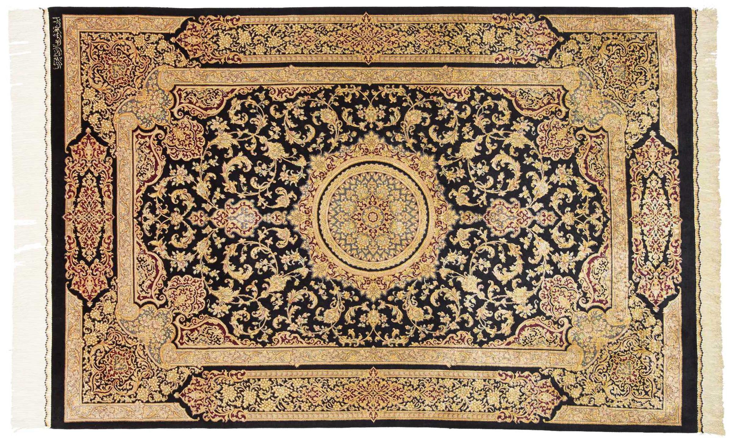 Este tapete de seda Ghom é puro luxo. Os seus ornamentos e a seda natural pura falam por si. Aqui encontrará o Oriente em toda a sua perfeição para a sua casa. Um tapete de seda de Ghom impressiona até os coleccionadores de arte de tapetes persas. Dependendo da incidência da luz, a seda permite que as cores brilhem nas mais diversas facetas. Isso faz deste tapete persa um destaque inesquecível e fará com que seu quarto brilhe num ambiente aconchegante e de altíssima qualidade.