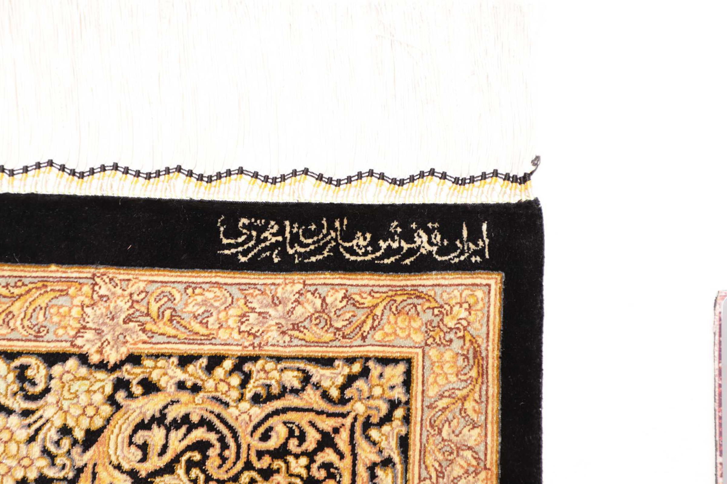 Nº do Tapete: 247045003062448 Tamanho: 153x101 cm Espessura: aproximadamente 3 mm Nós: 1 000 000 / m² Processamento: Atado à mão Veludo: Seda Urdidura: Seda Origem: Pérsia / Iran Idade: Novo Peso: aproximadamente 3 kg Em armazém: Único - Apenas 1 em stock