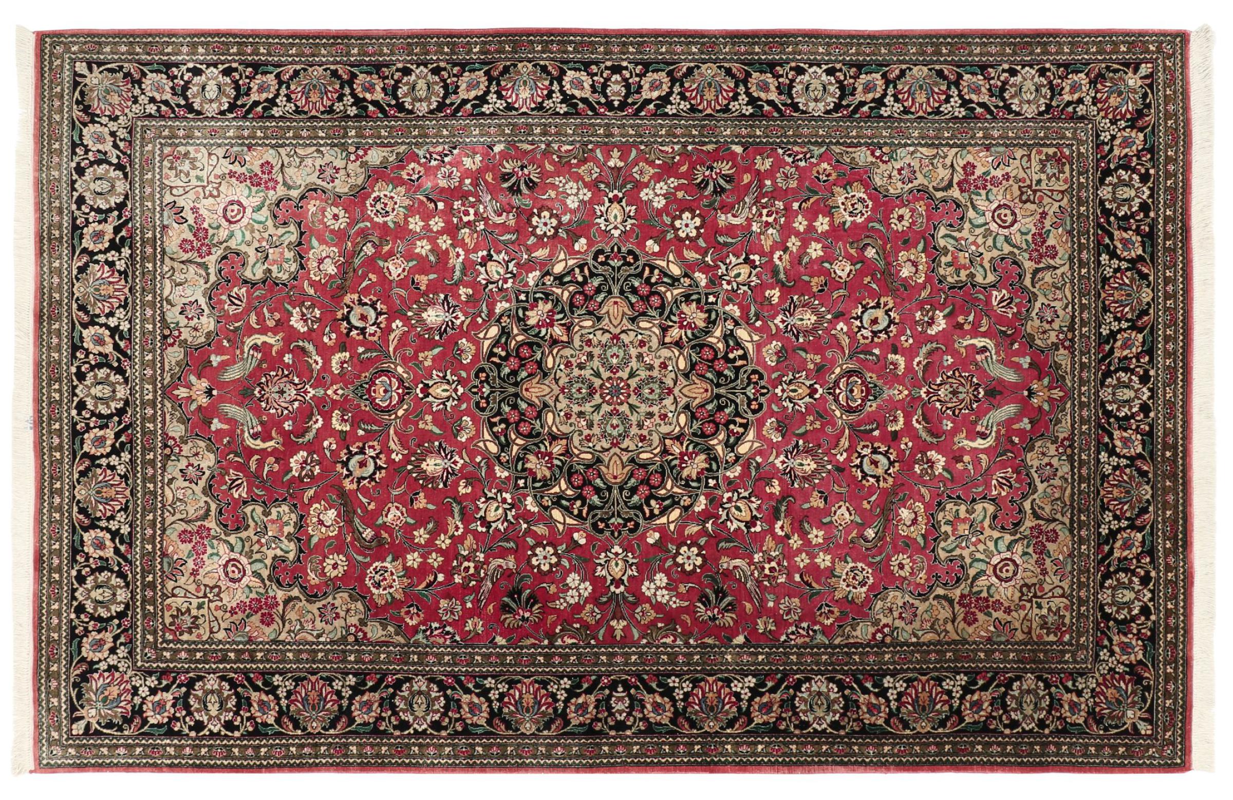 Este tapete de seda Ghom é puro luxo. Os seus ornamentos e a seda natural pura falam por si. Aqui encontrará o Oriente em toda a sua perfeição para a sua casa. Um tapete de seda de Ghom impressiona até os coleccionadores de arte de tapetes persas. Dependendo da incidência da luz, a seda permite que as cores brilhem nas mais diversas facetas. Isso faz deste tapete persa um destaque inesquecível e fará com que seu quarto brilhe num ambiente aconchegante e de altíssima qualidade.