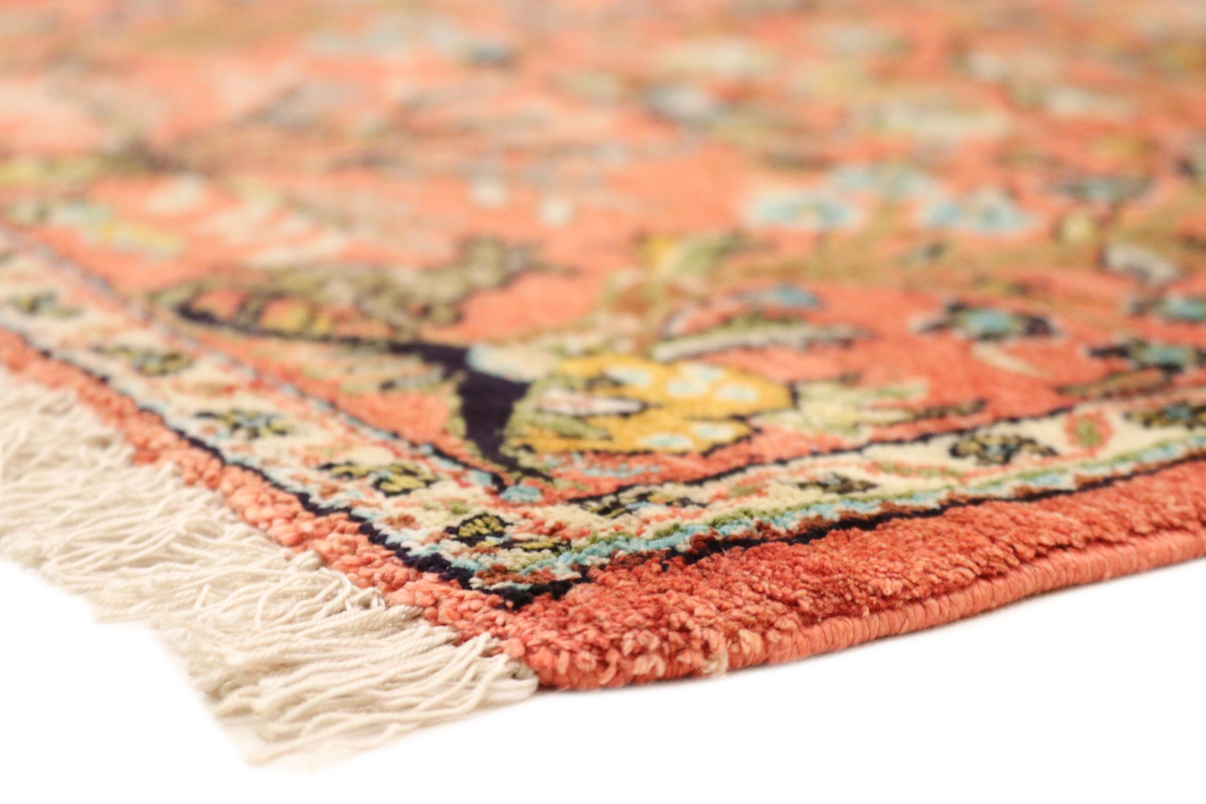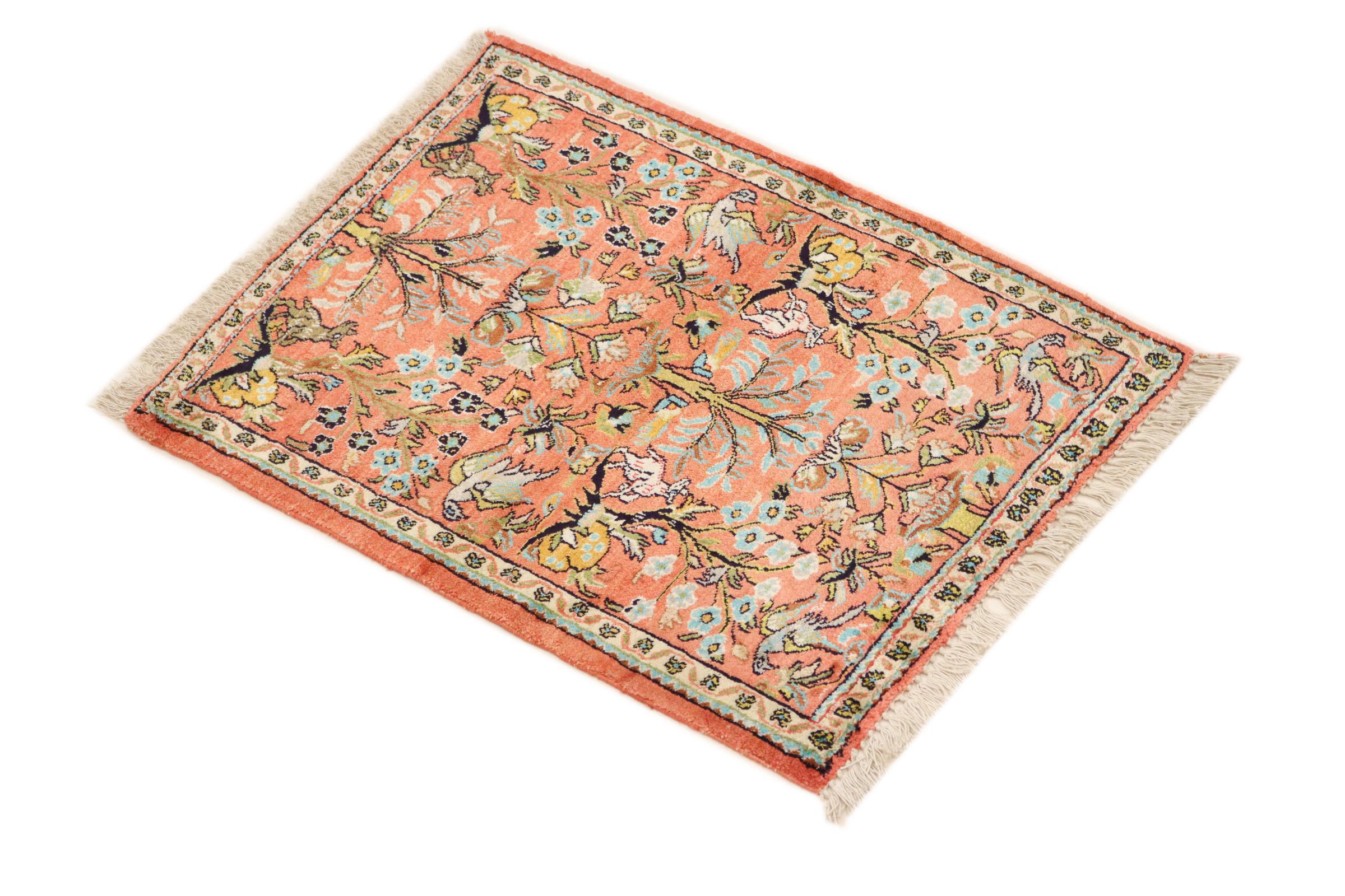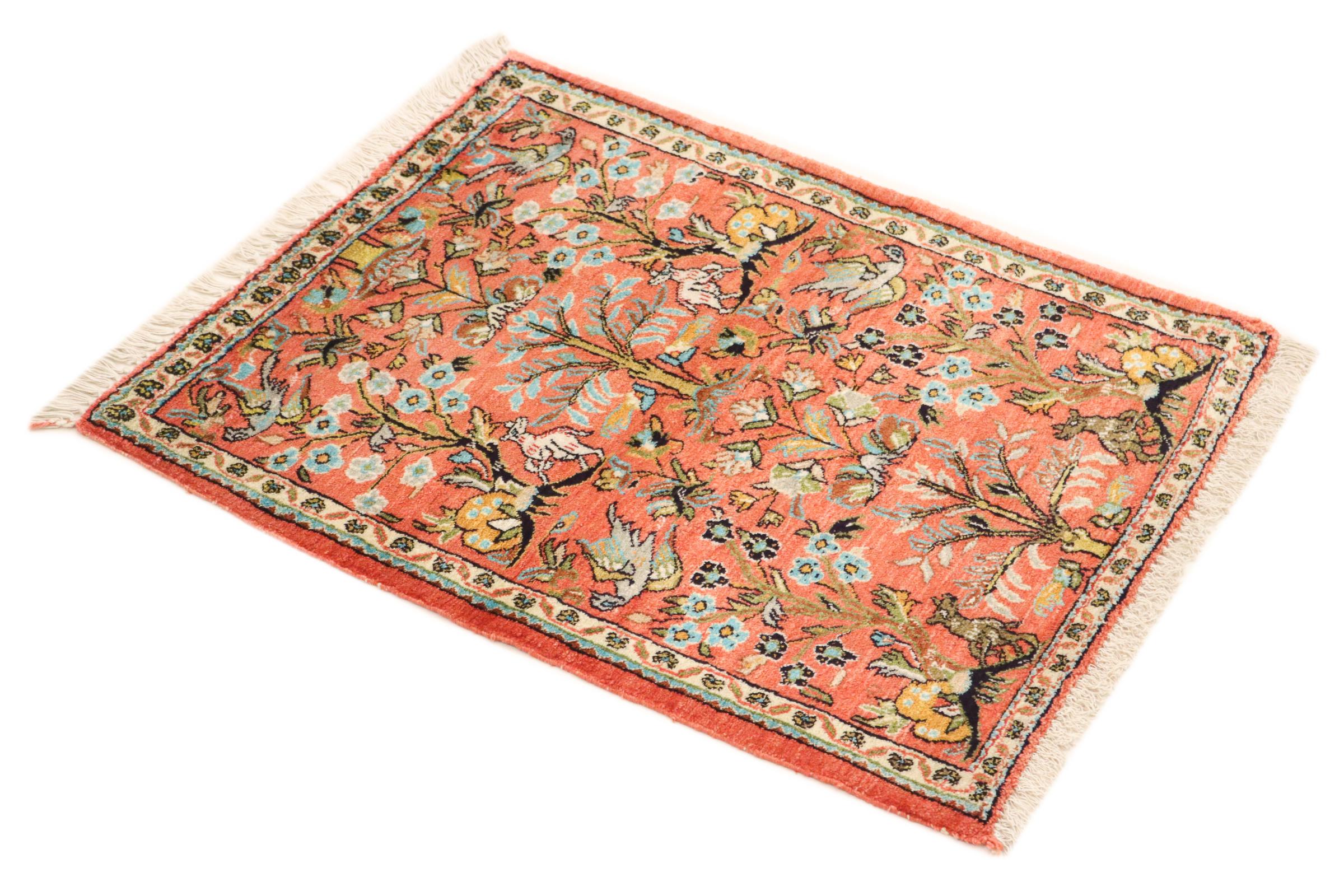 Este tapete de seda Ghom é puro luxo. Os seus ornamentos e a seda natural pura falam por si. Aqui encontrará o Oriente em toda a sua perfeição para a sua casa. Um tapete de seda de Ghom impressiona até os coleccionadores de arte de tapetes persas. Dependendo da incidência da luz, a seda permite que as cores brilhem nas mais diversas facetas. Isso faz deste tapete persa um destaque inesquecível e fará com que seu quarto brilhe num ambiente aconchegante e de altíssima qualidade.