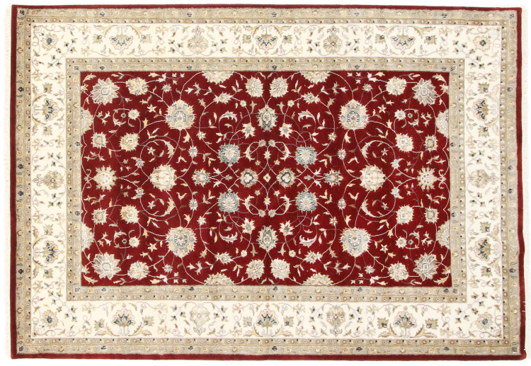 Nº do Tapete: 167226005649909 Tamanho: 247x170 cm Espessura: aproximadamente 8 mm Nós: 320 000 - 360 000 / m² Processamento: Atado à mão Veludo: Lã com seda Urdidura: Algodão Origem: Índia Idade: Novo Peso: aproximadamente 17 kg Em armazém: Único - Apenas 1 em stock