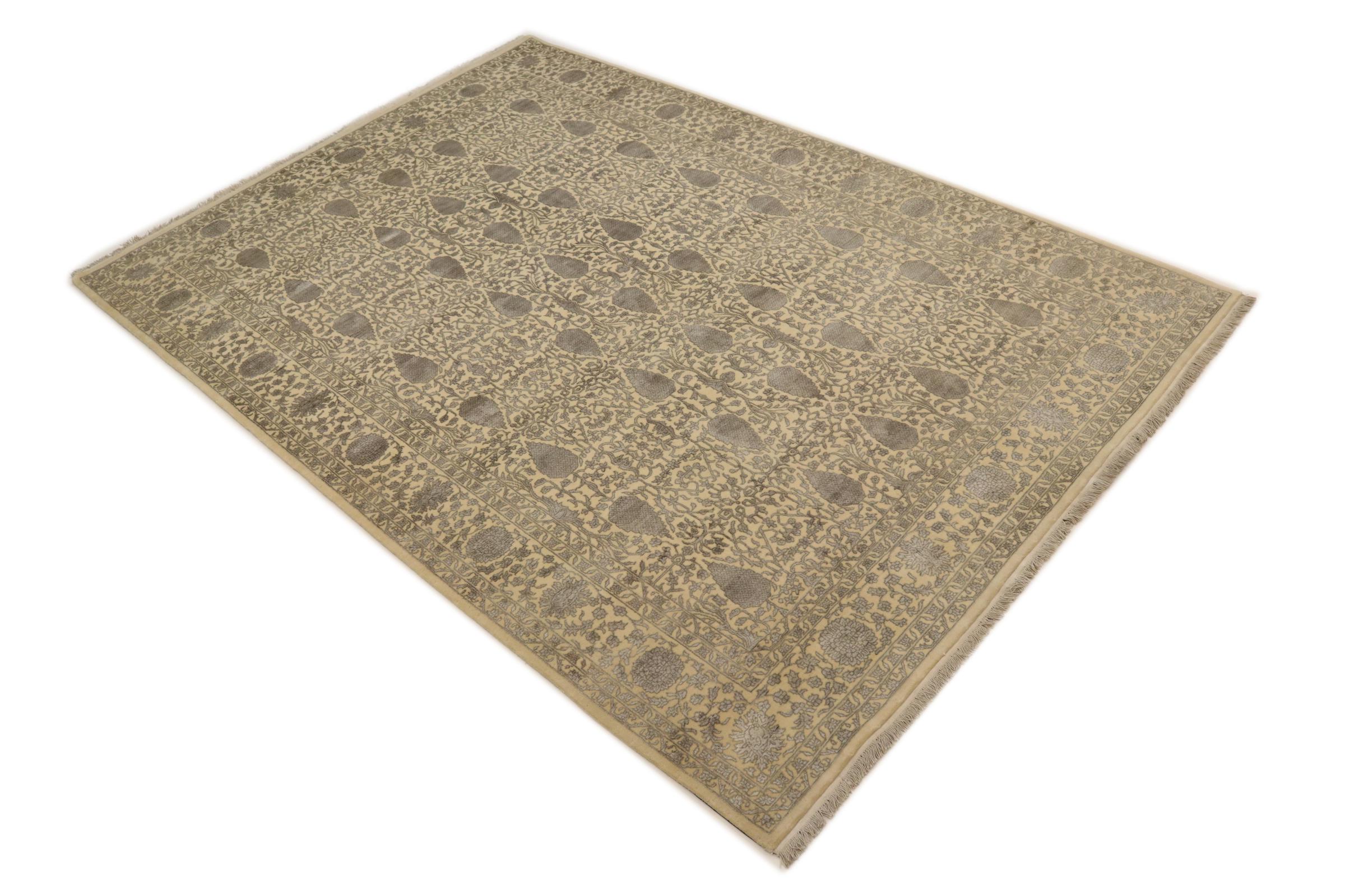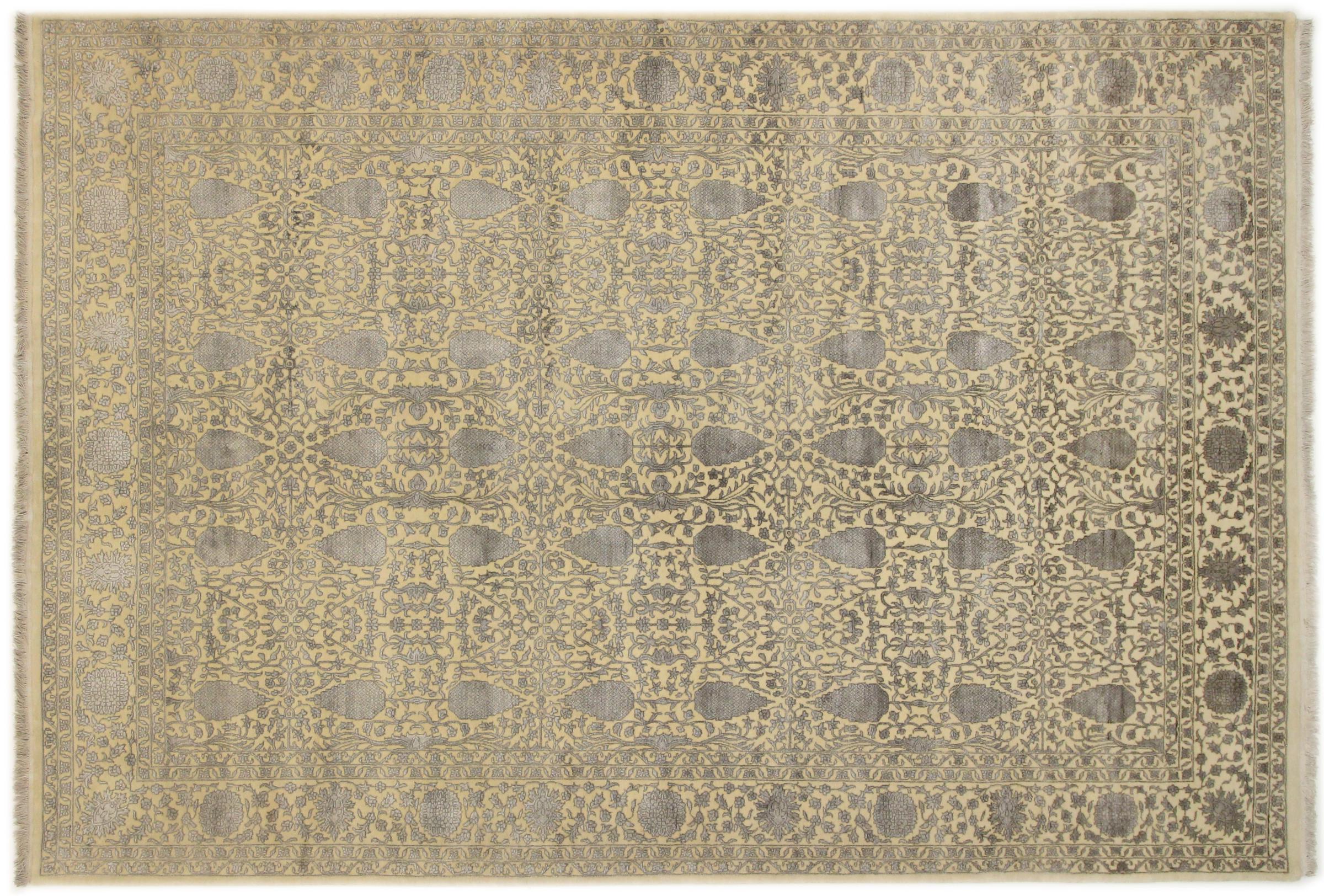Nº do Tapete: 16722700191623 Tamanho: 301x207 cm Espessura: aproximadamente 8 mm Nós: 320 000 - 360 000 / m² Processamento: Atado à mão Veludo: Lã com seda Urdidura: Algodão Origem: Índia Idade: Novo Peso: aproximadamente 25 kg Em armazém: Único - Apenas 1 em stock