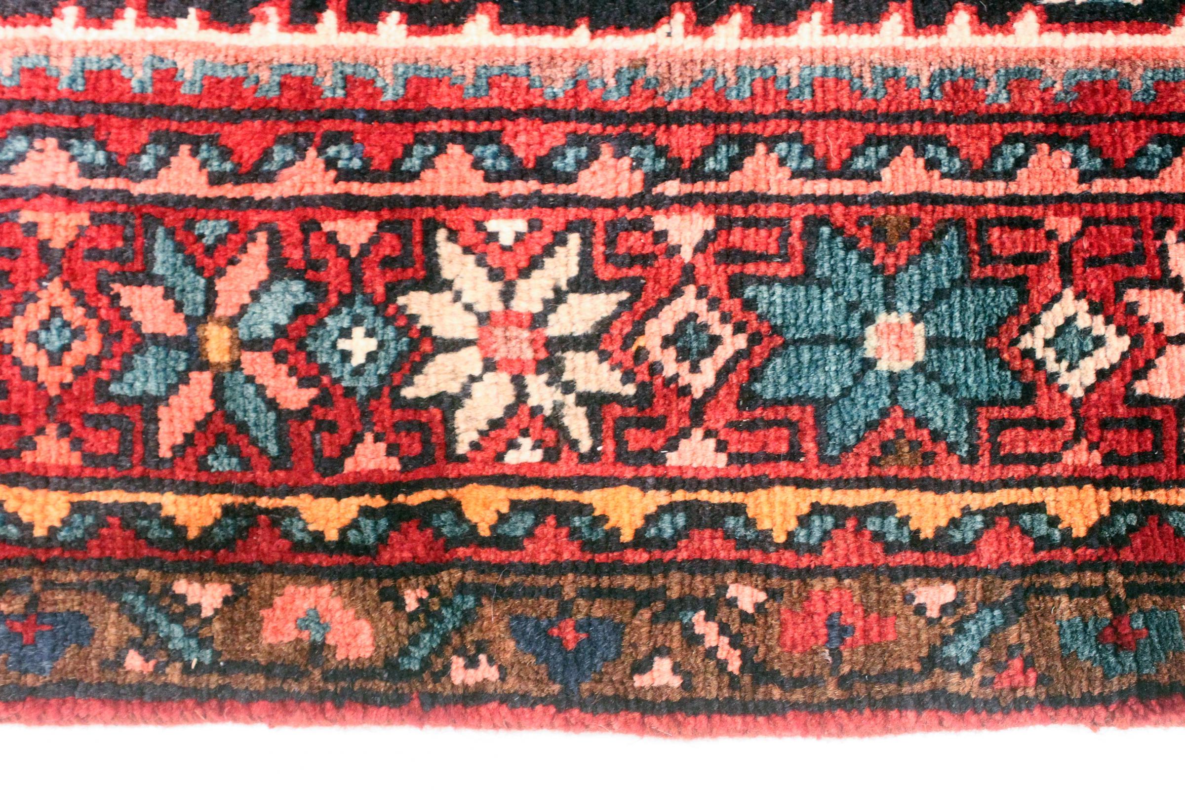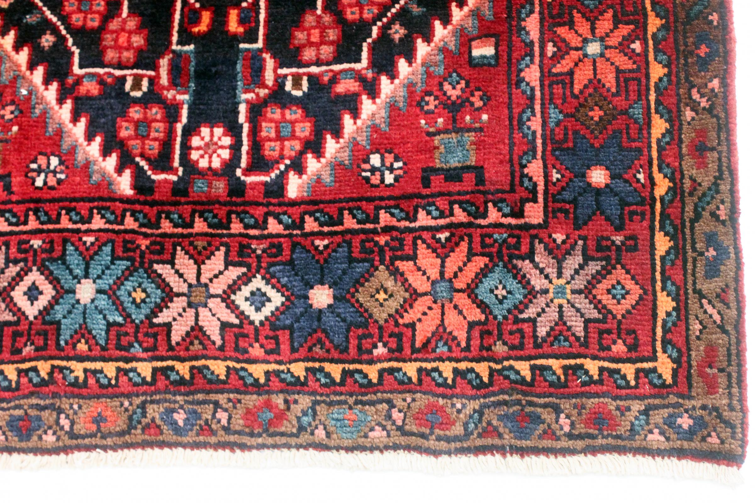 Há uma razão para este tapete Hamadan ser tão procurado nos novos conceitos de design de interiores. Combina um preço imbatível com uma qualidade excecional. Devido aos fios fortes utilizados no fabrico dos tapetes de Hamadan, este tapete persa é particularmente durável. Foi tecido à mão na cidade de Hamadan. Os padrões e ornamentos frequentemente geométricos são intemporais e, por isso, extremamente populares também nos interiores escandinavos. As cores arrojadas trazem aconchego e conforto ao seu quarto.