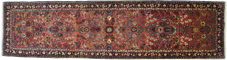 Nº do Tapete: 105919004937007 Tamanho: 324x82 cm Espessura: aproximadamente 8 mm Nós: 160 000 - 200 000 / m² Processamento: Atado à mão Veludo: Lã tecida à mão Urdidura: Algodão Origem: Pérsia / Iran Idade: Novo Peso: aproximadamente 9 kg Também conhecido como Huseinabad Em armazém: Único - Apenas 1 em stock