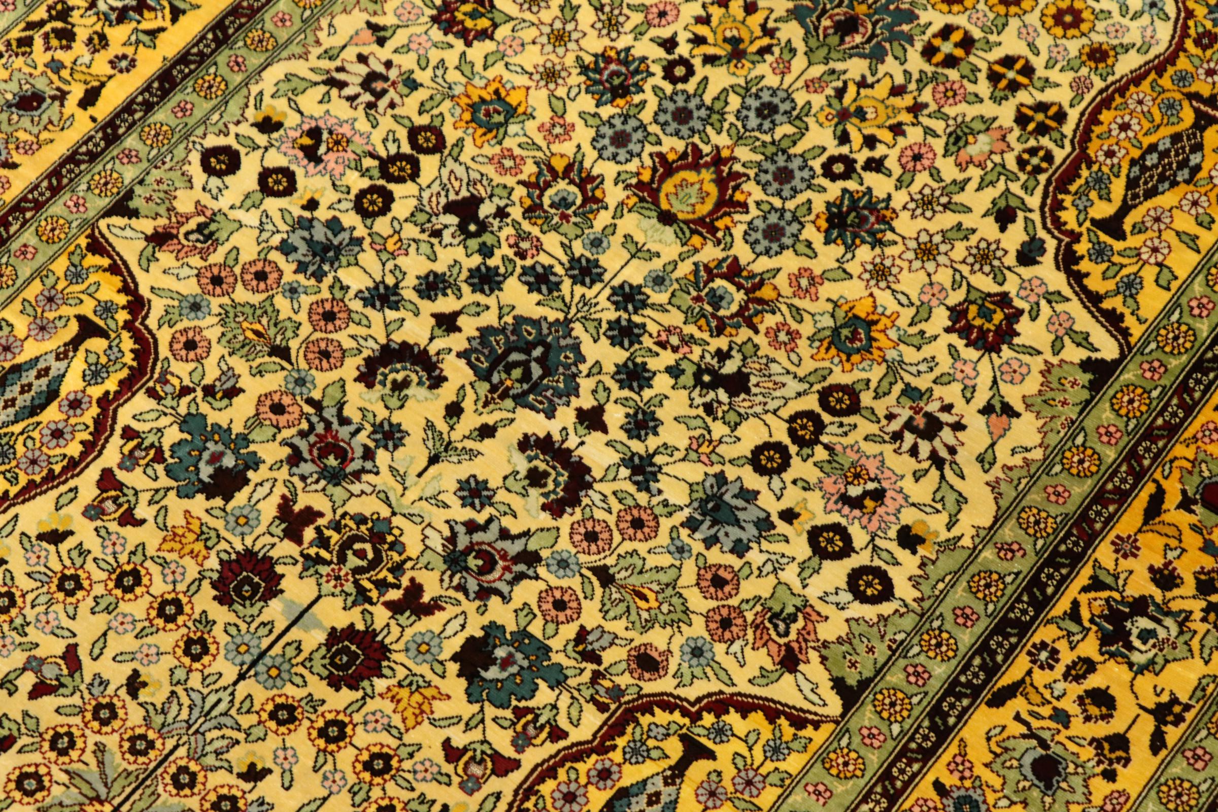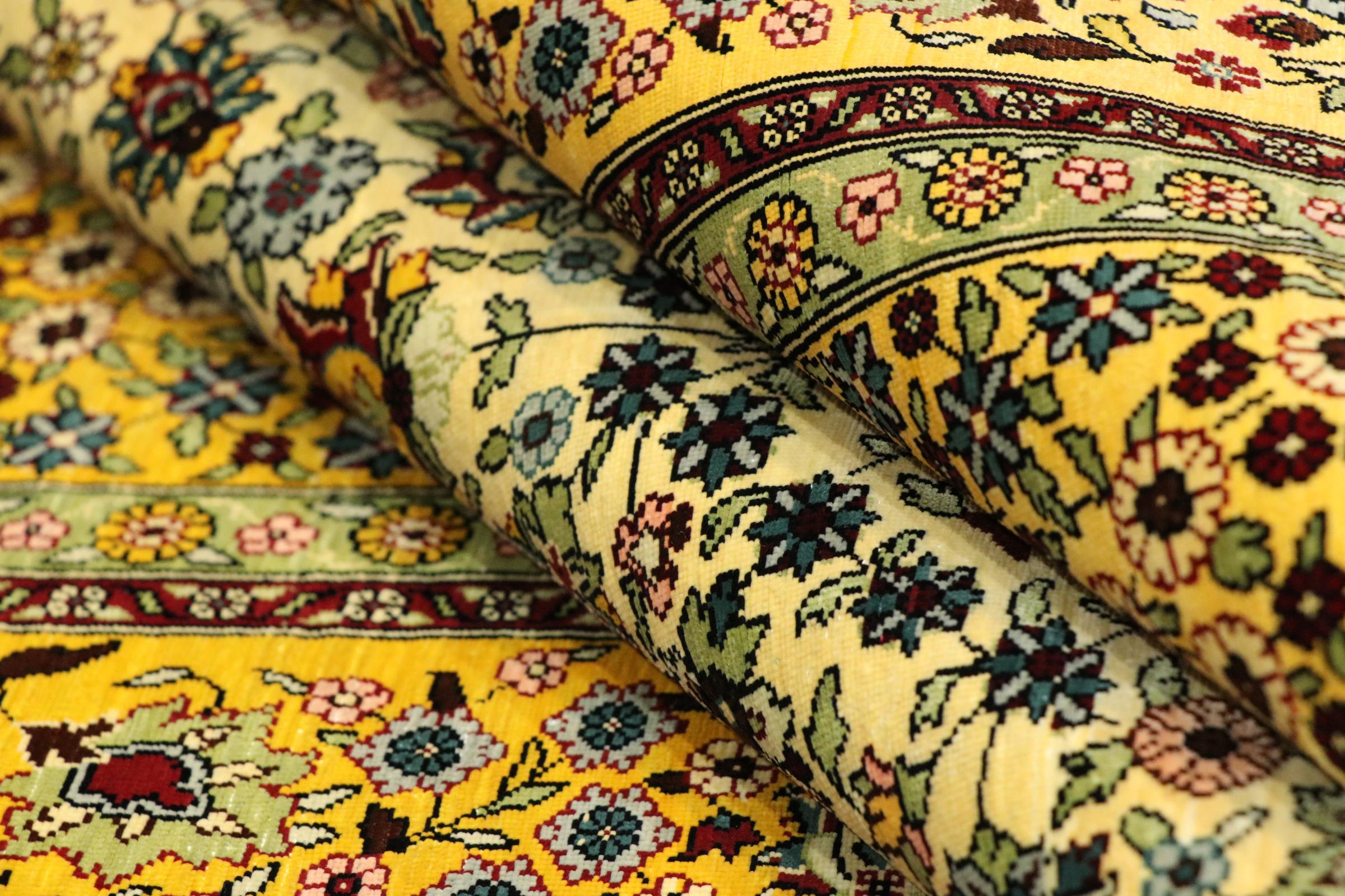 Nº do Tapete: 303403001937509 Tamanho: 113x73 cm Espessura: aproximadamente 5 mm Nós: 640 000 / m² Processamento: Atado à mão Veludo: Seda Urdidura: Seda Origem: Turquia Idade: Novo Peso: aproximadamente 3 kg Em armazém: Único - Apenas 1 em stock
