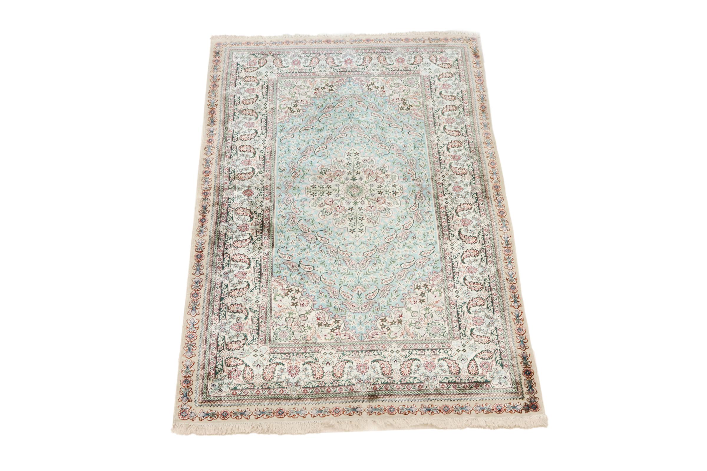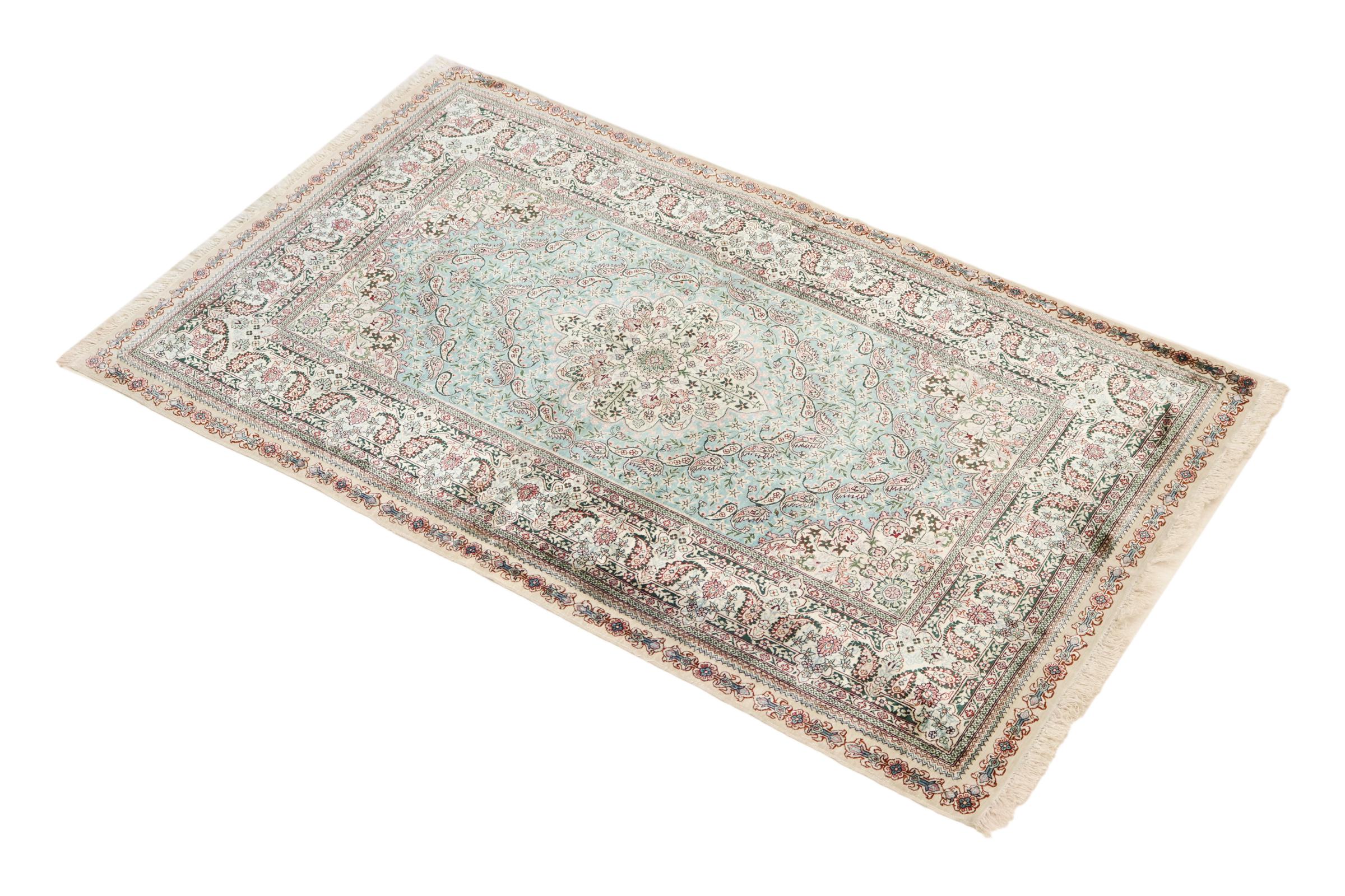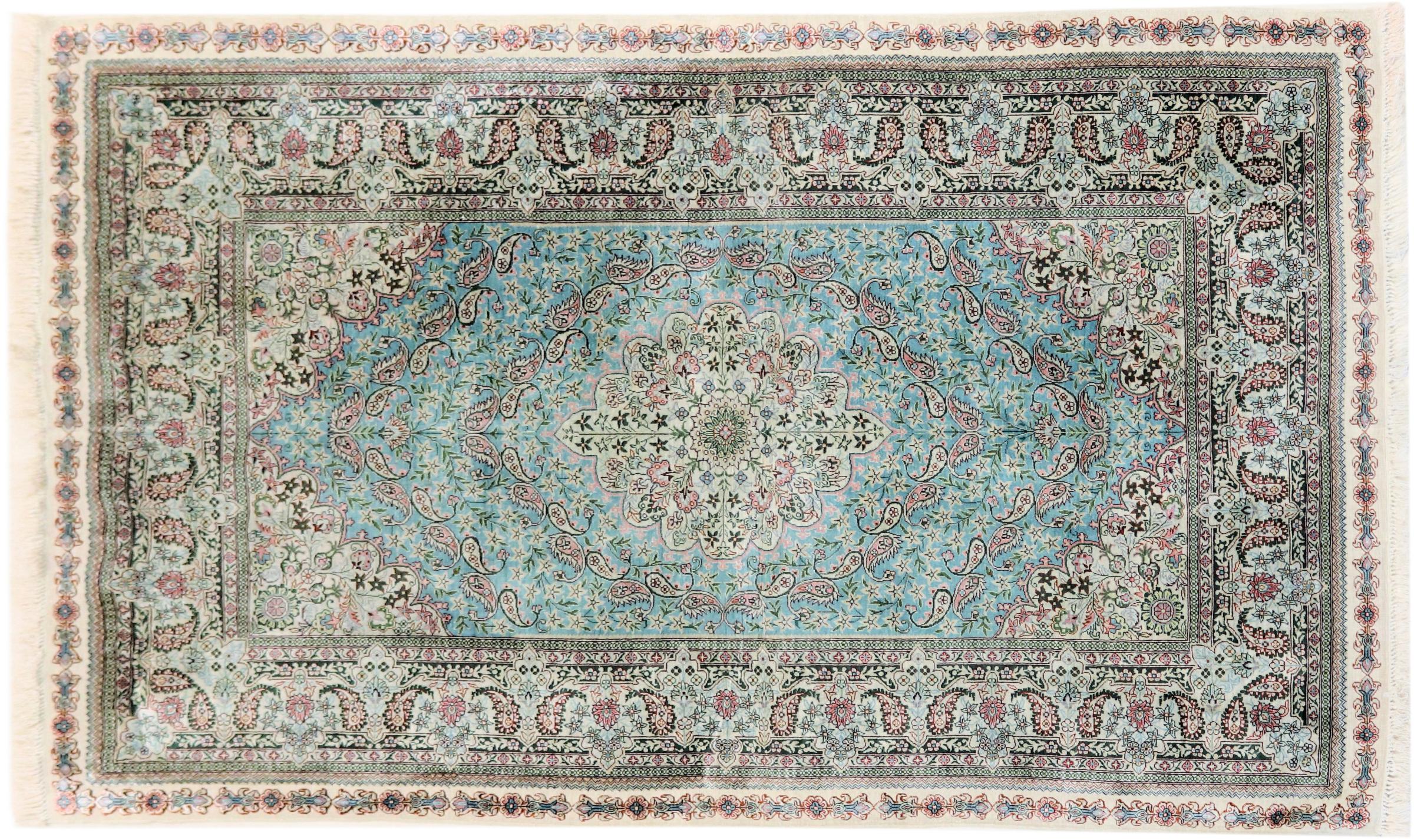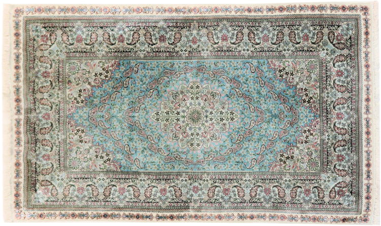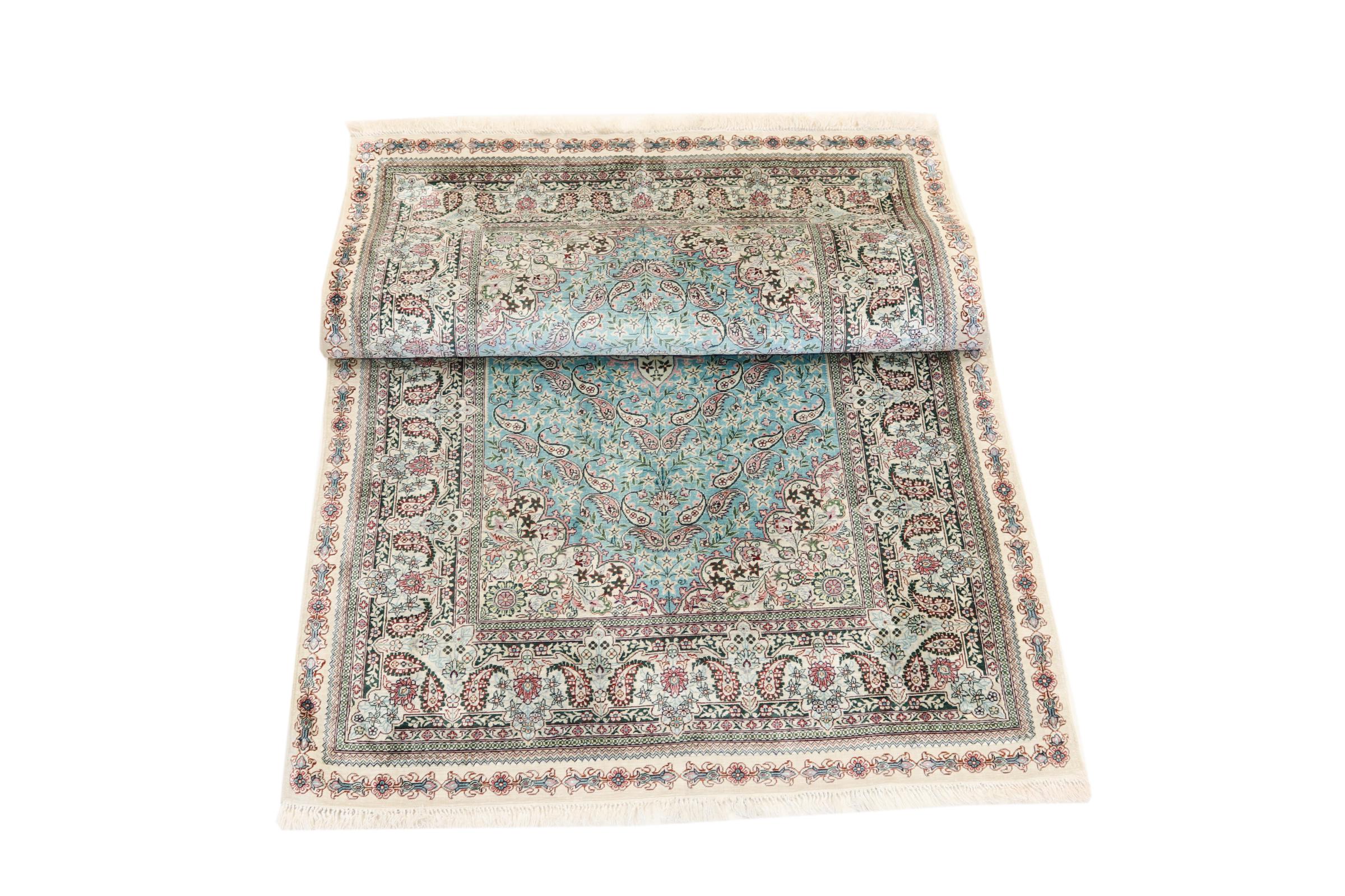 Nº do Tapete: 202254007069869 Tamanho: 152x91 cm Espessura: aproximadamente 3 mm Nós: 440 000 - 490 000 / m² Processamento: Atado à mão Veludo: Seda Urdidura: Seda Origem: Paquistão Idade: Novo Peso: aproximadamente 3 kg Em armazém: Único - Apenas 1 em stock