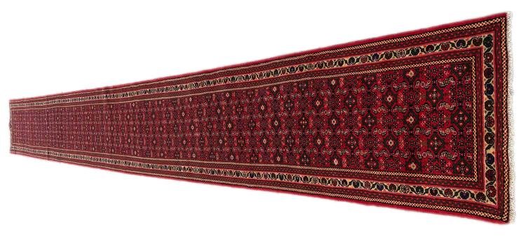 Este tapete pertence a tapetes de aldeia e nómadas do Irão, antiga Pérsia. Este tipo de tapete é atado à mão em cidades mais pequenas e aldeias da velha tradição. Mesmo os nómadas ainda atam tapetes persas ao ar livre. Os tapetes são atados sem padrão e completamente a partir da cabeça. Caracterizam-se por ornamentos clássicos, dispostos em padrões rectos e geométricos. Graças à sua origem cultural-tradicional, estes tapetes têm um carácter único que encarna a antiga Pérsia.