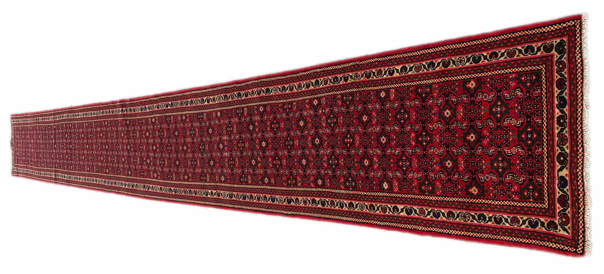 Nº do Tapete: 302973004169873 Tamanho: 697x81 cm Espessura: aproximadamente 12 mm Nós: 128 000 - 160 000 / m² Processamento: Atado à mão Veludo: Lã tecida à mão Urdidura: Algodão Origem: Pérsia / Iran Idade: Novo Peso: aproximadamente 20 kg Também conhecido como Huseinabad Em armazém: Único - Apenas 1 em stock