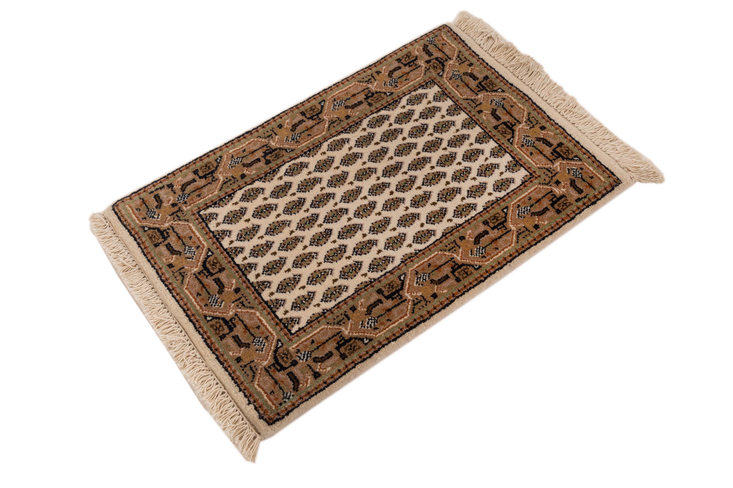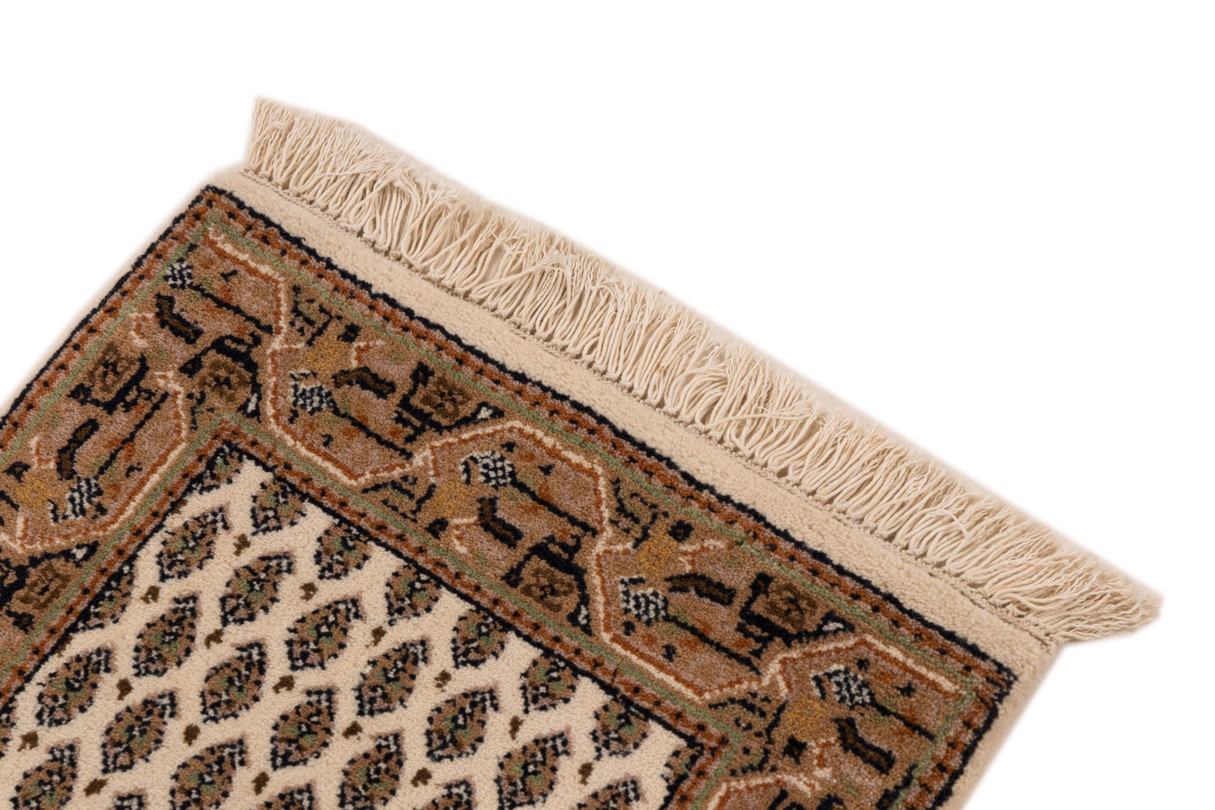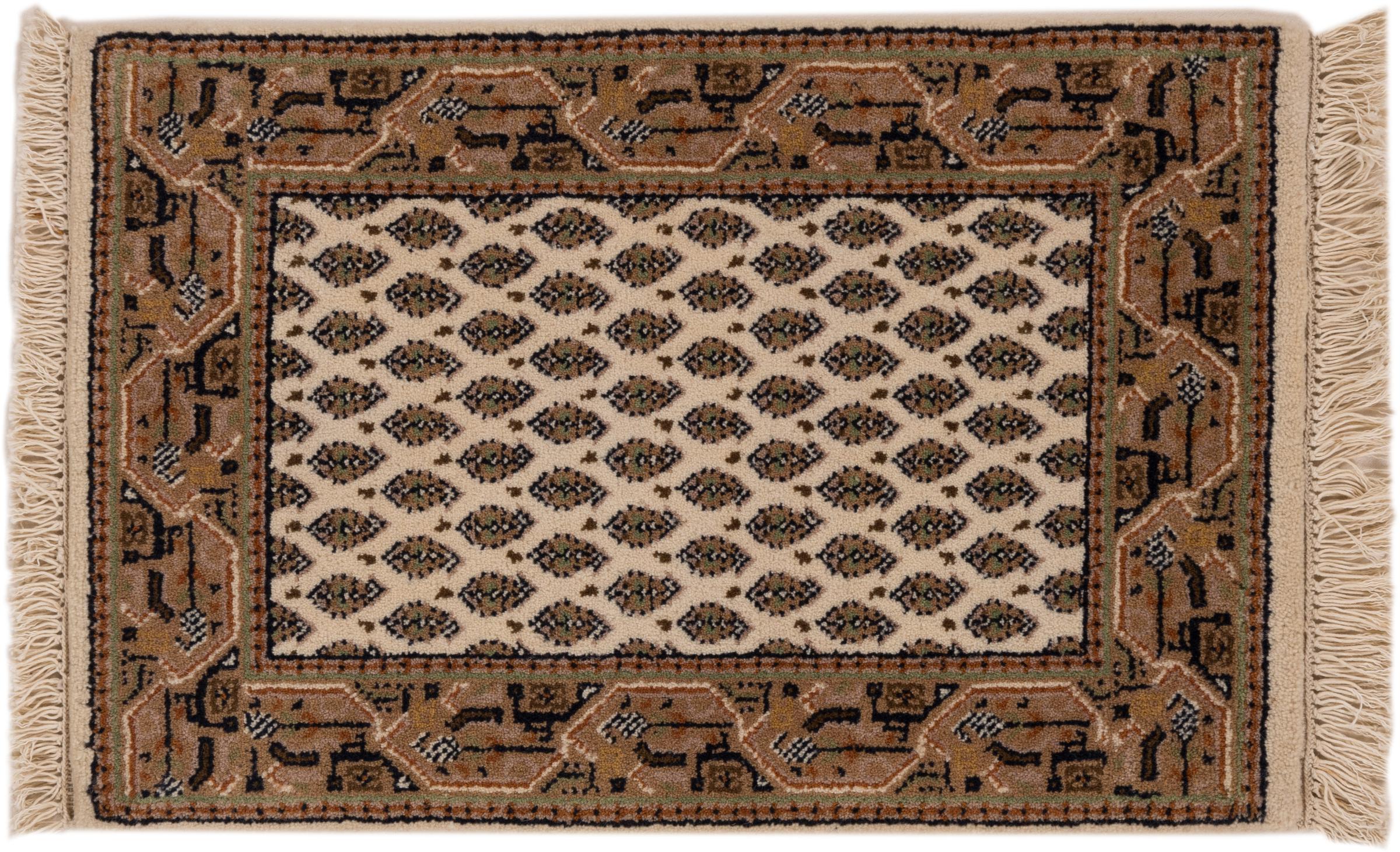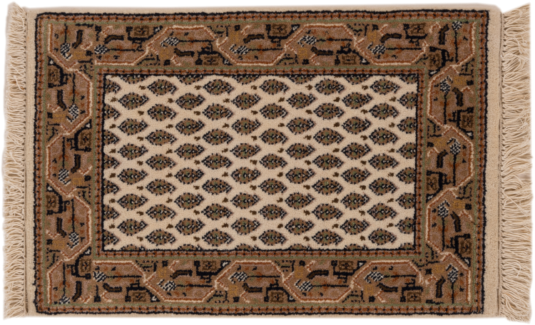 Nº do Tapete: 26717300565255 Tamanho: 61x41 cm Espessura: aproximadamente 12 mm Nós: 128 000 - 160 000 / m² Processamento: Atado à mão Veludo: Lã tecida à mão Urdidura: Algodão Origem: Índia Idade: Novo Peso: aproximadamente 1 kg