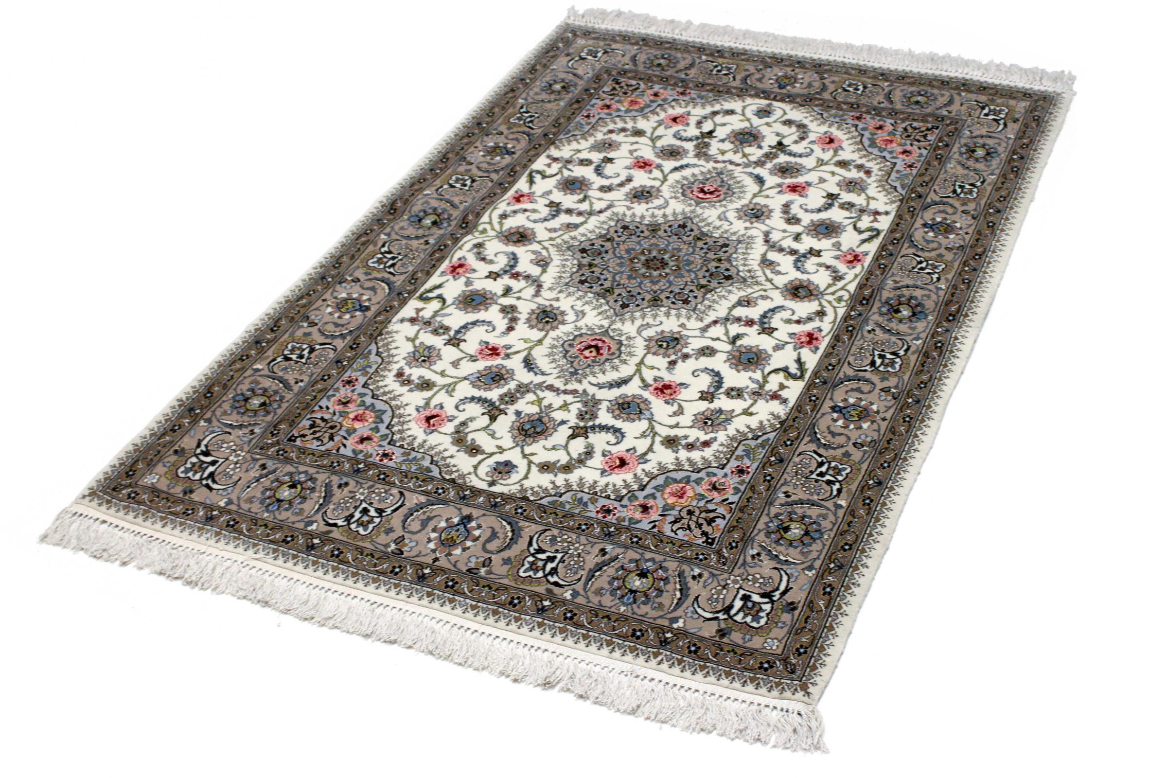 Nº do Tapete: 111847009331420 Tamanho: 165x105 cm Espessura: aproximadamente 6 mm Nós: 1 000 000 / m² Processamento: Atado à mão Veludo: Lã com seda Urdidura: Algodão Origem: Pérsia / Iran Idade: Novo Peso: aproximadamente 5 kg Em armazém: Único - Apenas 1 em stock