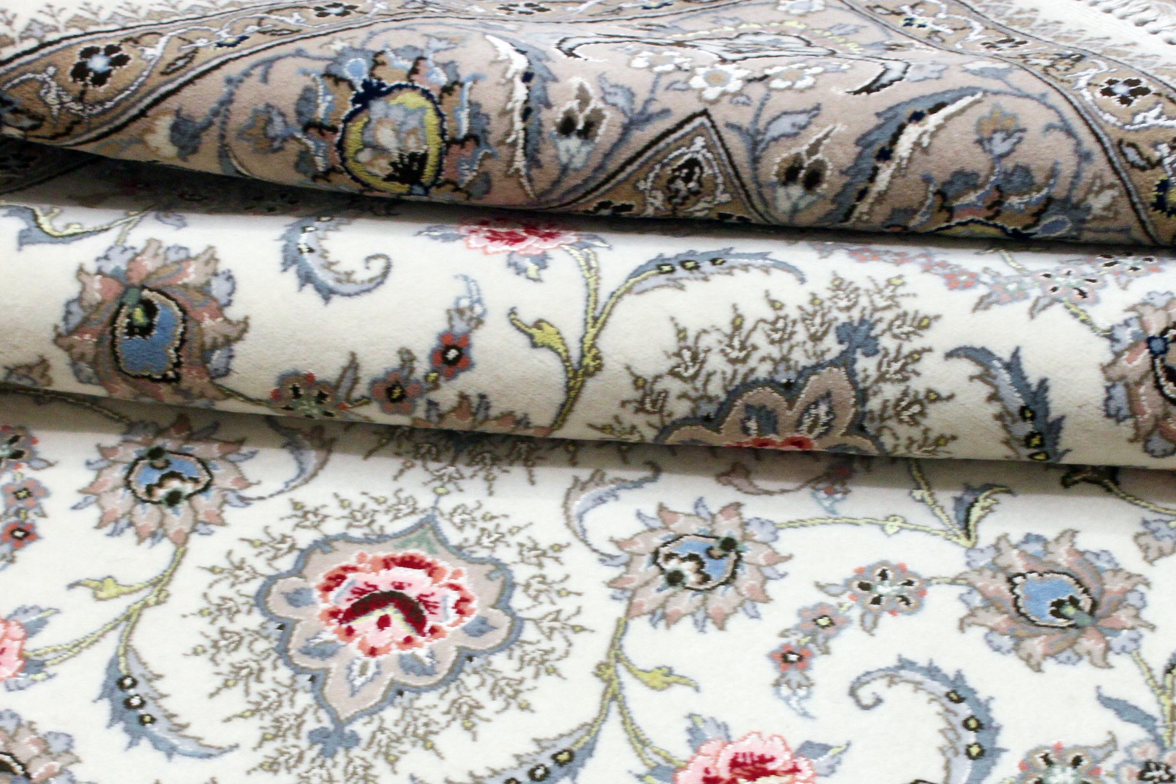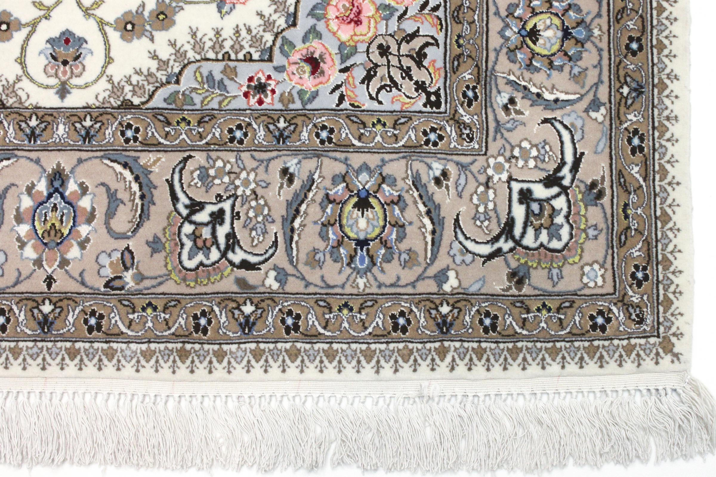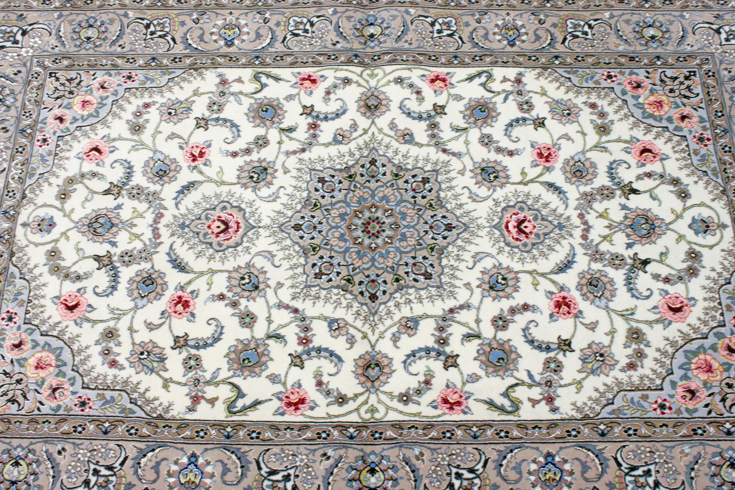 Este tapete de Isfahan é feito a partir da arte tradicional e mais elevada de atar. Foi magistralmente trabalhado e decorado com ornamentos fascinantes. O tapete persa foi feito à mão em Isfahan, provavelmente a mais bela cidade do Irão, com os melhores fios. Os tapetes de Isfahan estão entre os persas mais valiosos e podem ser um verdadeiro investimento.