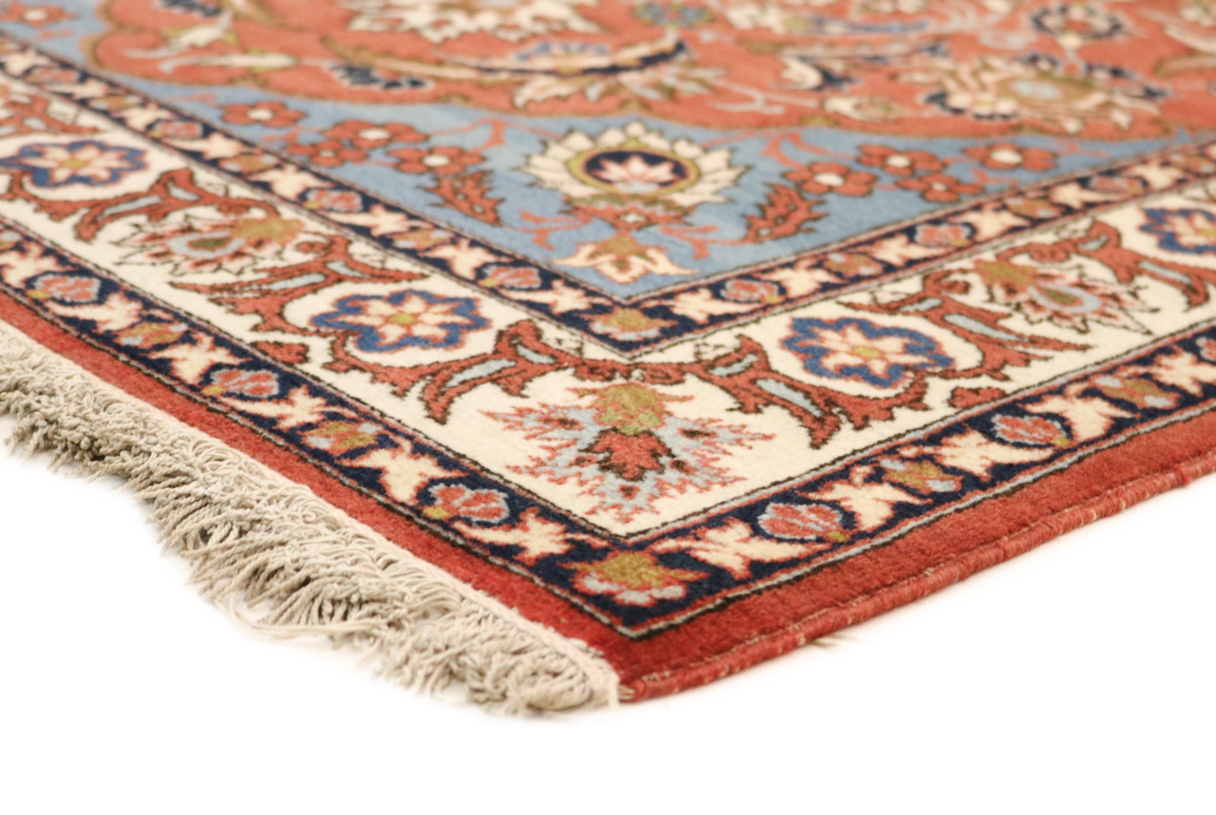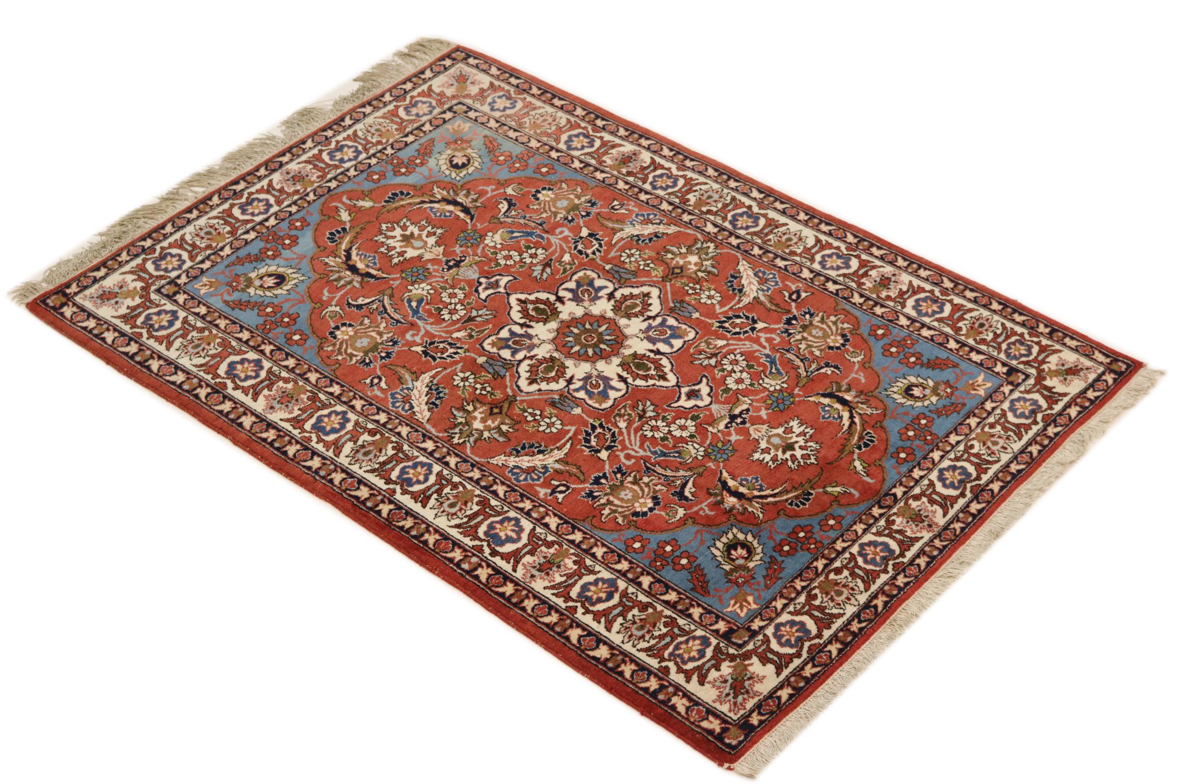Este tapete de Isfahan é feito a partir da arte tradicional e mais elevada de atar. Foi magistralmente trabalhado e decorado com ornamentos fascinantes. O tapete persa foi feito à mão em Isfahan, provavelmente a mais bela cidade do Irão, com os melhores fios. Os tapetes de Isfahan estão entre os persas mais valiosos e podem ser um verdadeiro investimento.