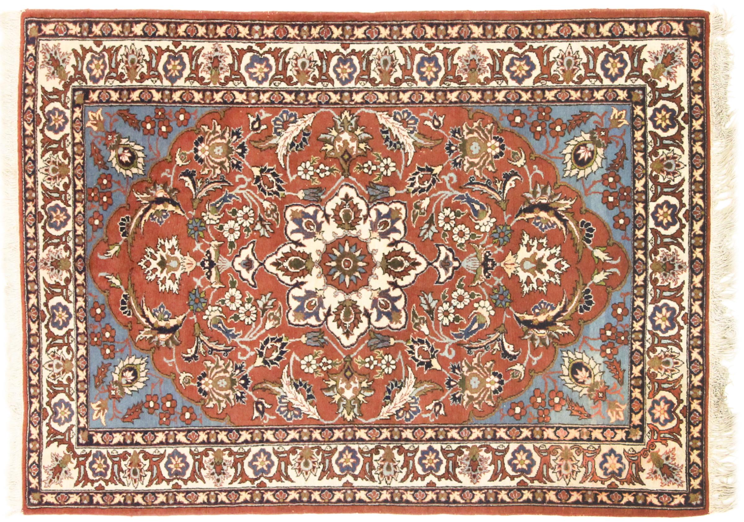 Nº do Tapete: 167390009425569 Tamanho: 146x102 cm Espessura: aproximadamente 6 mm Nós: 1 000 000 / m² Processamento: Atado à mão Veludo: Lã tecida à mão Urdidura: Seda Origem: Pérsia / Iran Idade: Novo Peso: aproximadamente 4 kg Em armazém: Único - Apenas 1 em stock