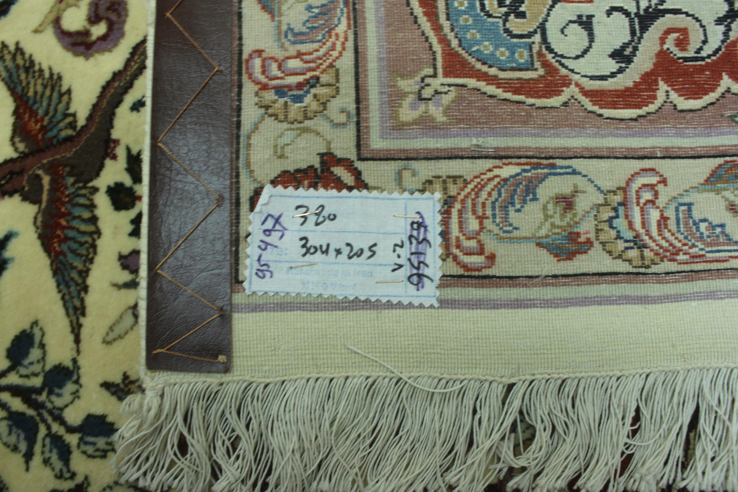 Nº do Tapete: 31928007802566 Tamanho: 299x206 cm Espessura: aproximadamente 12 mm Nós: 320 000 - 360 000 / m² Processamento: Atado à mão Veludo: Lã tecida à mão Urdidura: Algodão Origem: Pérsia / Iran Idade: Novo Peso: aproximadamente 22 kg Em armazém: Único - Apenas 1 em stock