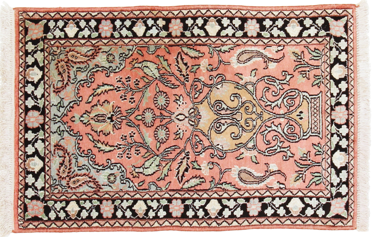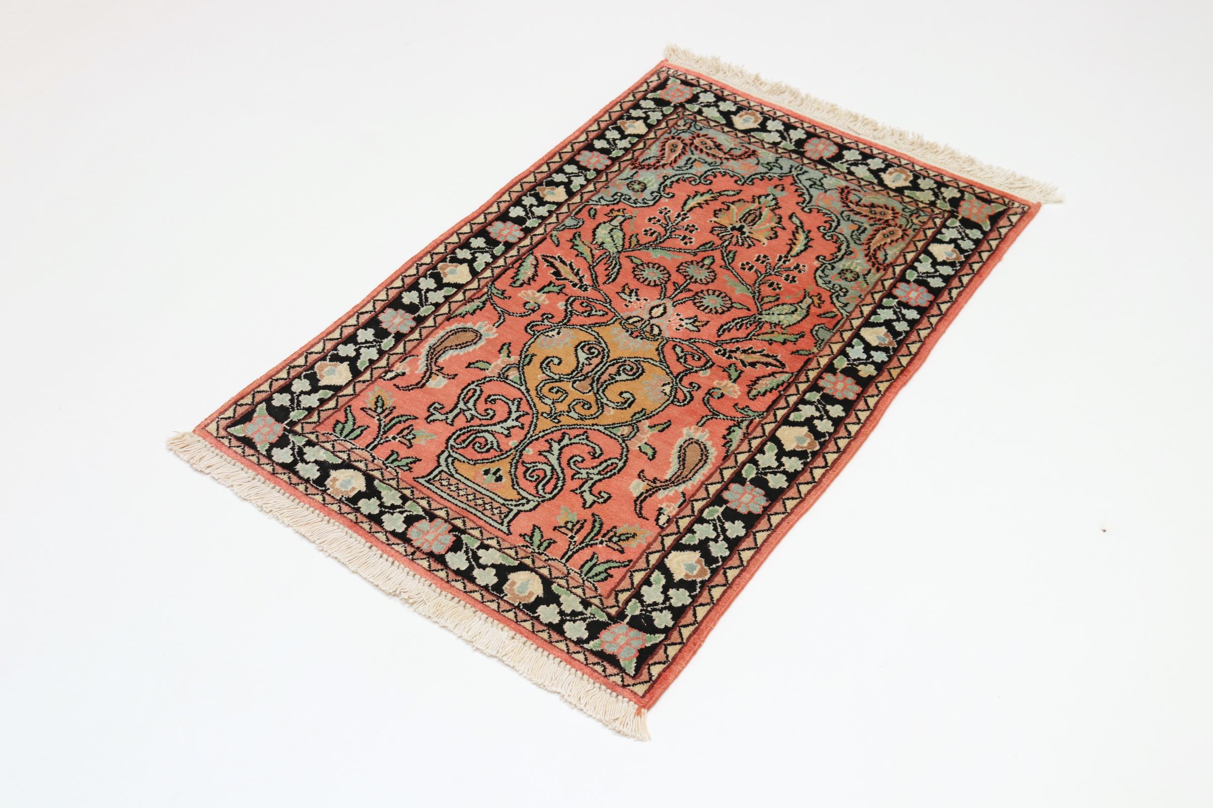 Nº do Tapete: 55416005670151 Tamanho: 91x64 cm Espessura: aproximadamente 4 mm Nós: 450 000 - 500 000 / m² Processamento: Atado à mão Veludo: Seda Urdidura: Algodão Origem: Índia Idade: Novo Peso: aproximadamente 1 kg Em armazém: Único - Apenas 1 em stock