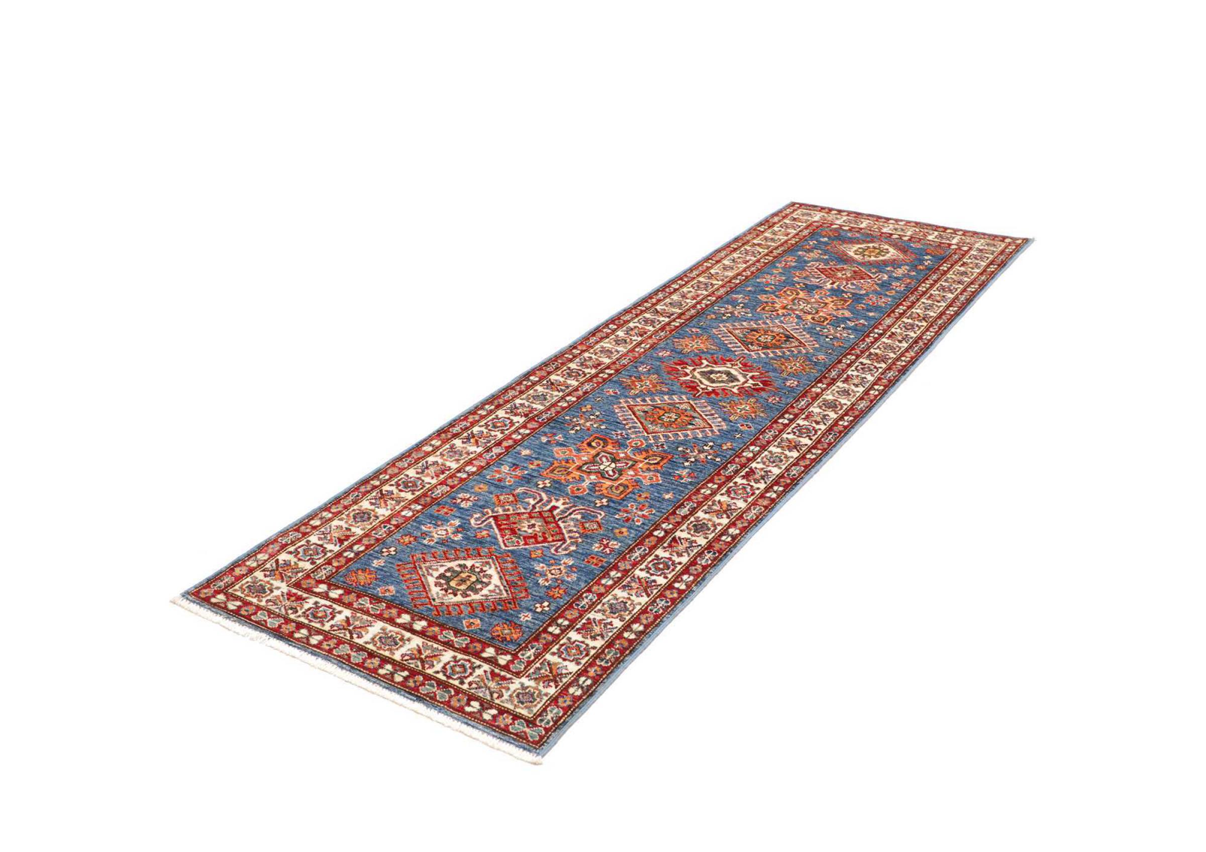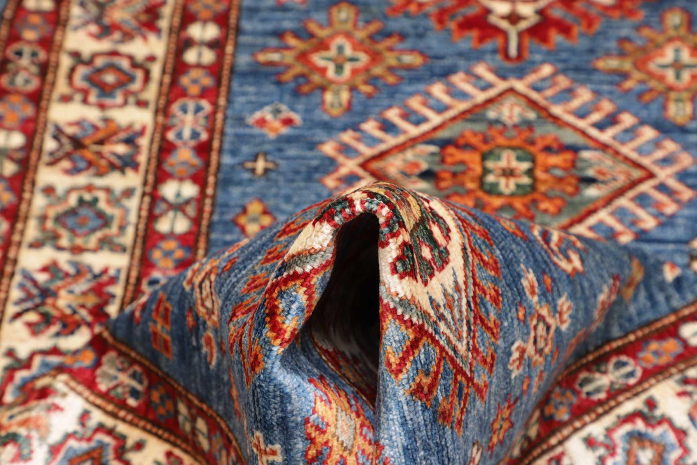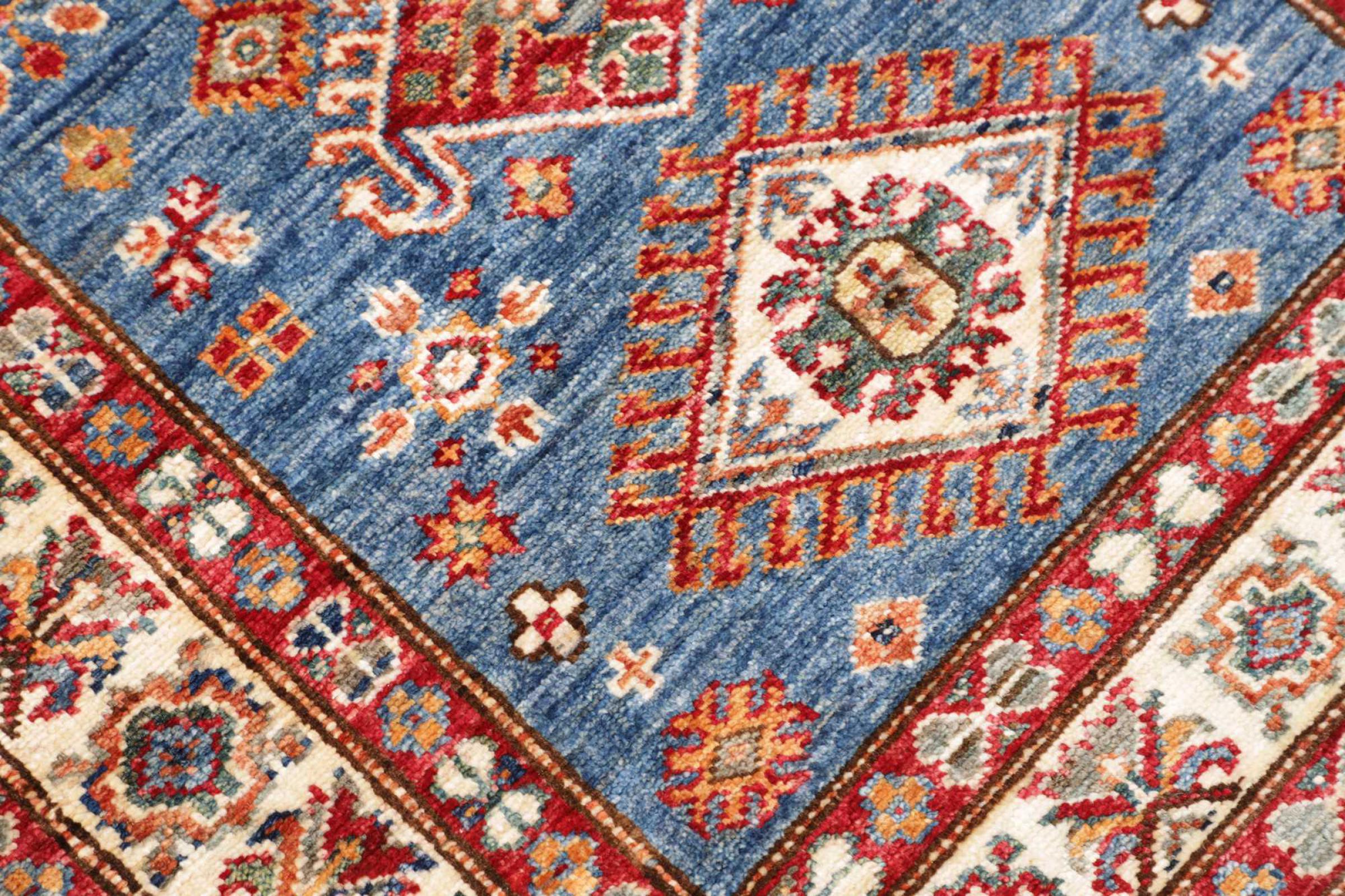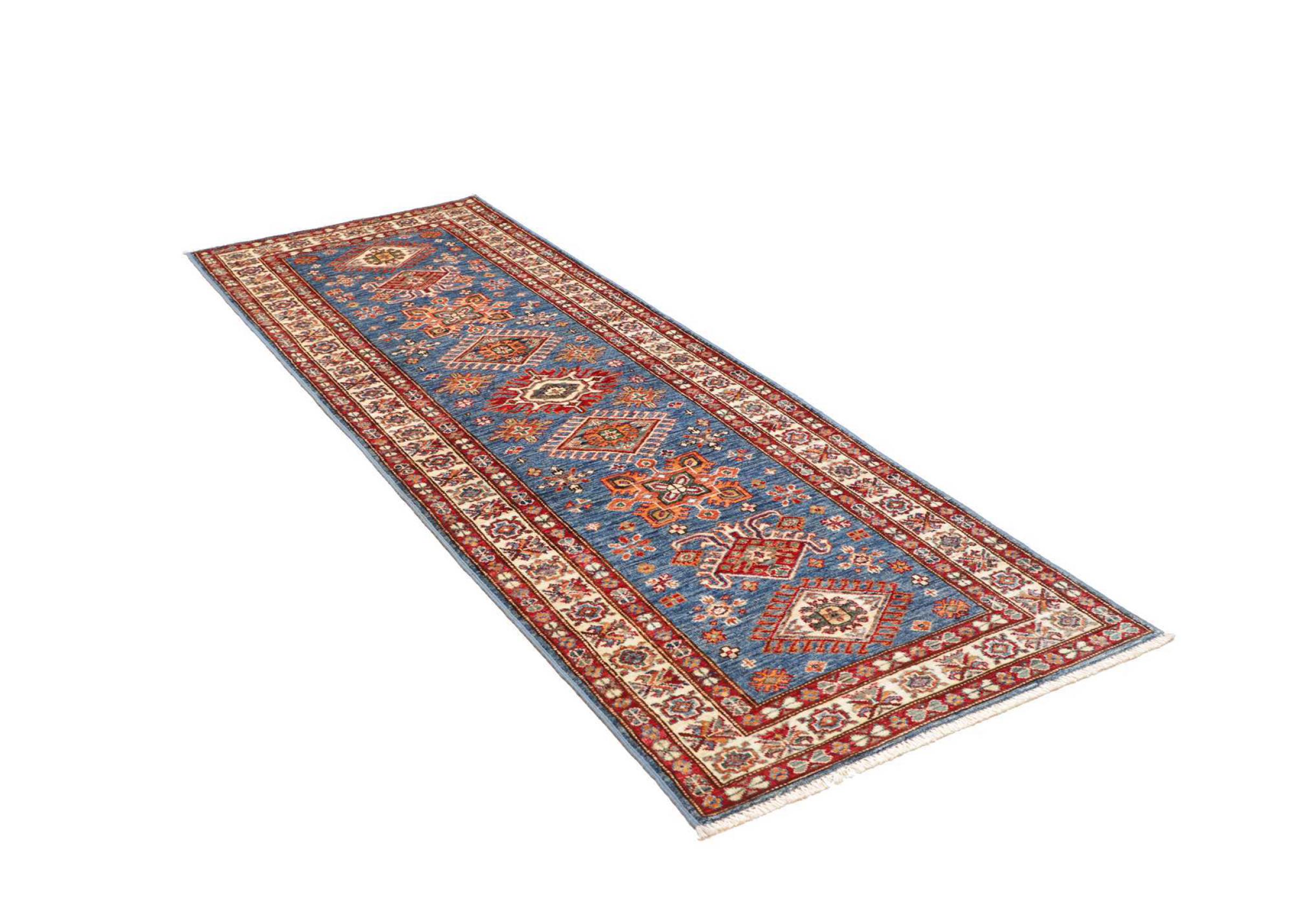 Os tapetes Kazak são originalmente tapetes caucasianos e são considerados os melhores de sua espécie. Eles são feitos à mão com lã de alta qualidade e são caracterizados por seu design com cores naturais quentes e formas geométricas retas.