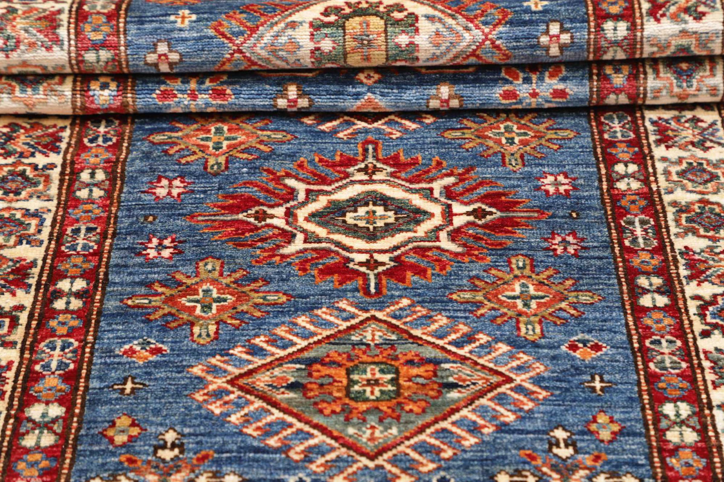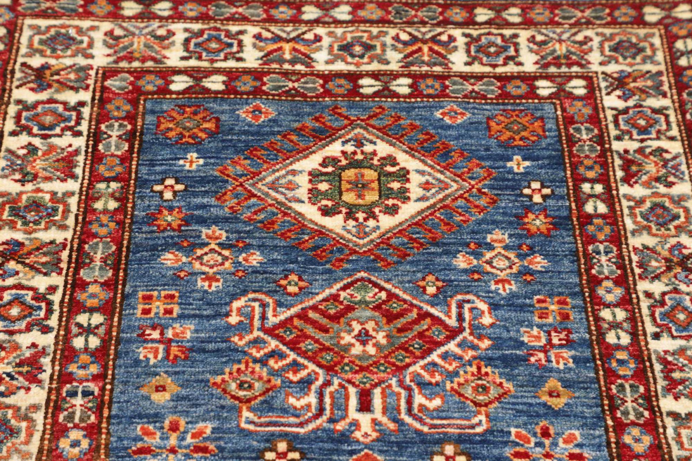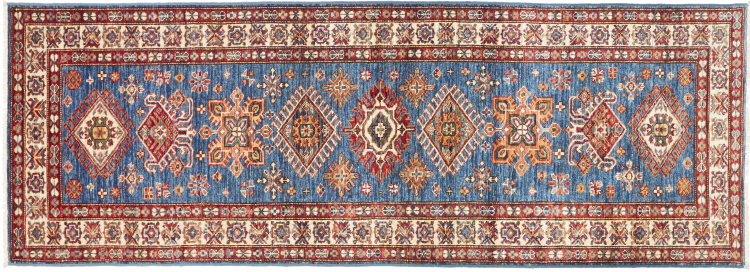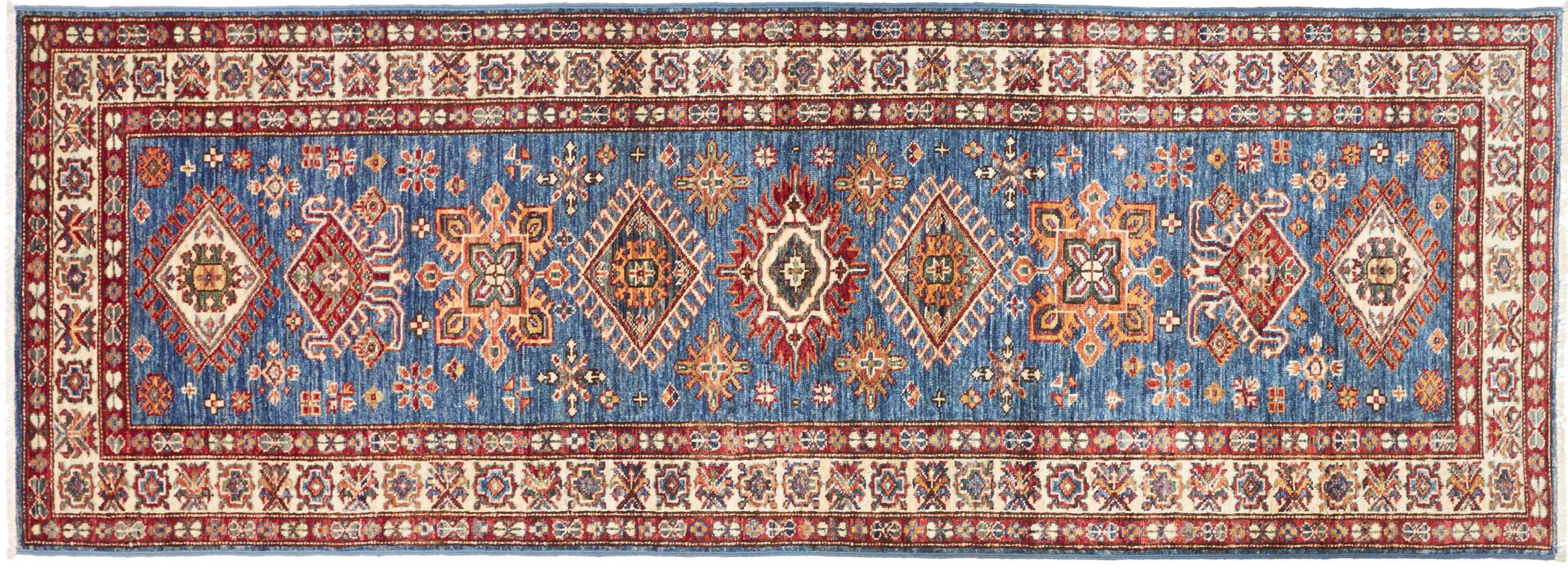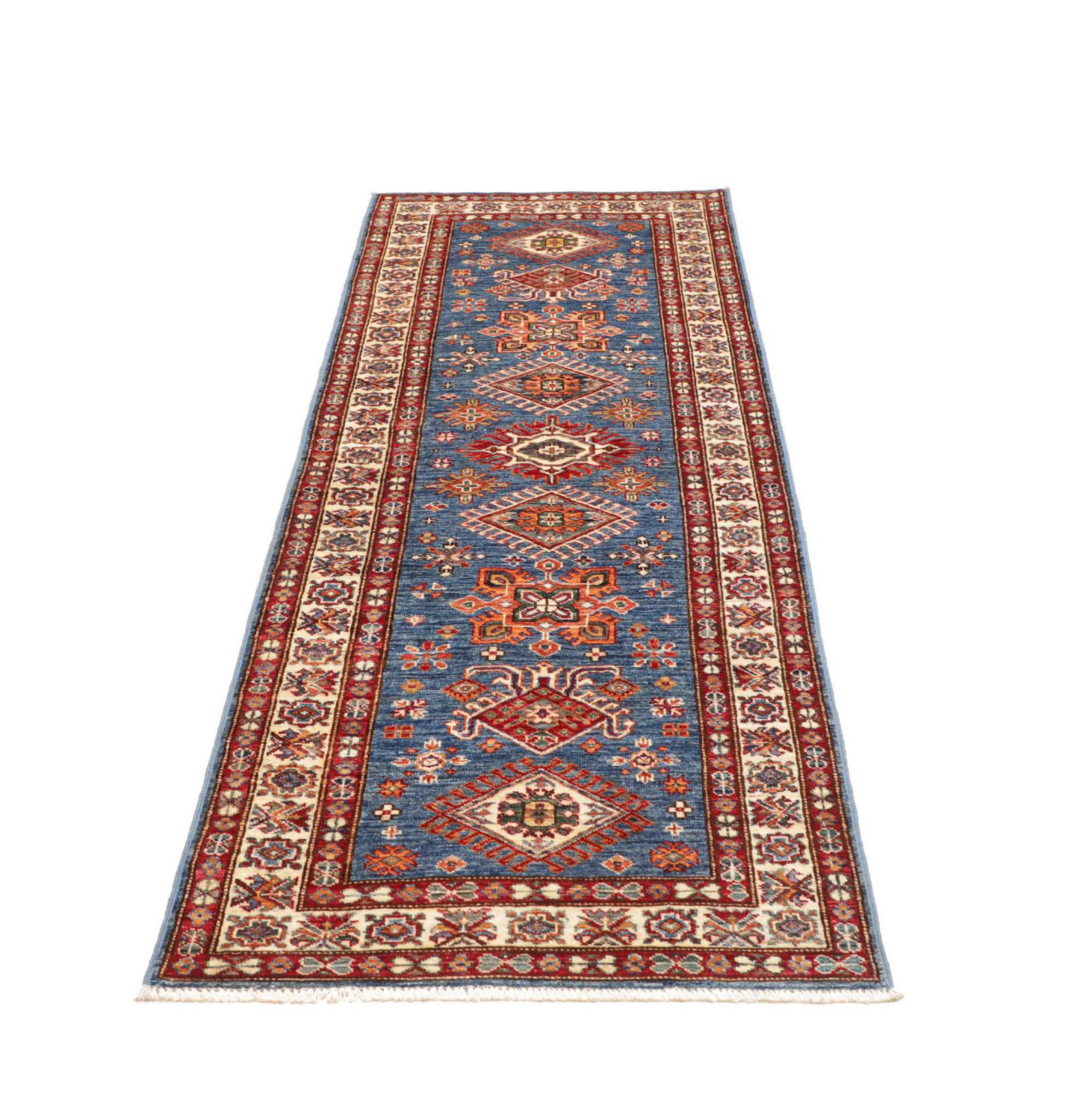 Os tapetes Kazak são originalmente tapetes caucasianos e são considerados os melhores de sua espécie. Eles são feitos à mão com lã de alta qualidade e são caracterizados por seu design com cores naturais quentes e formas geométricas retas.