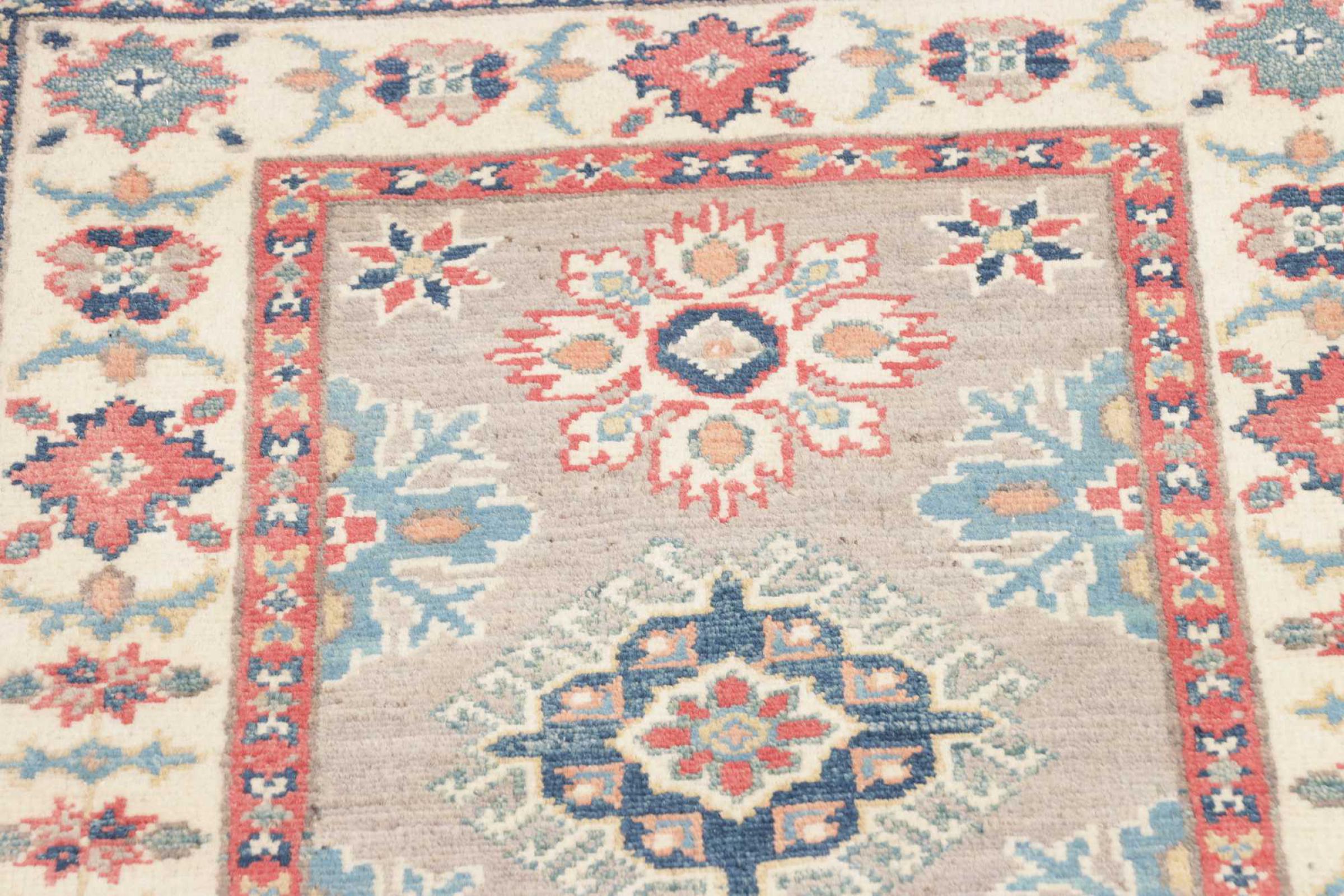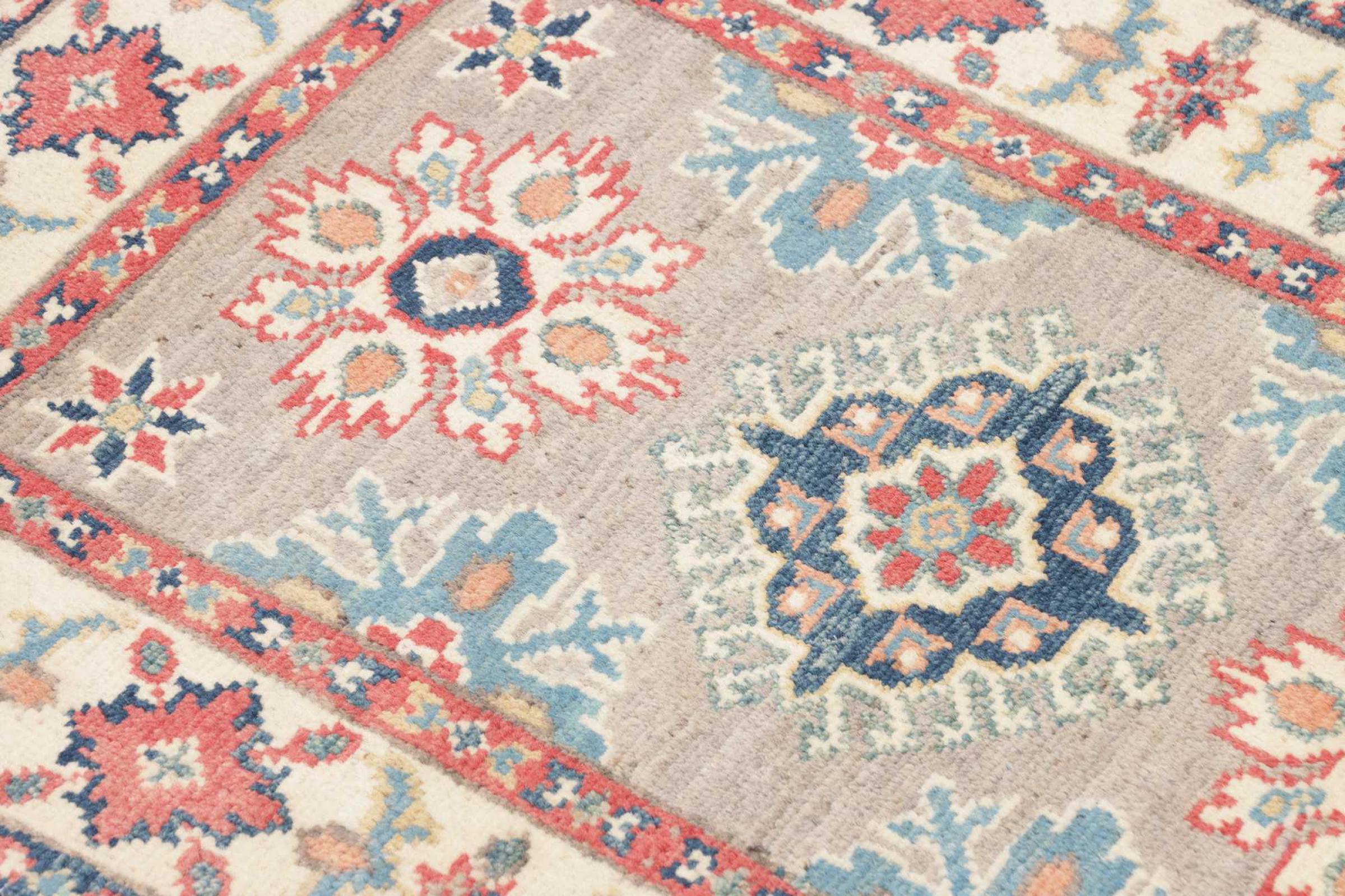 Os tapetes Kazak são originalmente tapetes caucasianos e são considerados os melhores de sua espécie. Eles são feitos à mão com lã de alta qualidade e são caracterizados por seu design com cores naturais quentes e formas geométricas retas.