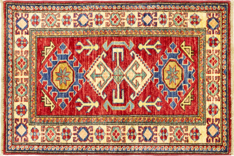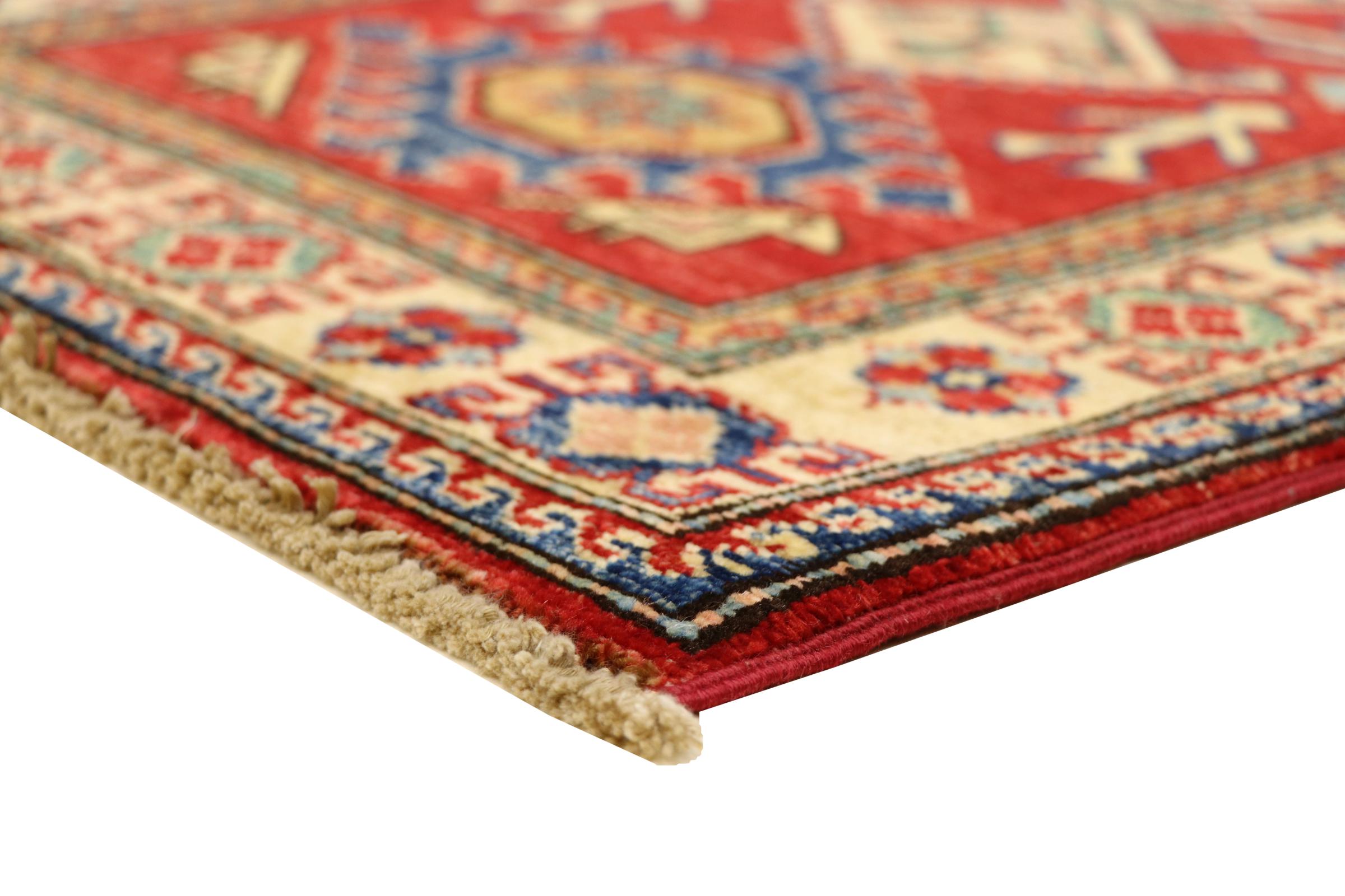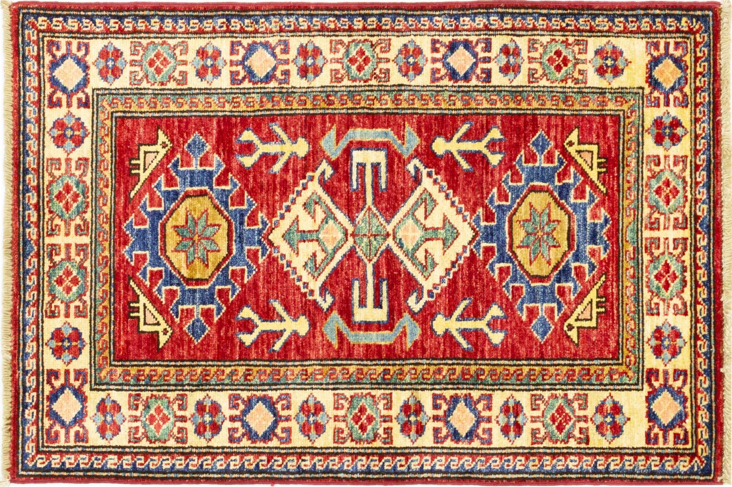 Os tapetes Kazak são originalmente tapetes caucasianos e são considerados os melhores de sua espécie. Eles são feitos à mão com lã de alta qualidade e são caracterizados por seu design com cores naturais quentes e formas geométricas retas.
