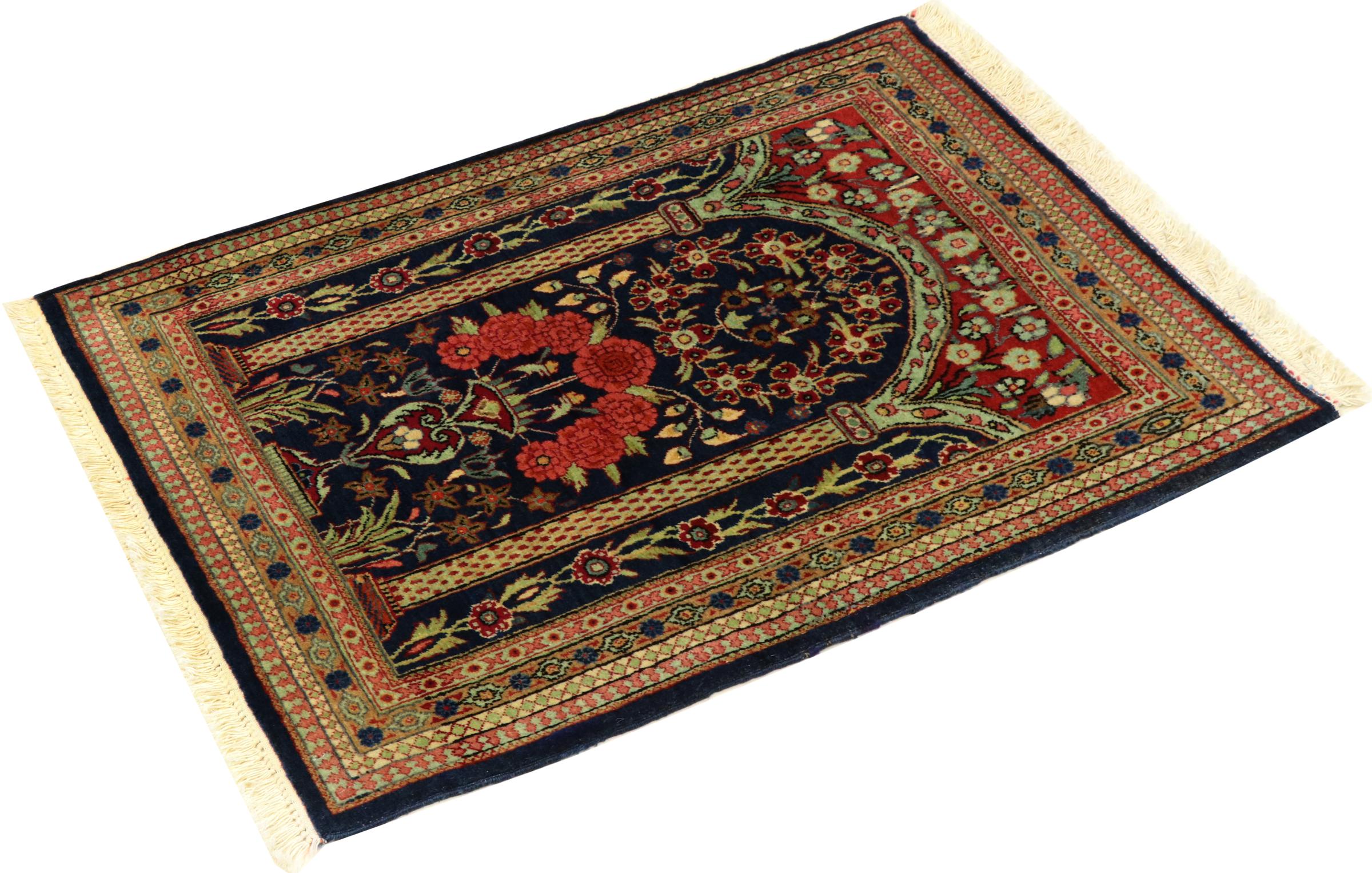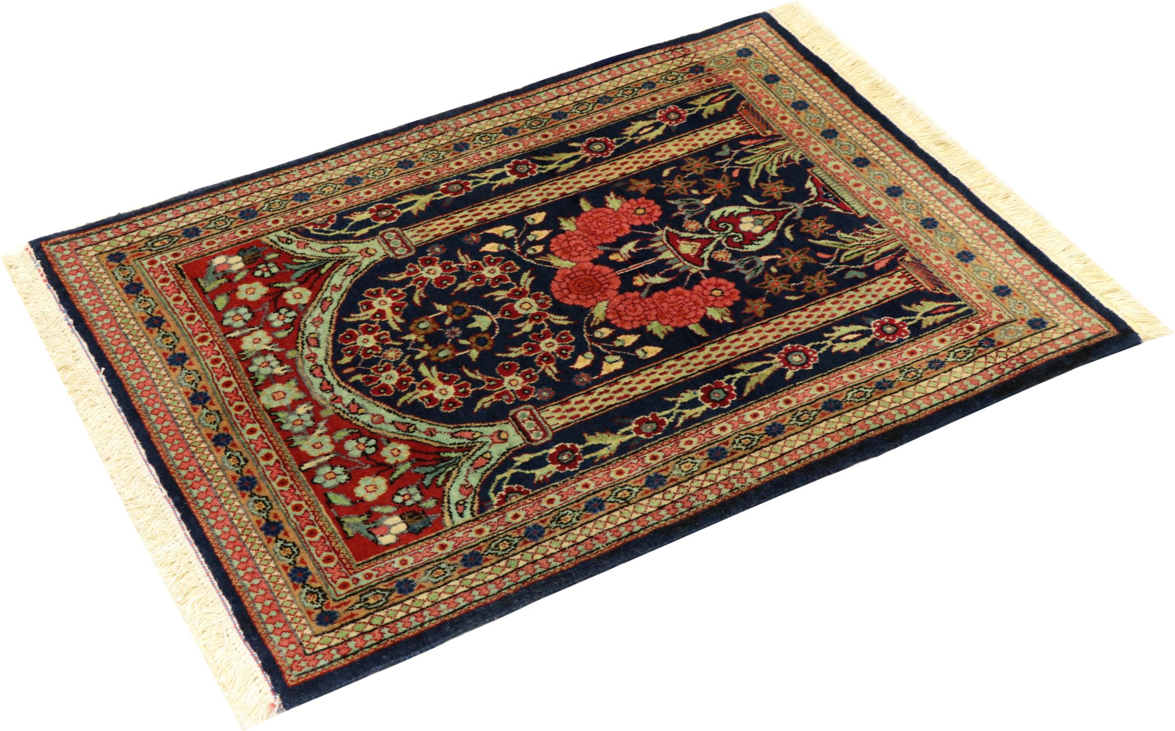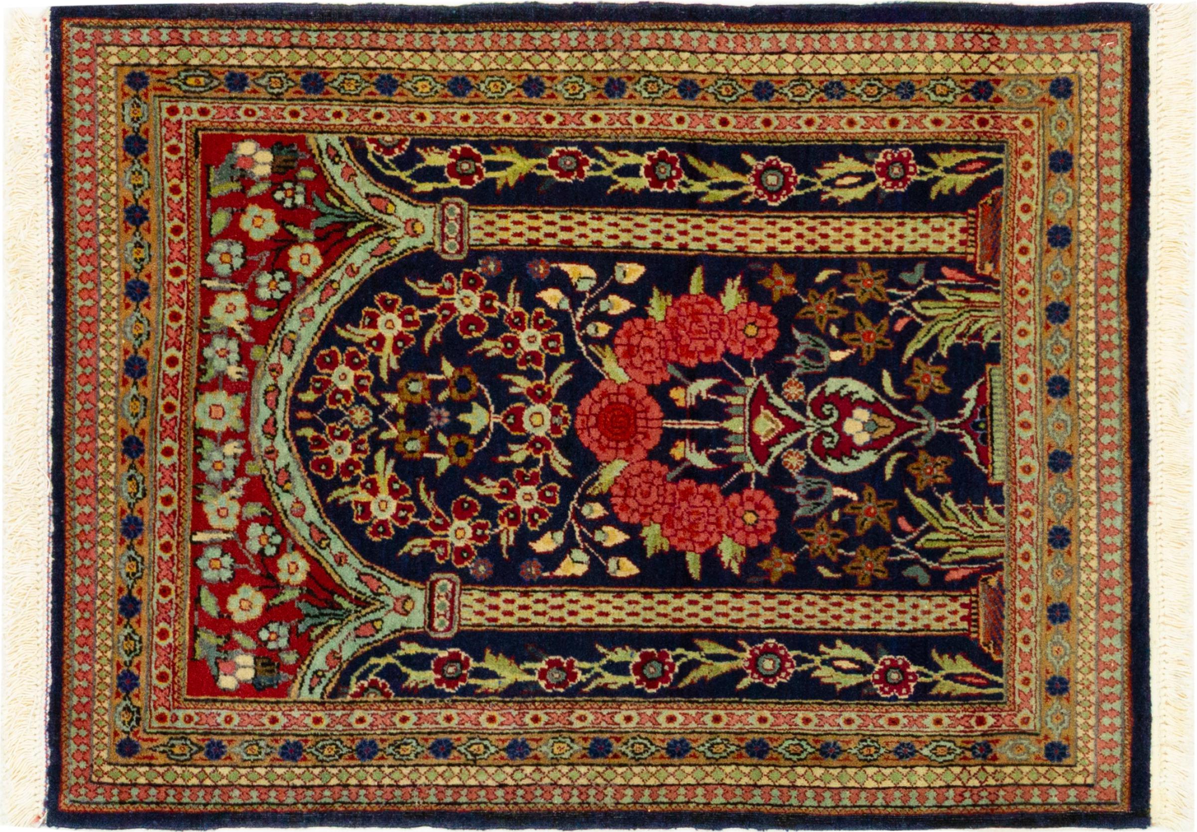 Nº do Tapete: 303358006452413 Tamanho: 3'4"x2'4" ft Espessura: aproximadamente 0.2 in Nós: 209 - 232 / Polegada quadrada Processamento: Atado à mão Veludo: Lã de cortiça Urdidura: Algodão Origem: Pérsia / Iran Idade: Antigo/Semi-Antigo, mais de 50 anos Peso: aproximadamente 4 lb Em armazém: Único - Apenas 1 em stock