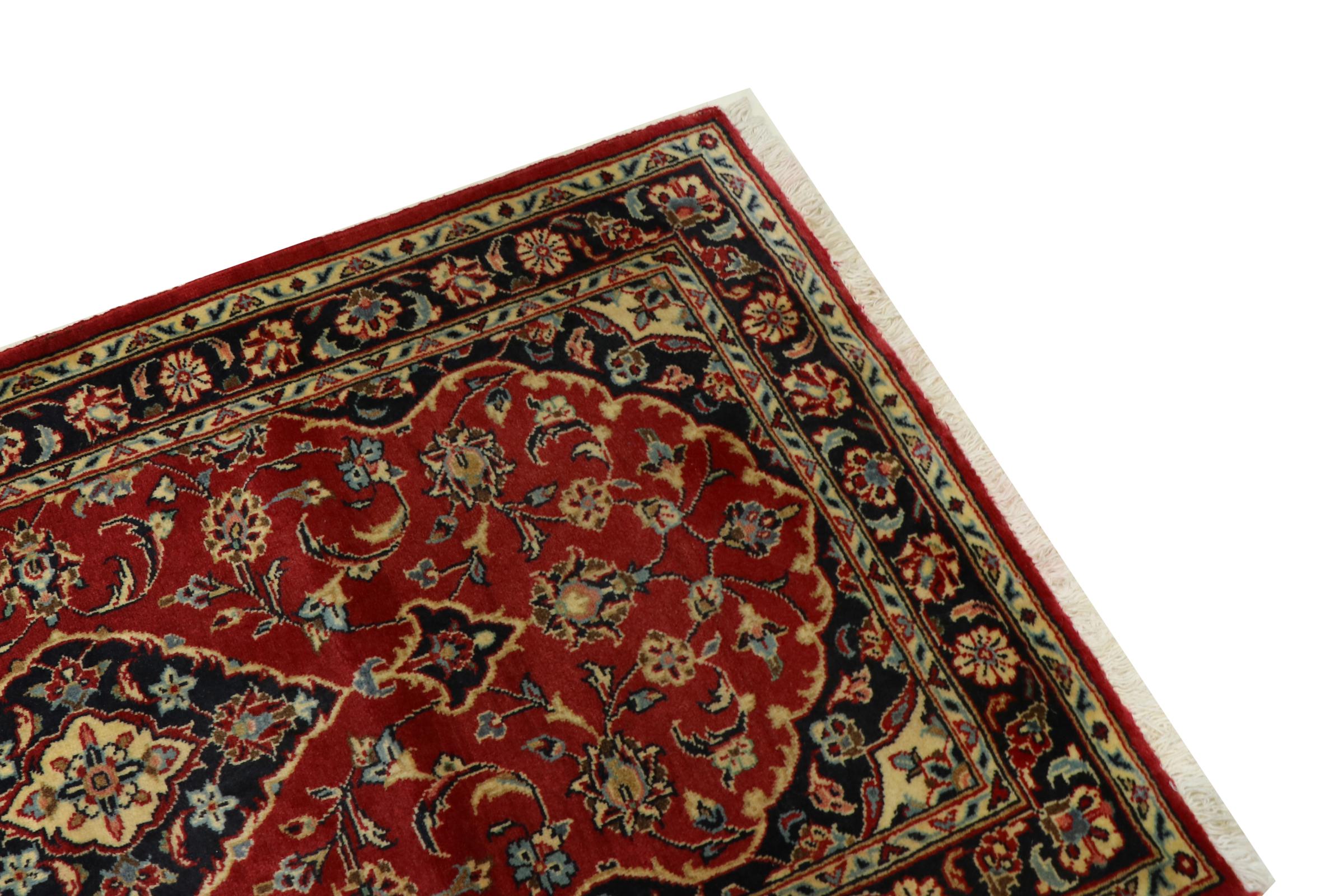 Este tapete de Kashan (Keshan) é mantido em seu design persa muito tradicional e típico com belos ornamentos. Os tapetes Kashan são muito populares devido ao seu design excepcionalmente elegante. Esses tapetes são originários de Kashan, uma cidade na antiga Rota da Seda. Este tapete foi feito à mão com lã de ovelha de alta qualidade e será um destaque único em sua casa.
