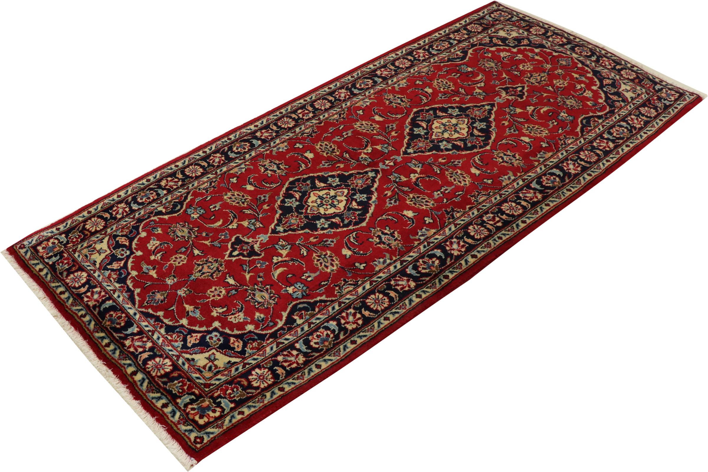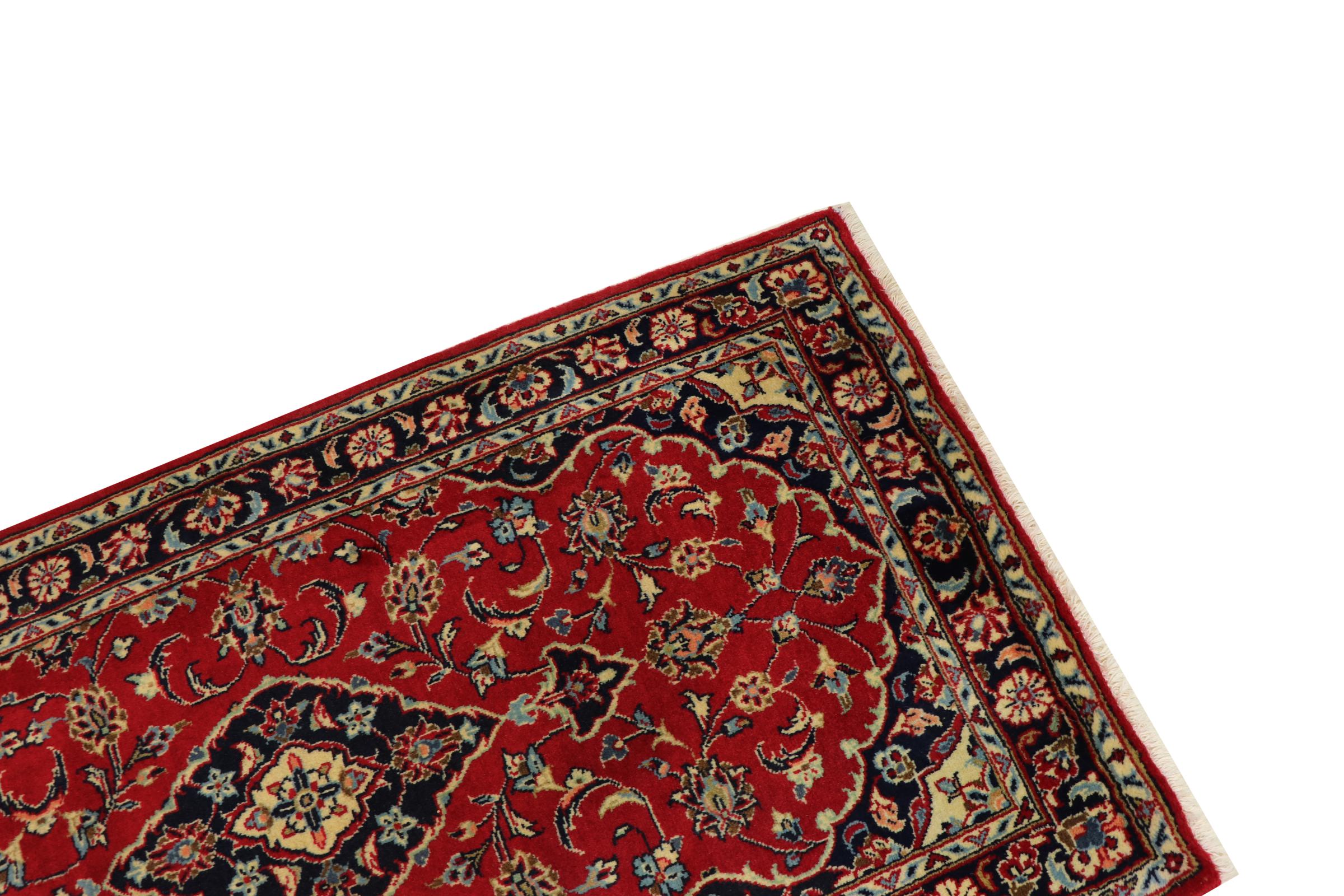 Este tapete de Kashan (Keshan) é mantido em seu design persa muito tradicional e típico com belos ornamentos. Os tapetes Kashan são muito populares devido ao seu design excepcionalmente elegante. Esses tapetes são originários de Kashan, uma cidade na antiga Rota da Seda. Este tapete foi feito à mão com lã de ovelha de alta qualidade e será um destaque único em sua casa.